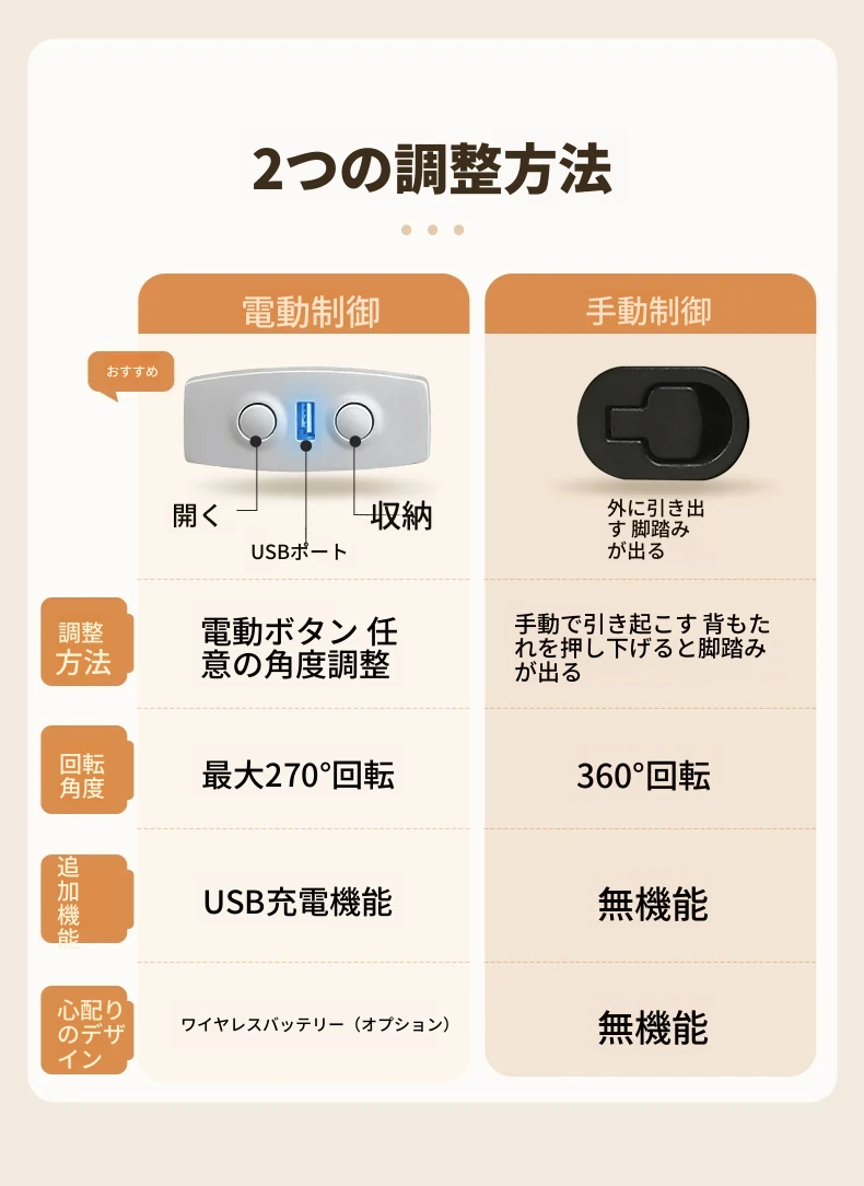 茶色+回転+ワイヤレス充電【電動ワンタッチ展開】