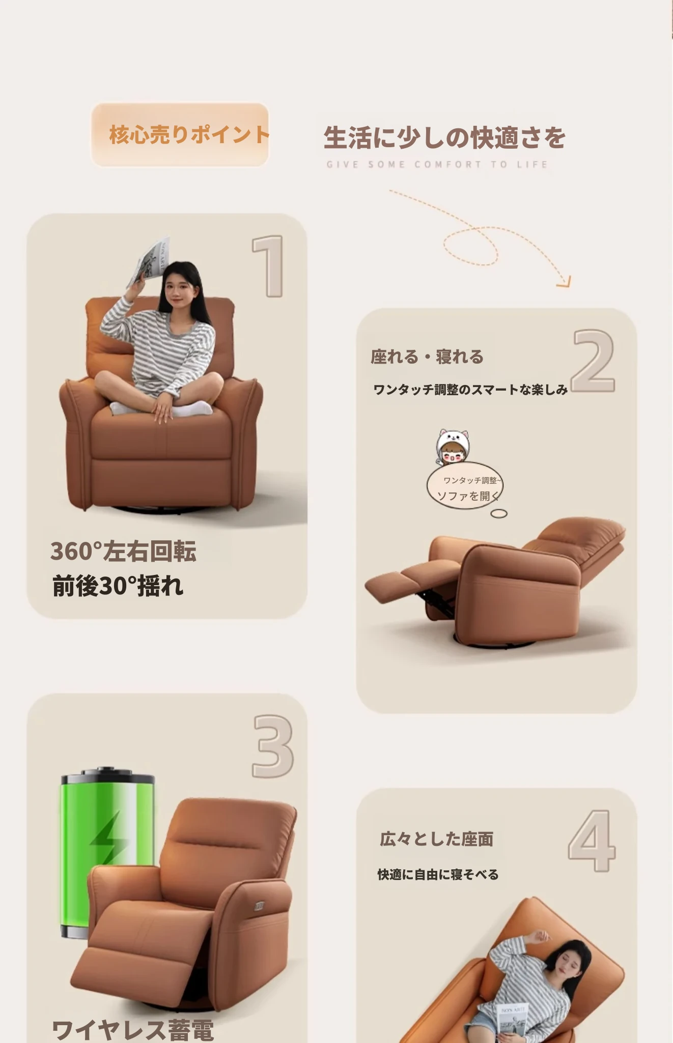 多機能一人用電動ソファチェア|リビングに最適!宇宙型ファーストクラスのラウンジチェア|リラックスできるリクライニング機能付き|スマートソファキャビンで贅沢なひとときを!