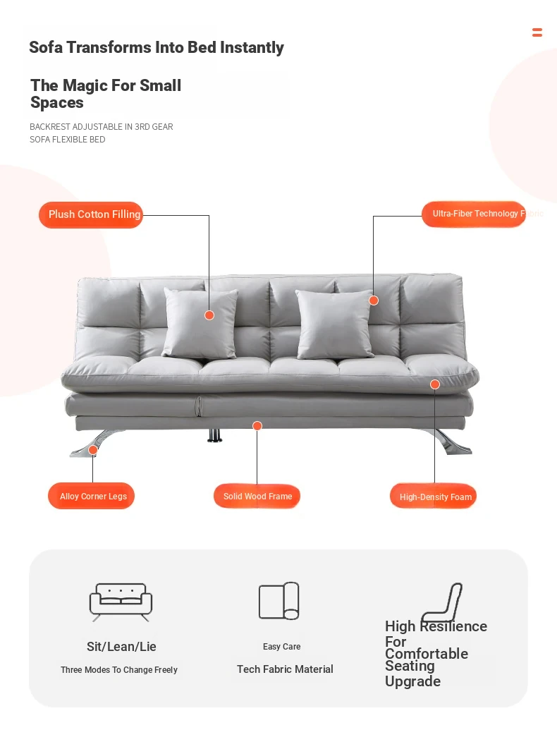 Multifunctional Foldable Sofa Bed for Small Spaces - Stylish Tech Fabric Double Bed and Sofa Combo for Living Room, Trendy Design Inspired by TikTok