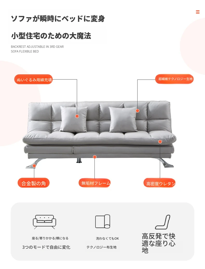 折りたたみ式ソファベッド|小型スペースに最適な多機能デザイン|最新のテクノロジー布を使用したダブルベッドとソファのコンビネーション!おしゃれなリビングにぴったりのアイテム、人気の抖音スタイル!