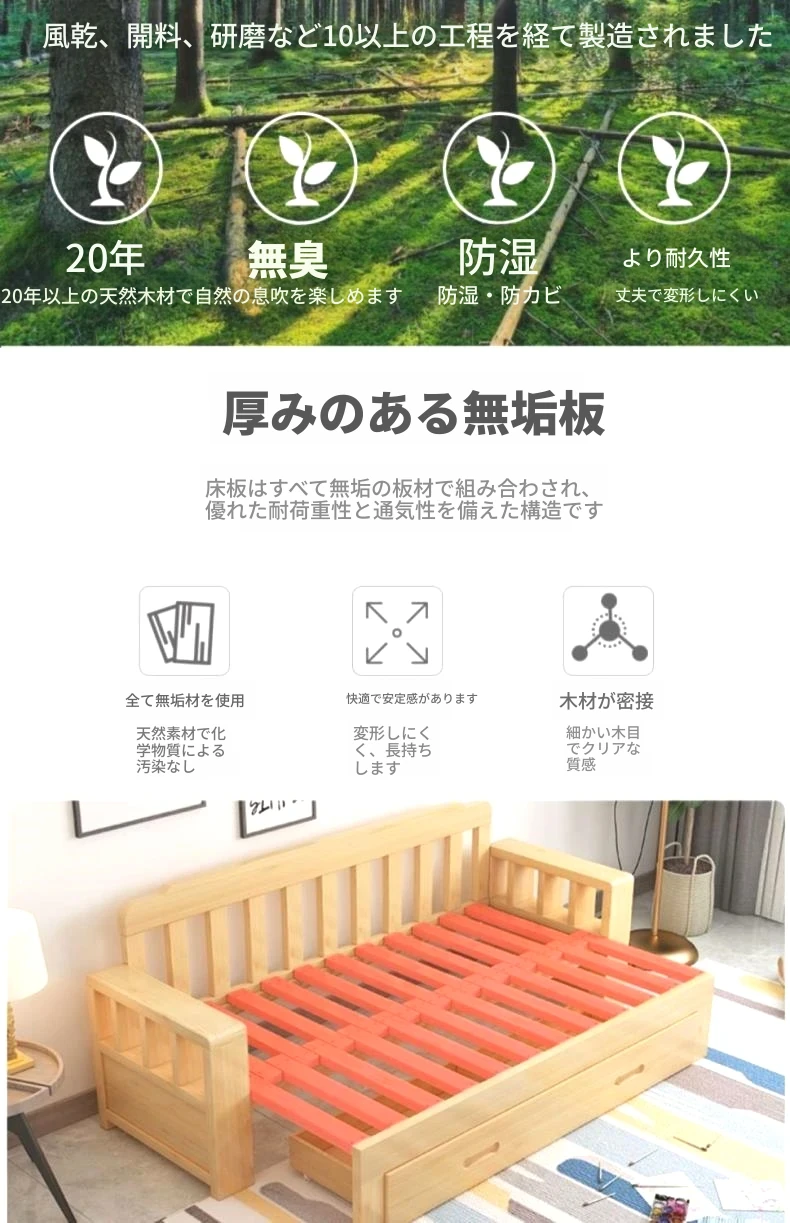 原木色I引き出し付き【取り付け込み+8点セットプレゼント】**///*1.8メートル【全実木+厚手ココナッツマット】**//
