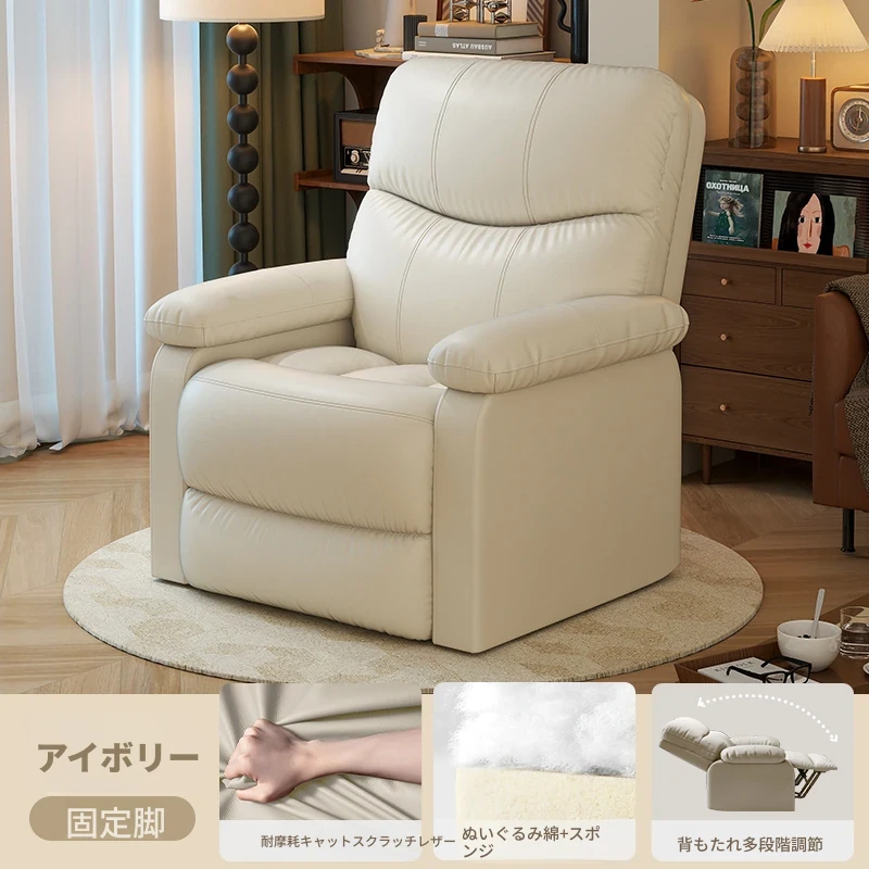 【固定脚】アイボリー丨キャットクロー皮丨背もたれ多段階調整