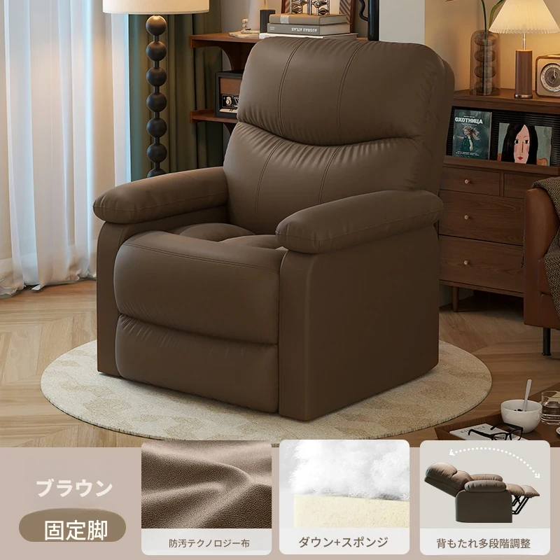【固定脚】ブラウン丨防汚テクノロジー布丨背もたれ多段階調整
