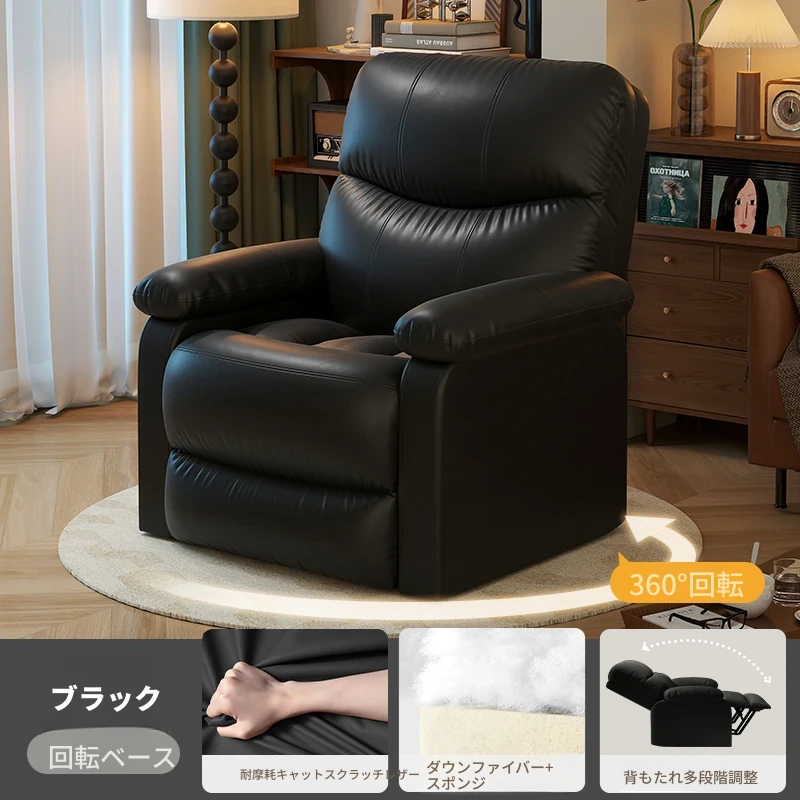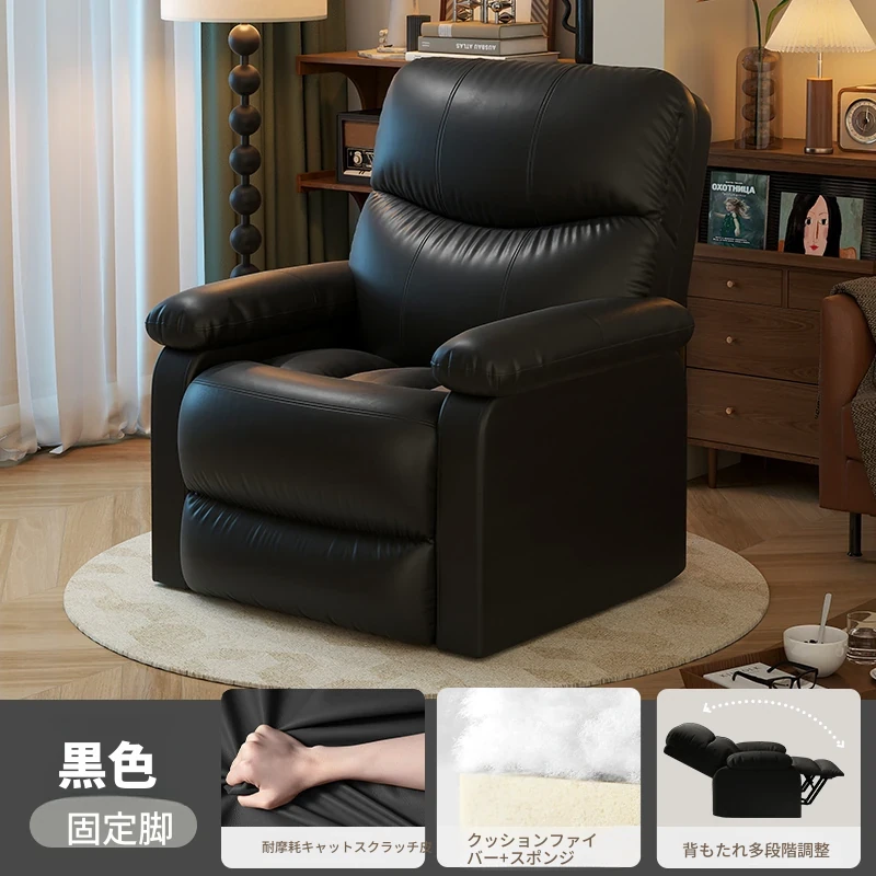 【固定脚】ブラック丨キャットクロー皮丨背もたれ多段階調整