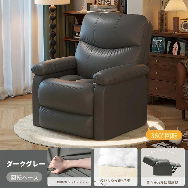 【可旋转】ダークグレー丨キャットクロー皮丨背もたれ多段階調整