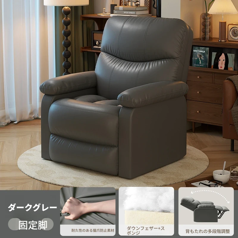 【固定脚】ダークグレー丨キャットクロー皮丨背もたれ多段階調整