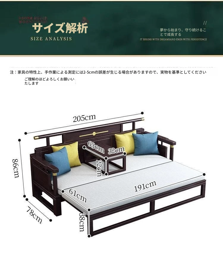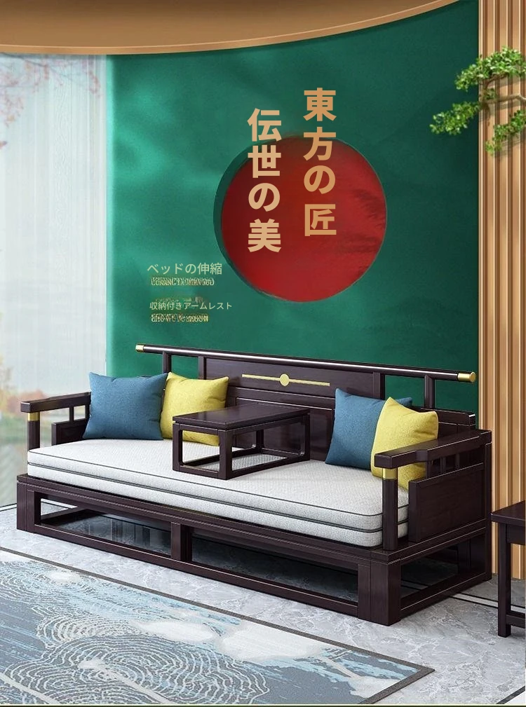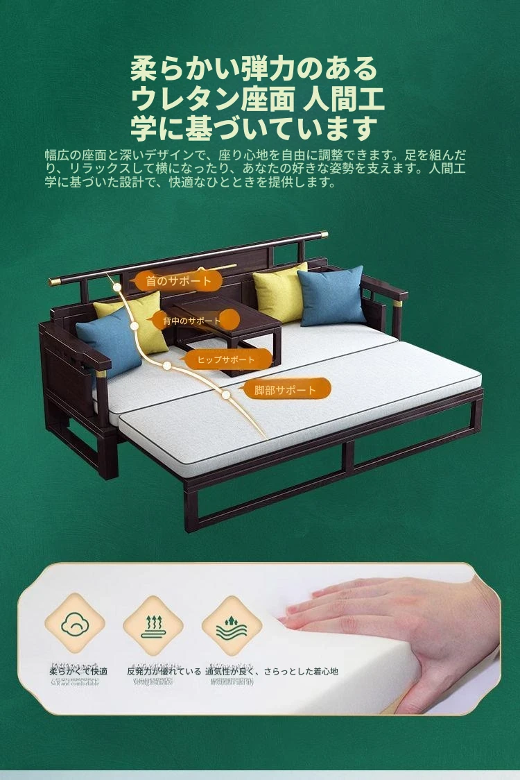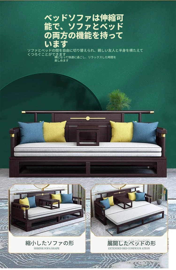 新中式全実木ロハンベッド シンプルなソファベッド 折りたたみ2WAY 大小様々なお部屋にフィットする新作リビング一体型ベッド