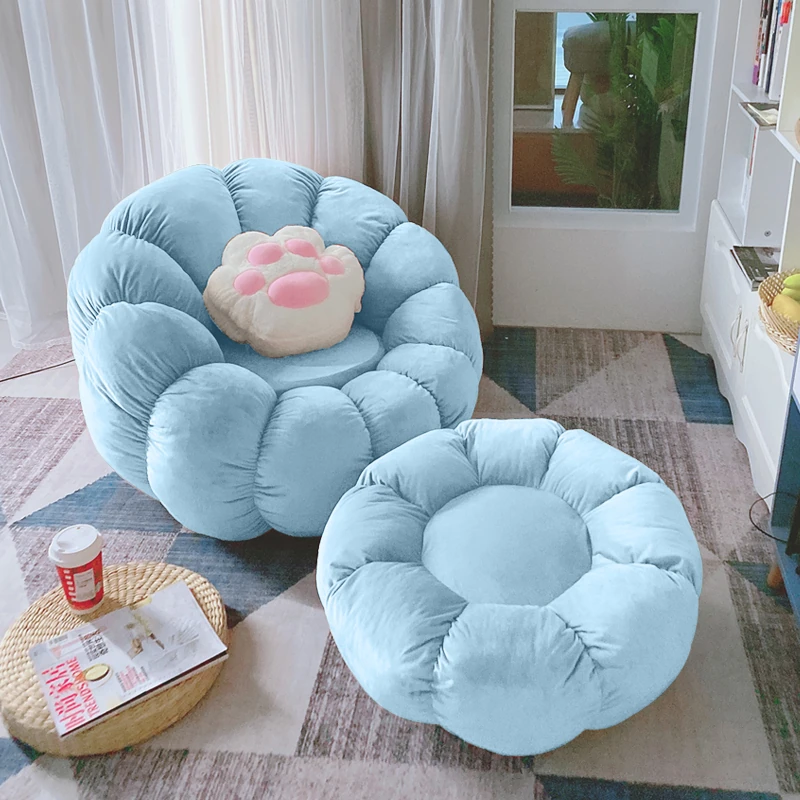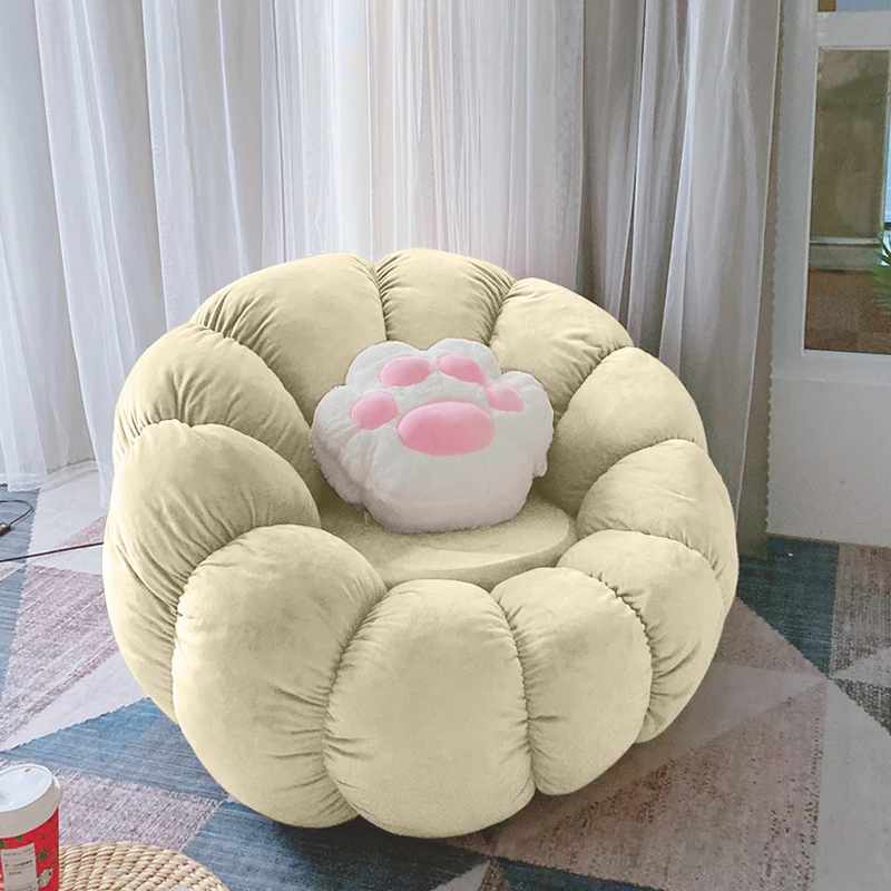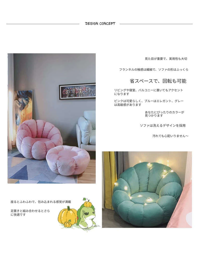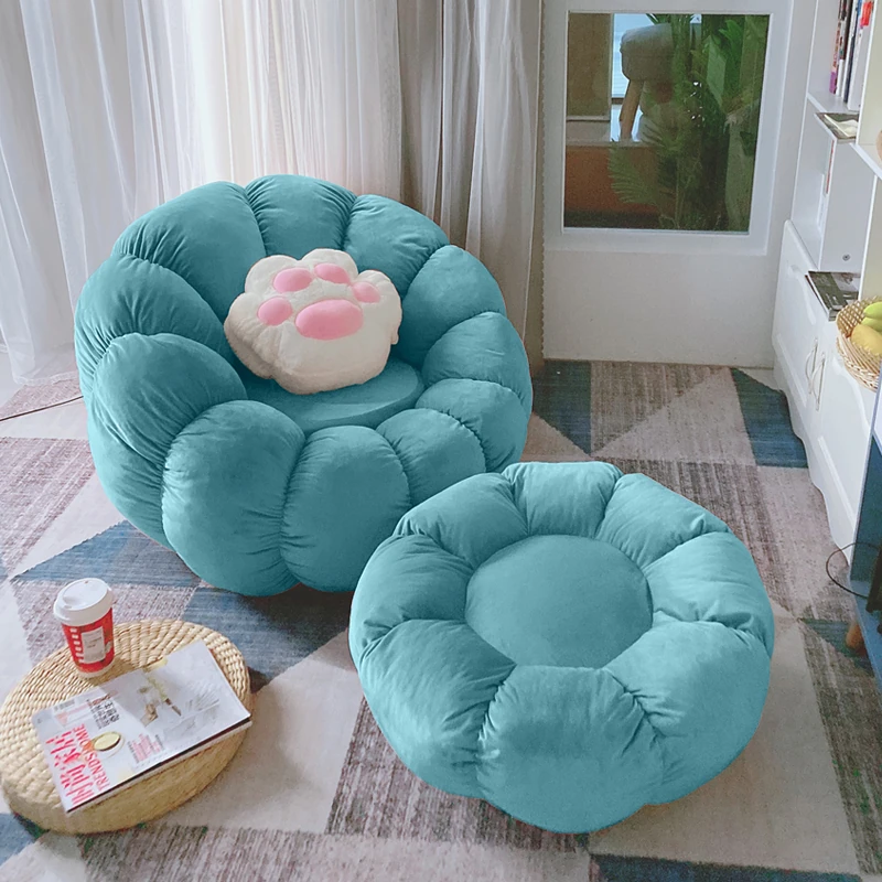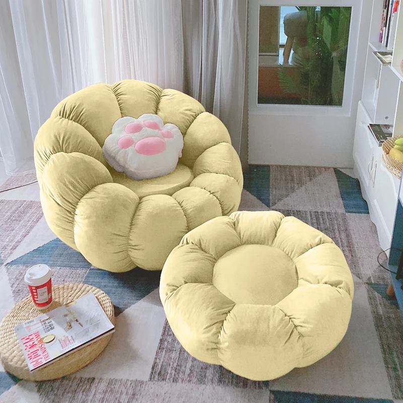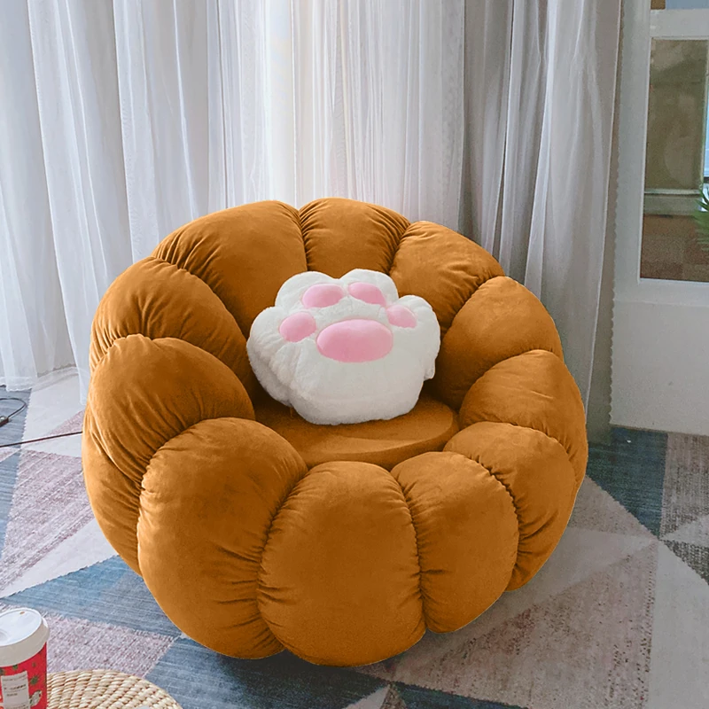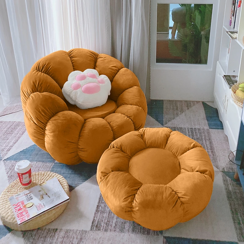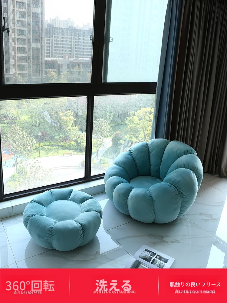 北欧スタイルのリラックスソファ!南瓜型の一人掛け椅子は、寝室やリビングにぴったり。タタミやバルコニーでも使える、話題のデザイン。快適な背もたれ付きで、くつろぎのひとときをお楽しみください!