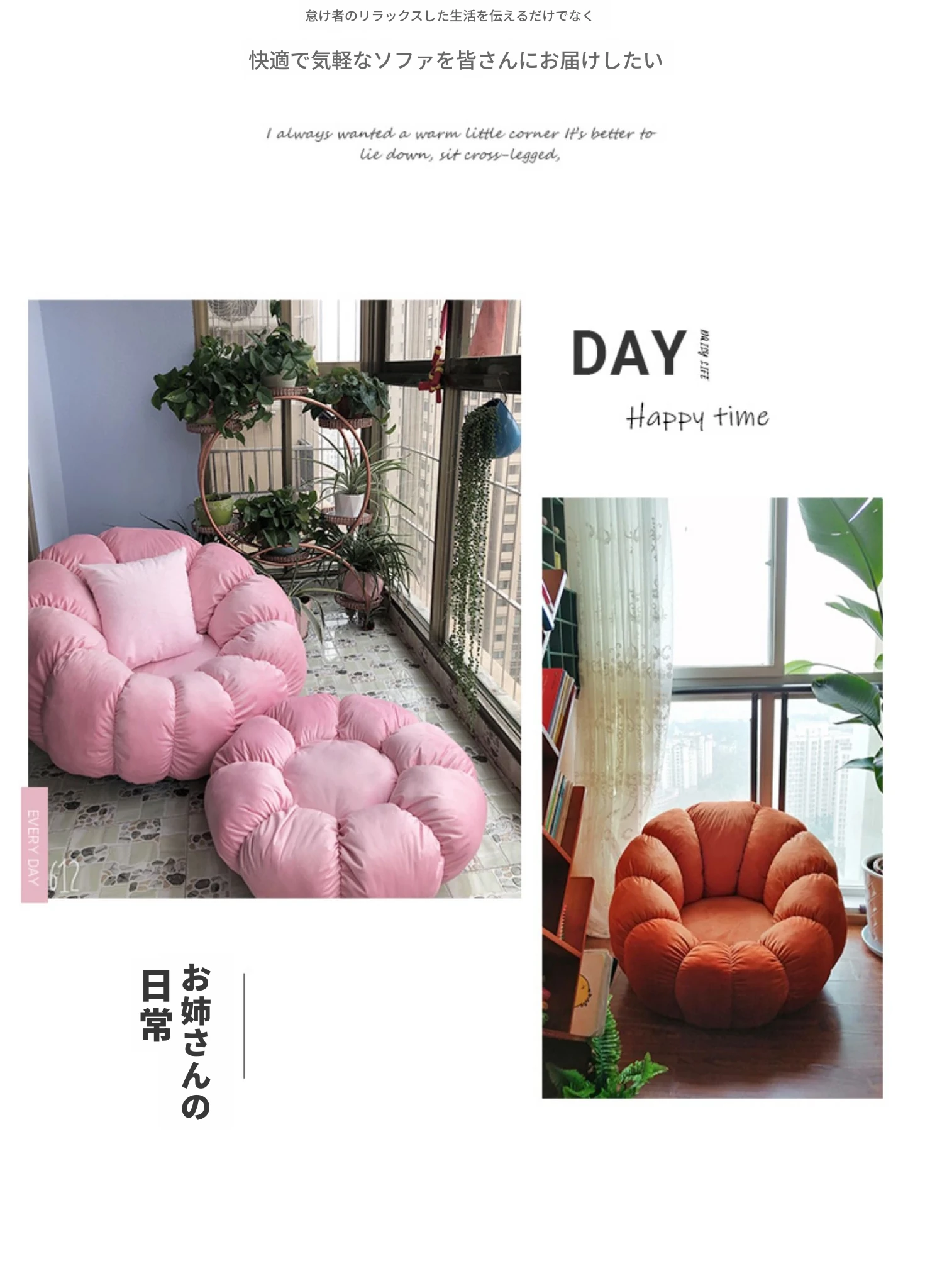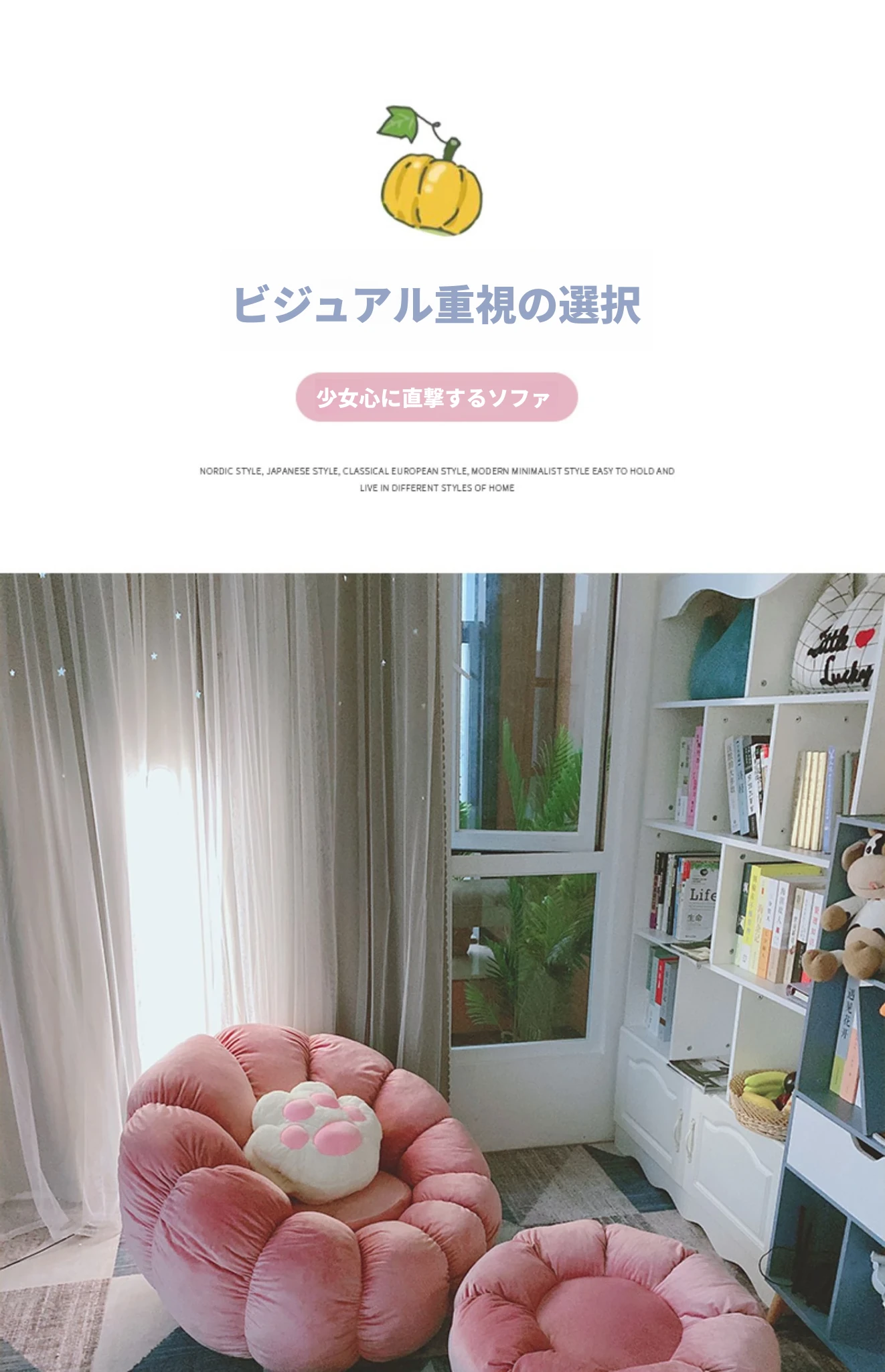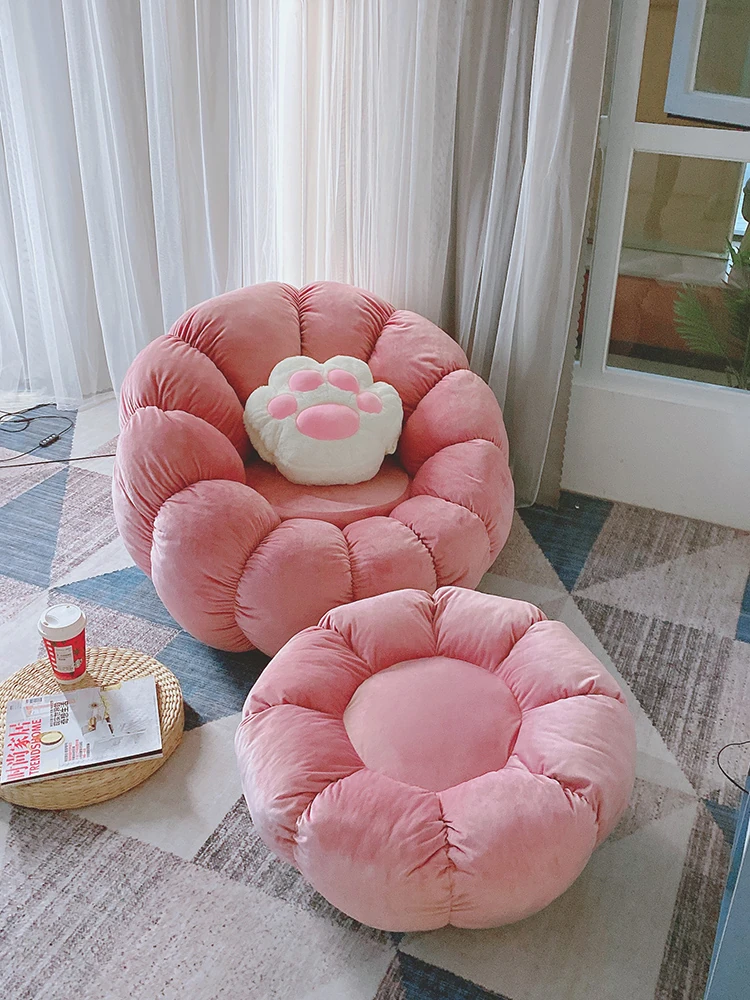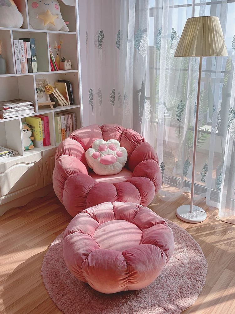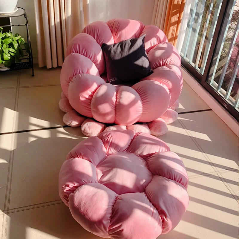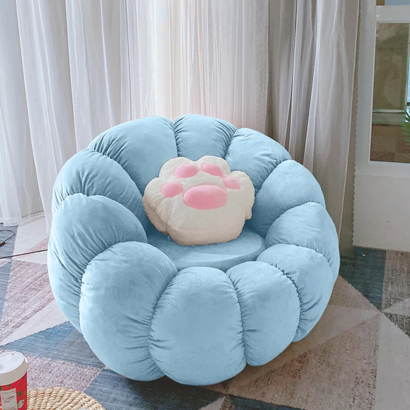 北欧スタイルのリラックスソファ!南瓜型の一人掛け椅子は、寝室やリビングにぴったり。タタミやバルコニーでも使える、話題のデザイン。快適な背もたれ付きで、くつろぎのひとときをお楽しみください!