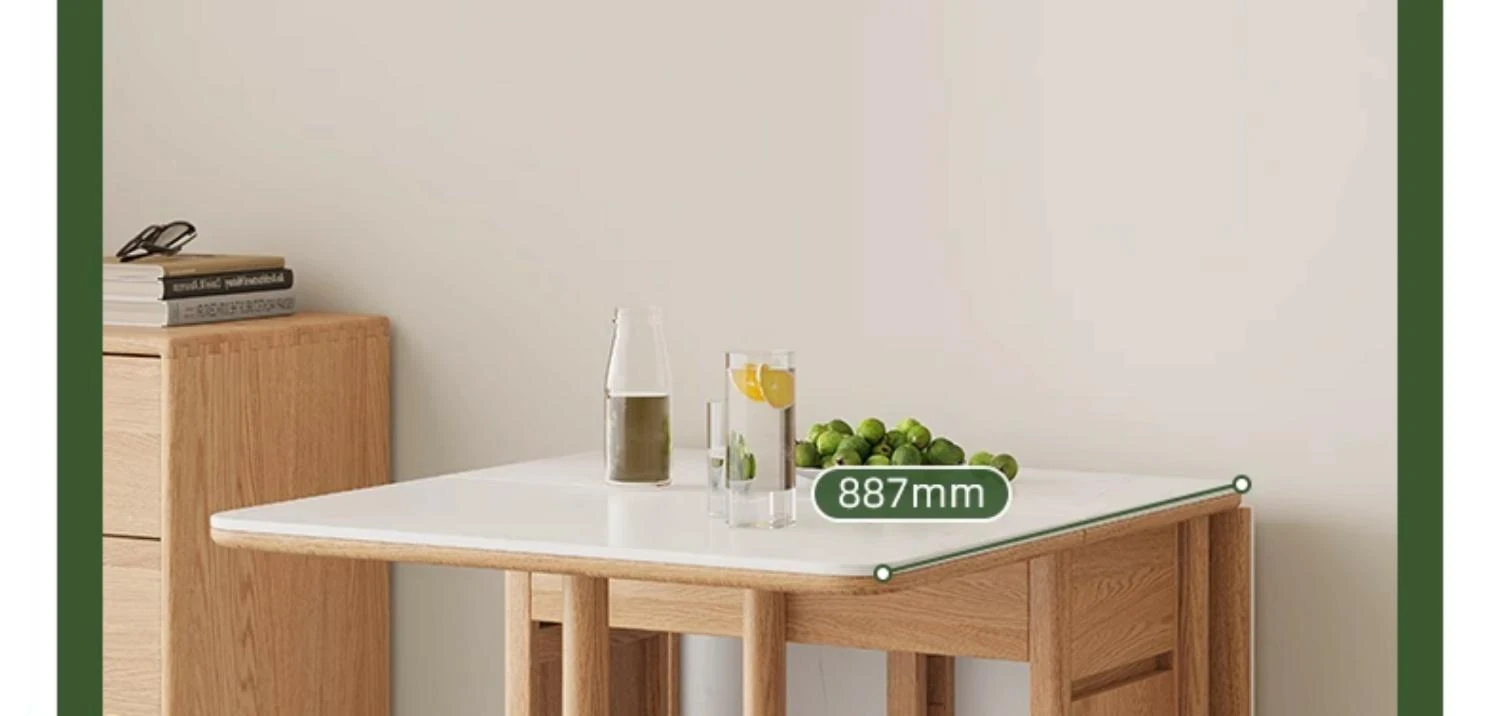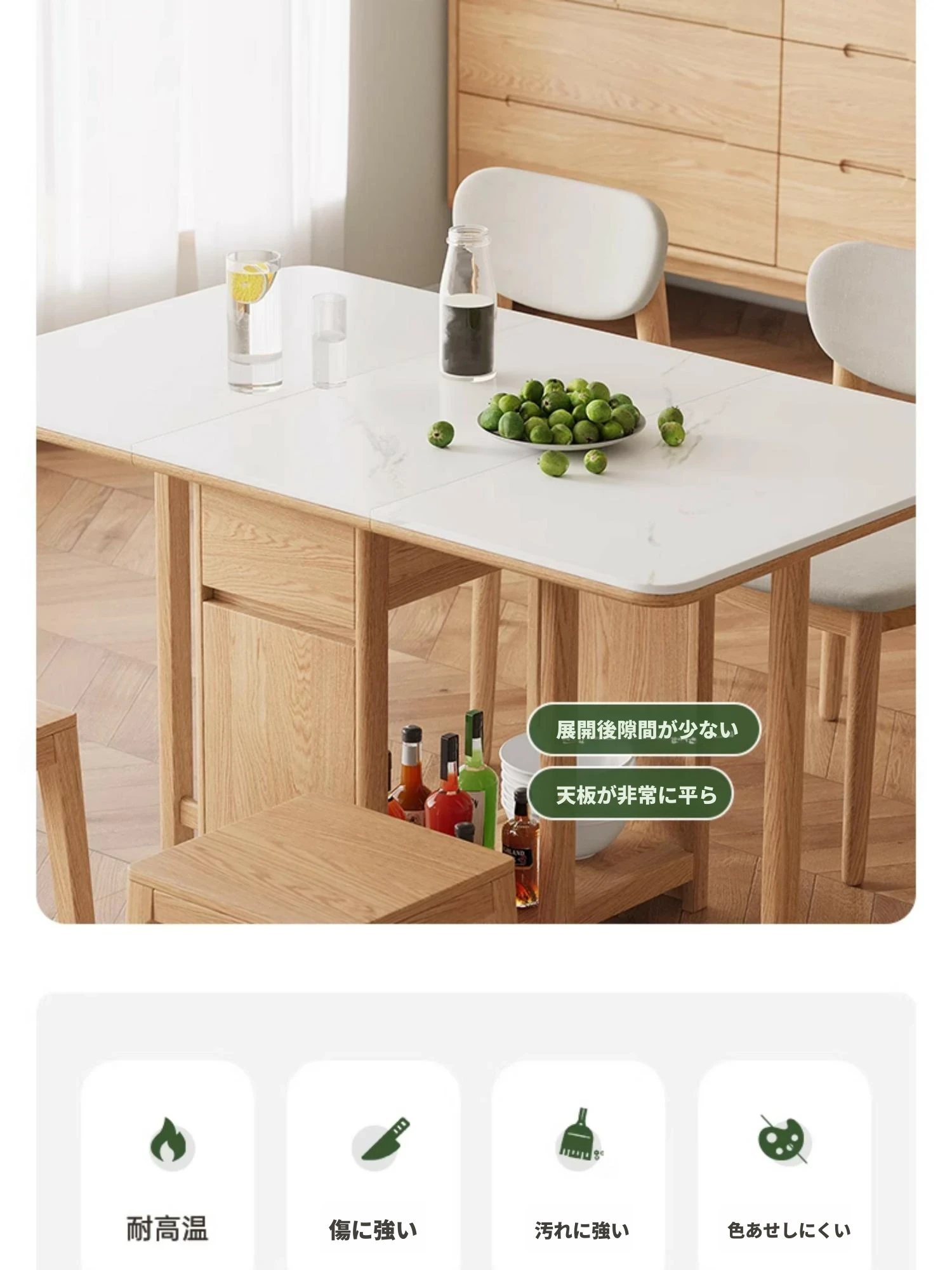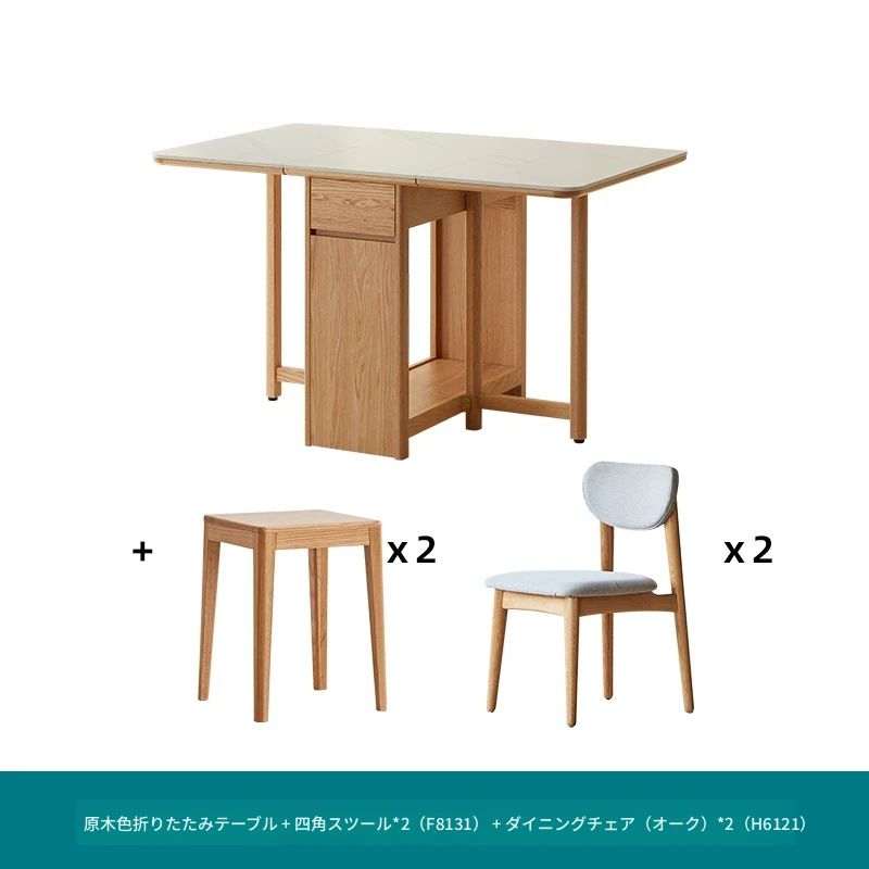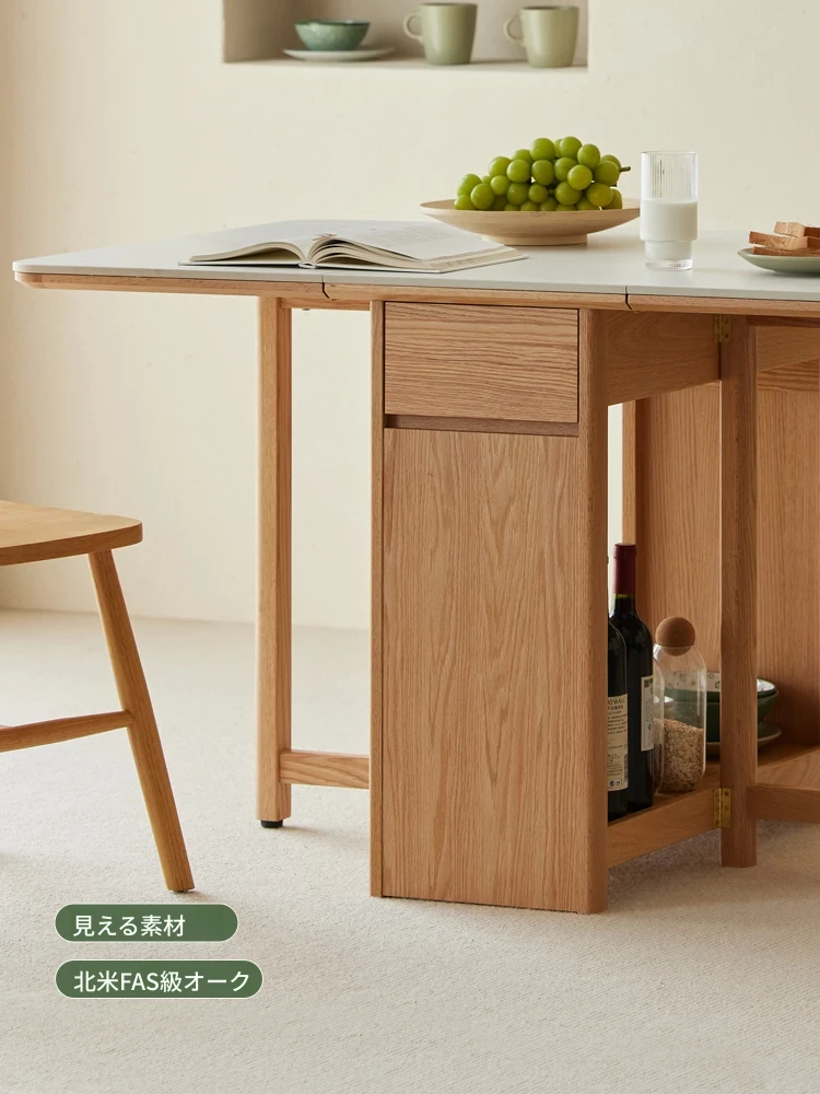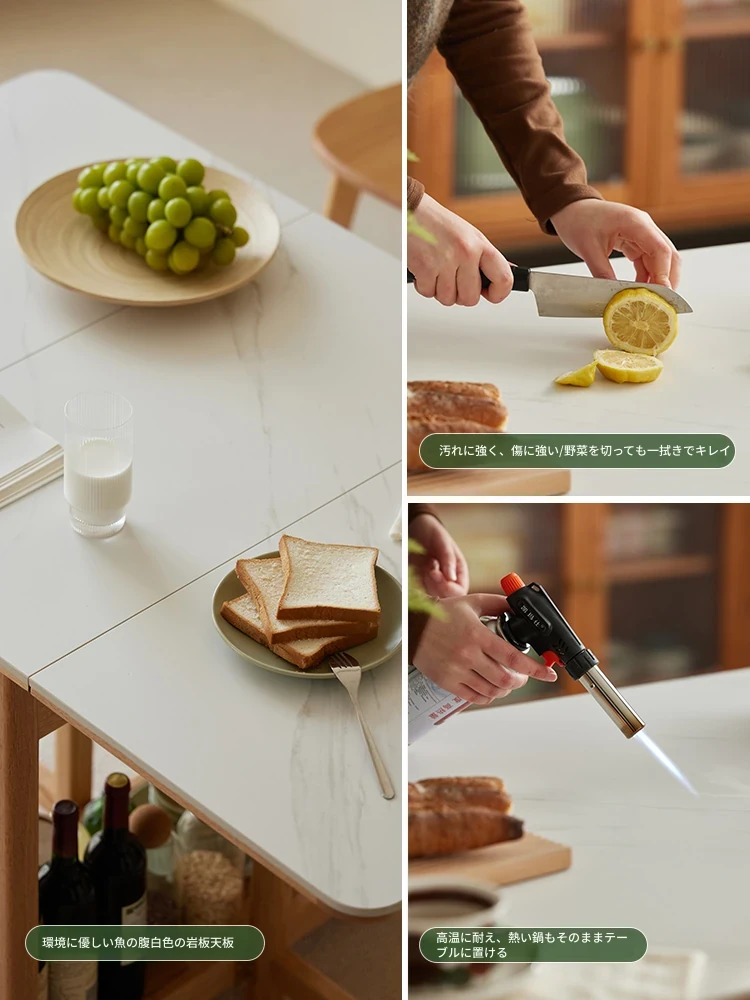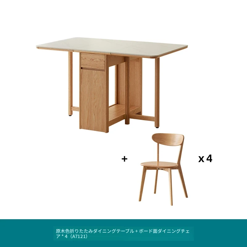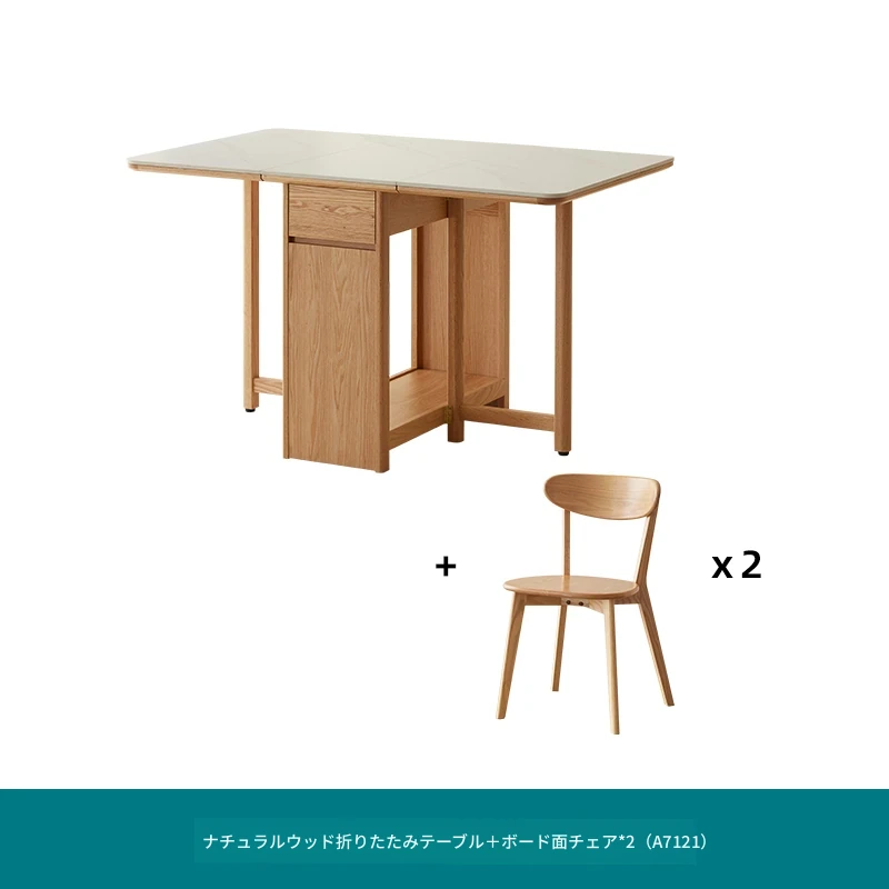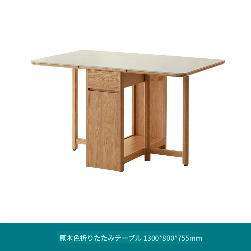 オーク色-オークの岩板ダイニングテーブル(折りたたみ)