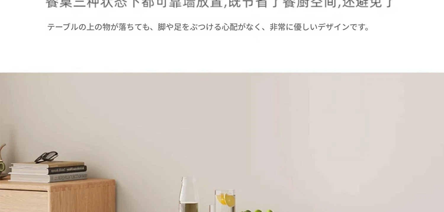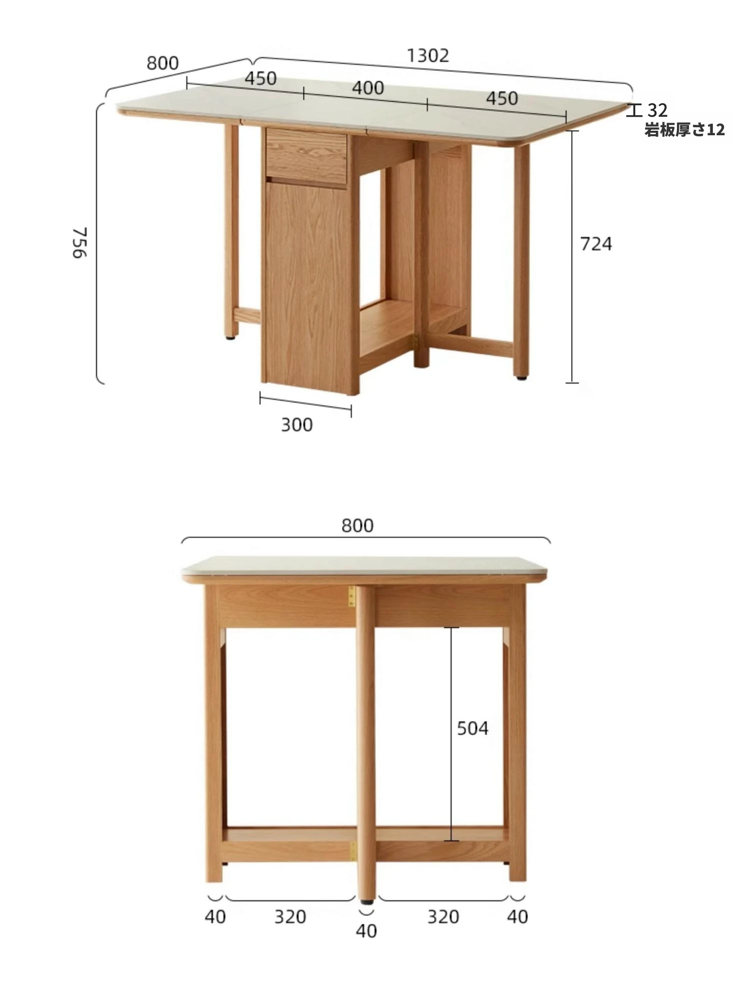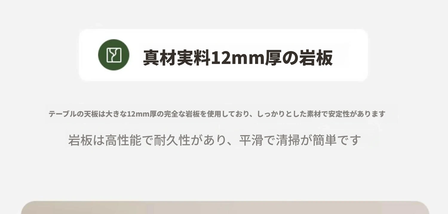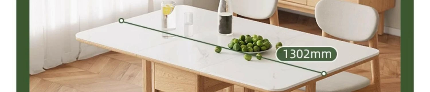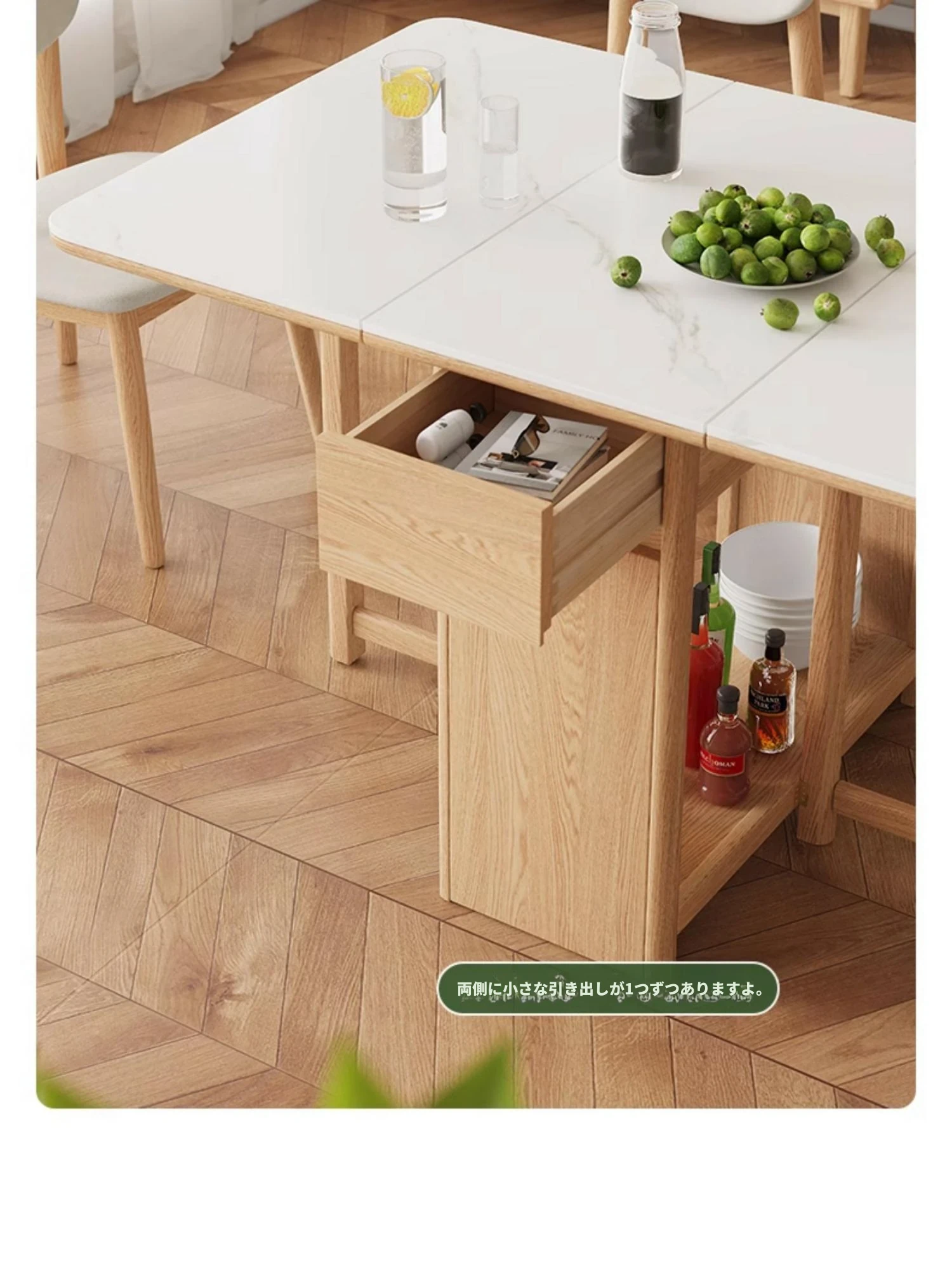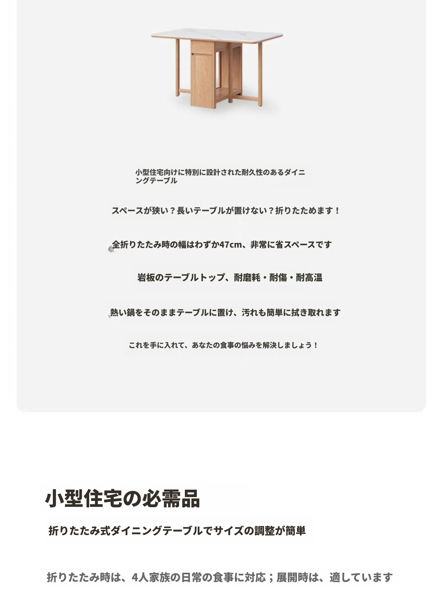 オーク色-オークの岩板ダイニングテーブル(折りたたみ)