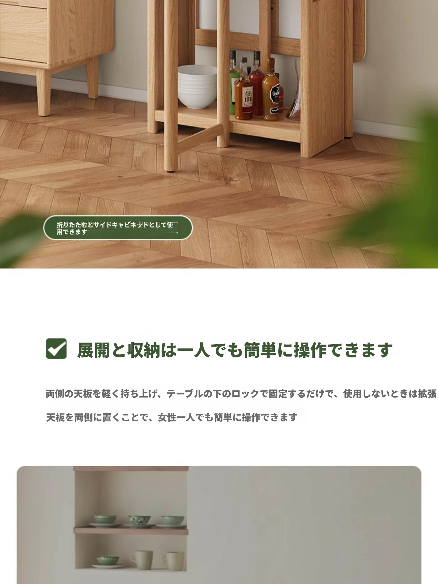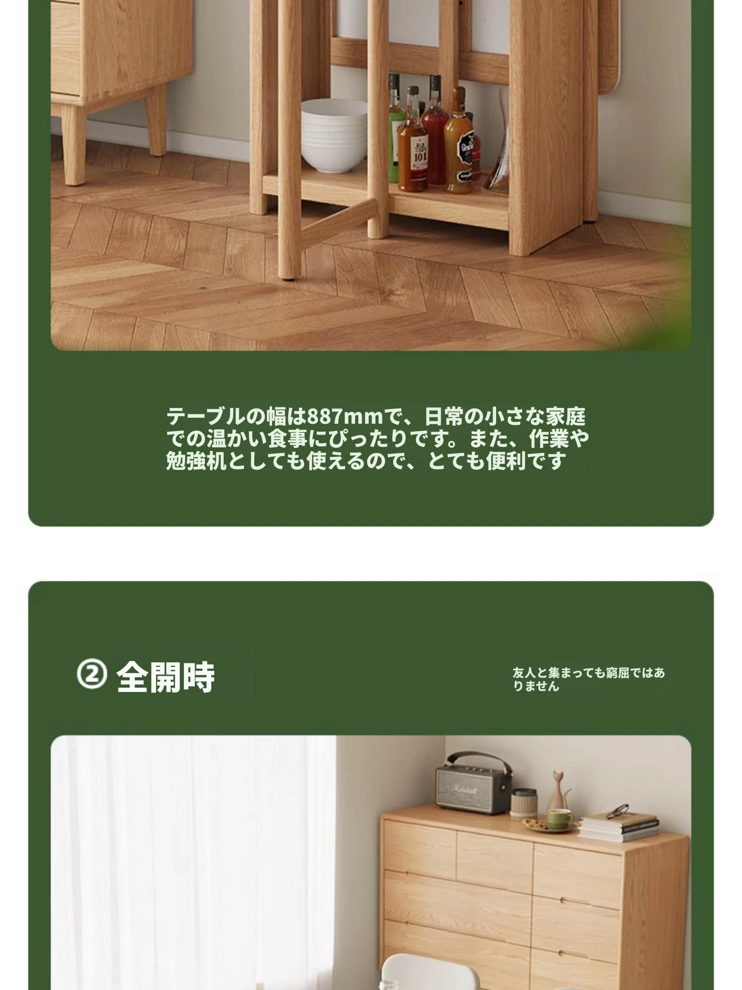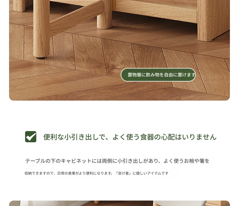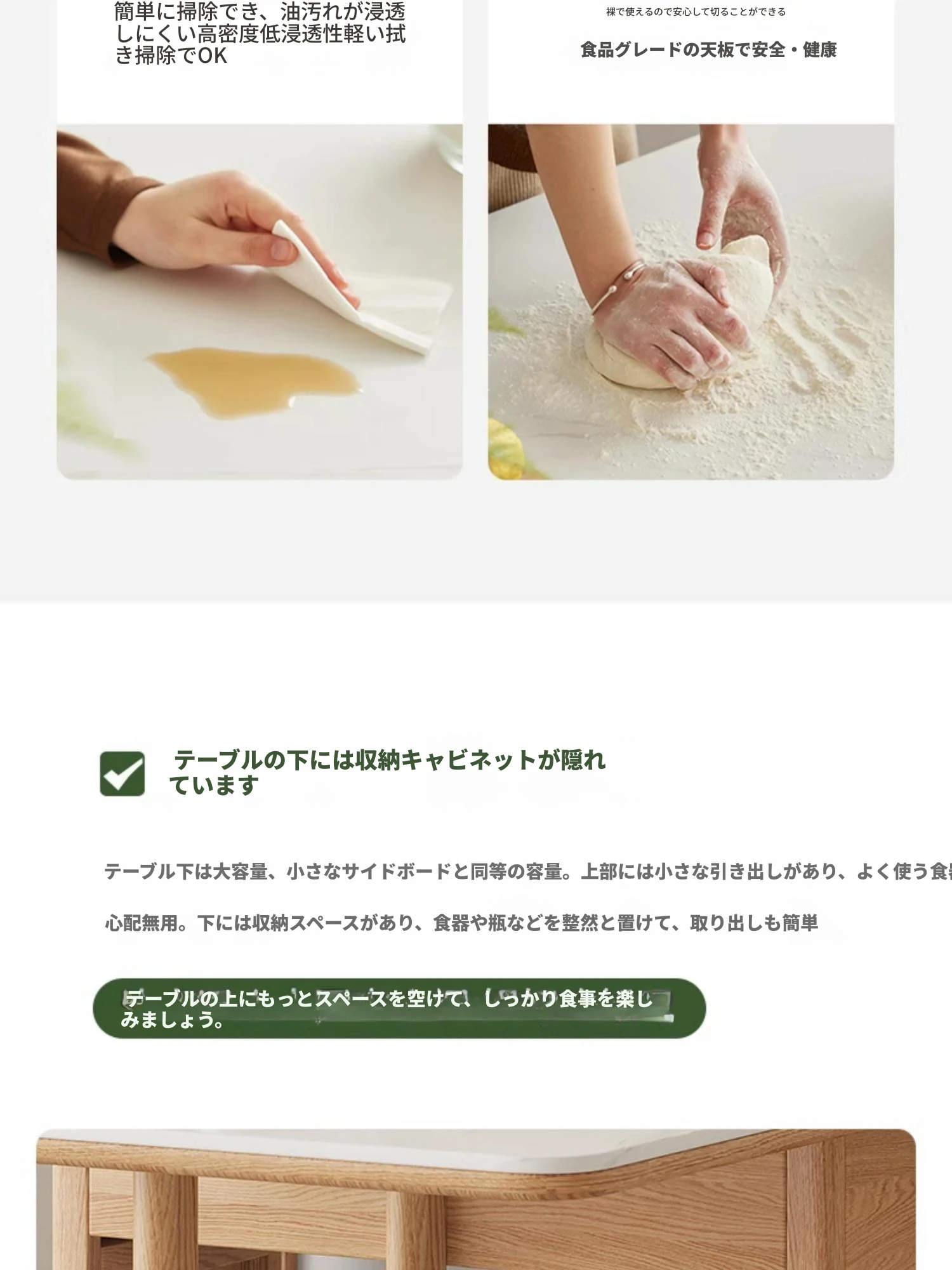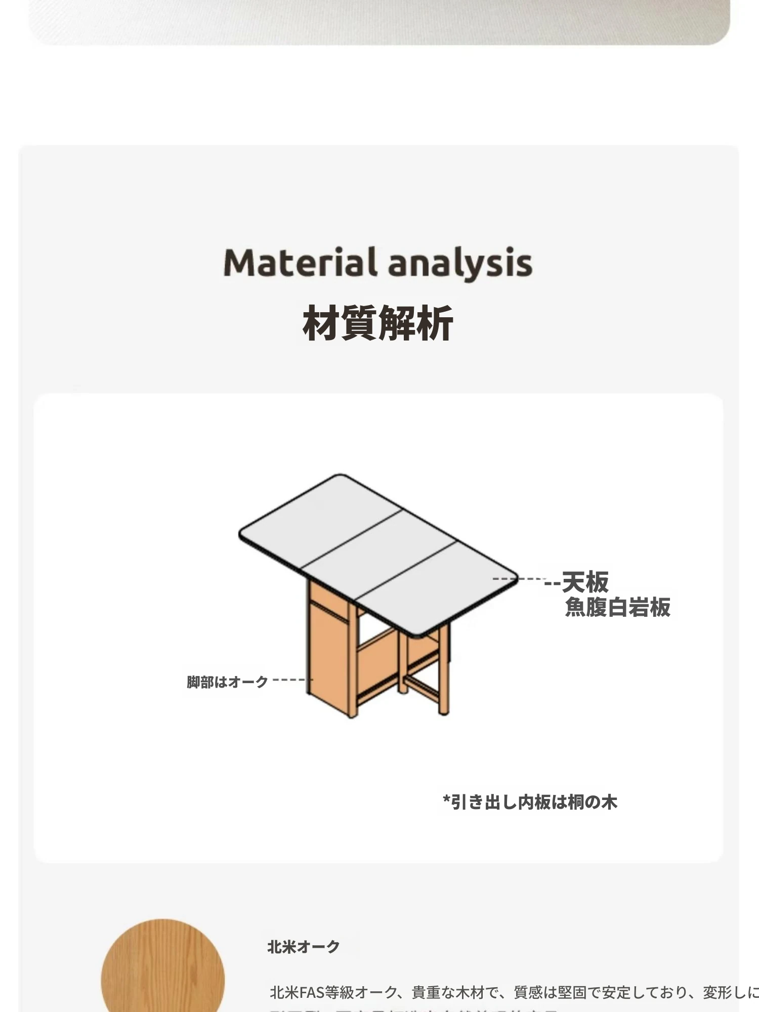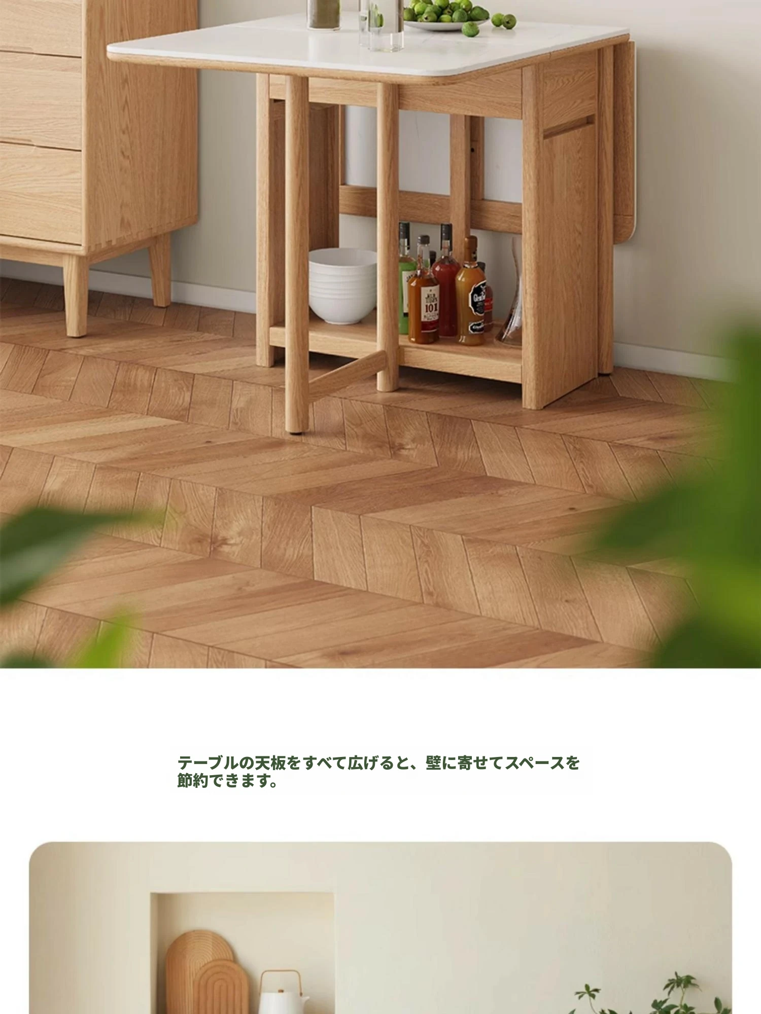 オーク色-オークの岩板ダイニングテーブル(折りたたみ)