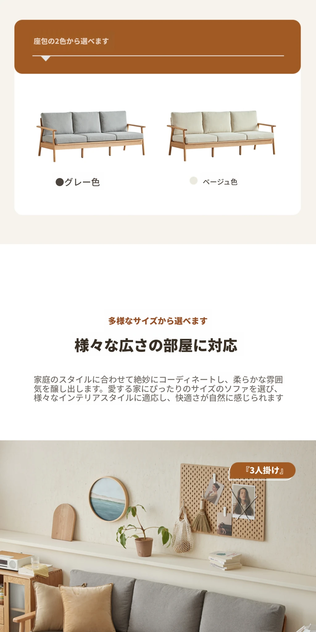 三人掛けソファ - アイボリークッション(G1061) 2010*800*760mm