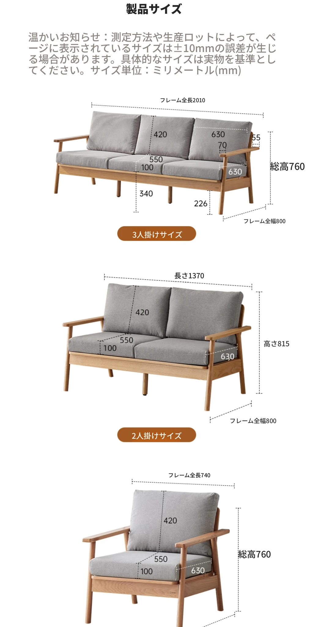 三人掛けソファ - グレークッション(G1061) 2010*800*760mm