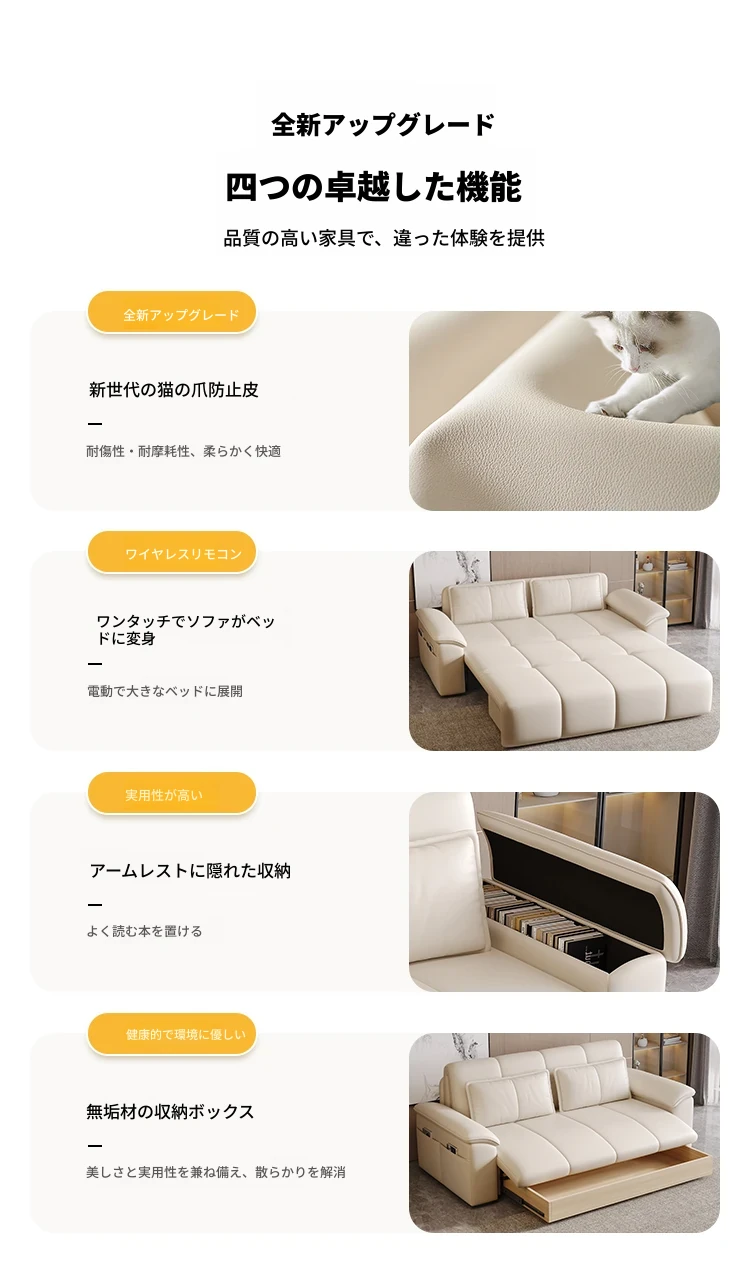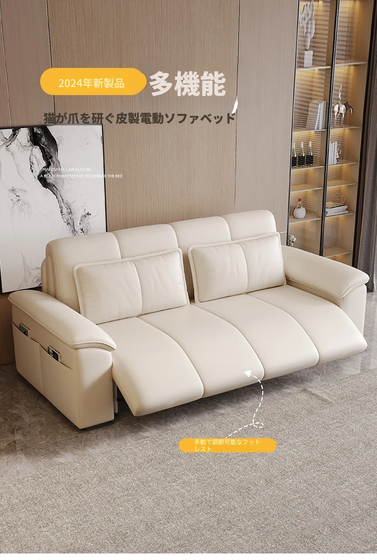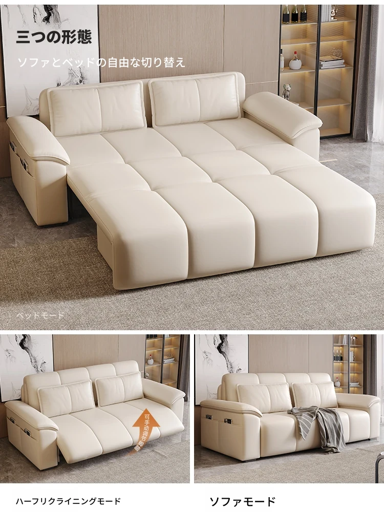スマート電動リクライニングソファベッド - 折りたたみ可能な多機能デザイン、狭い部屋にも最適なスタイリッシュなファブリックソファ!快適さと便利さを兼ね備えた最新テクノロジーの必需品!