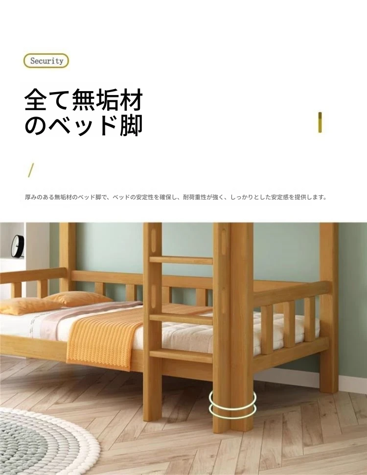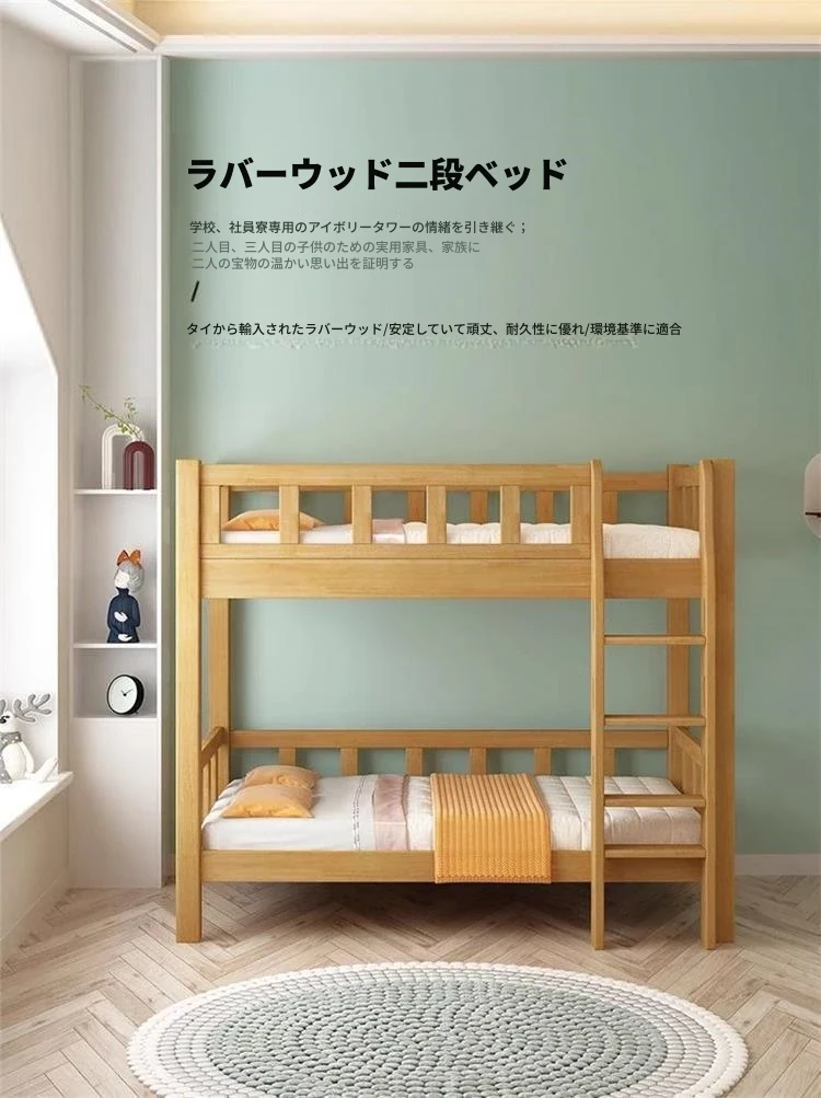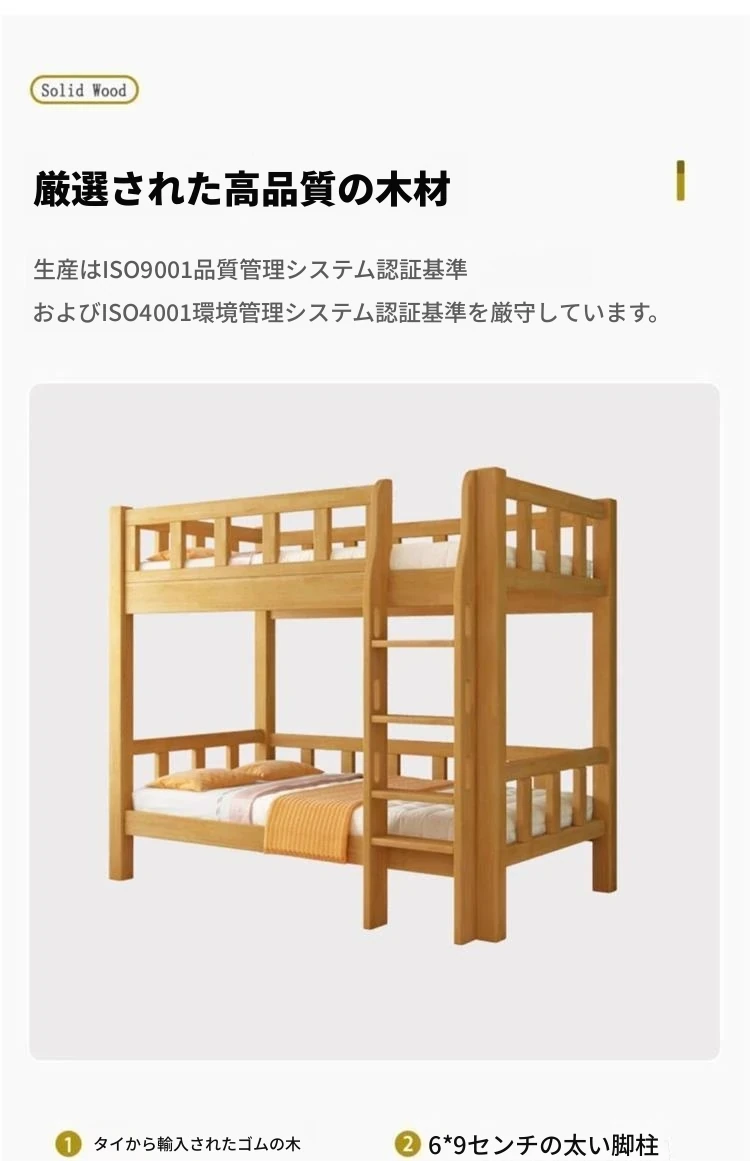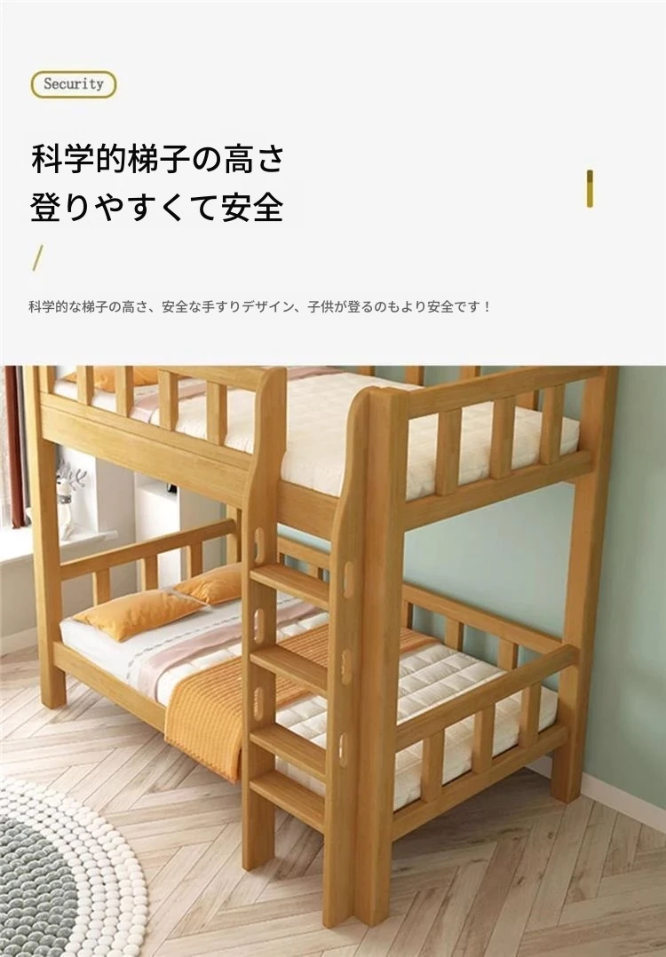高品質の無垢材製二段ベッド|省スペース設計のダブルデッキ|子供も大人も快適に眠れる!小型住宅に最適な親子ベッド|安全性とデザイン性を兼ね備えた理想の寝具。