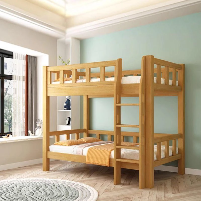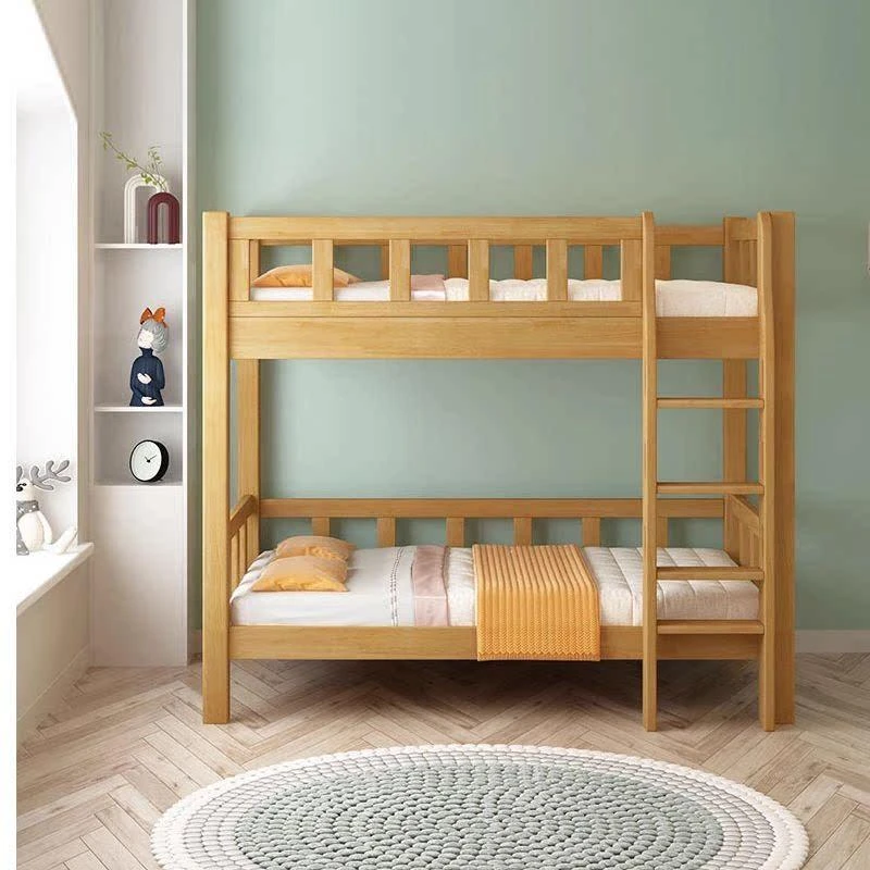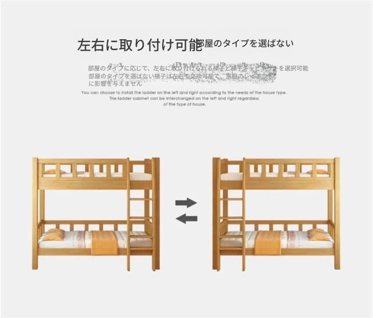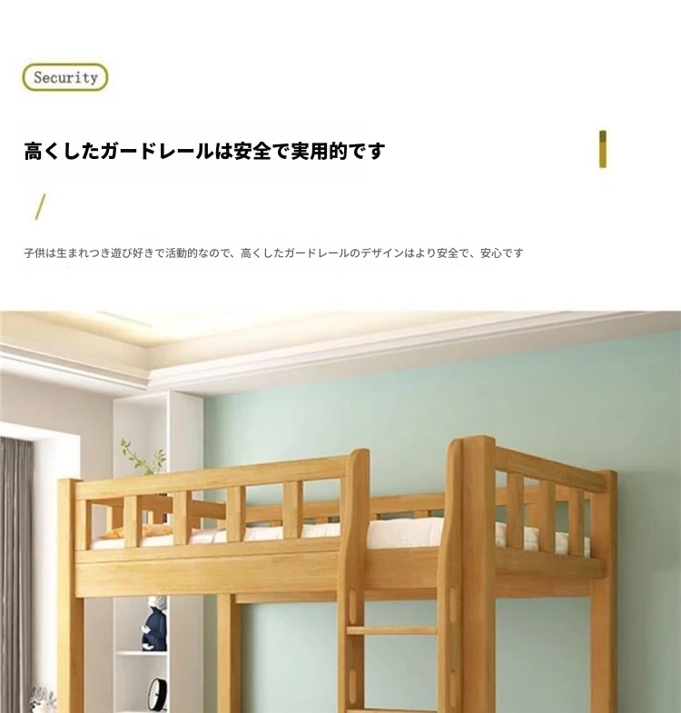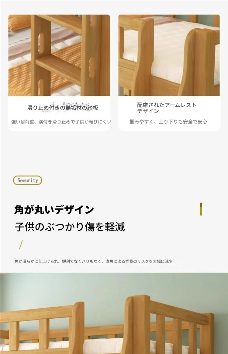 高品質の無垢材製二段ベッド|省スペース設計のダブルデッキ|子供も大人も快適に眠れる!小型住宅に最適な親子ベッド|安全性とデザイン性を兼ね備えた理想の寝具。
