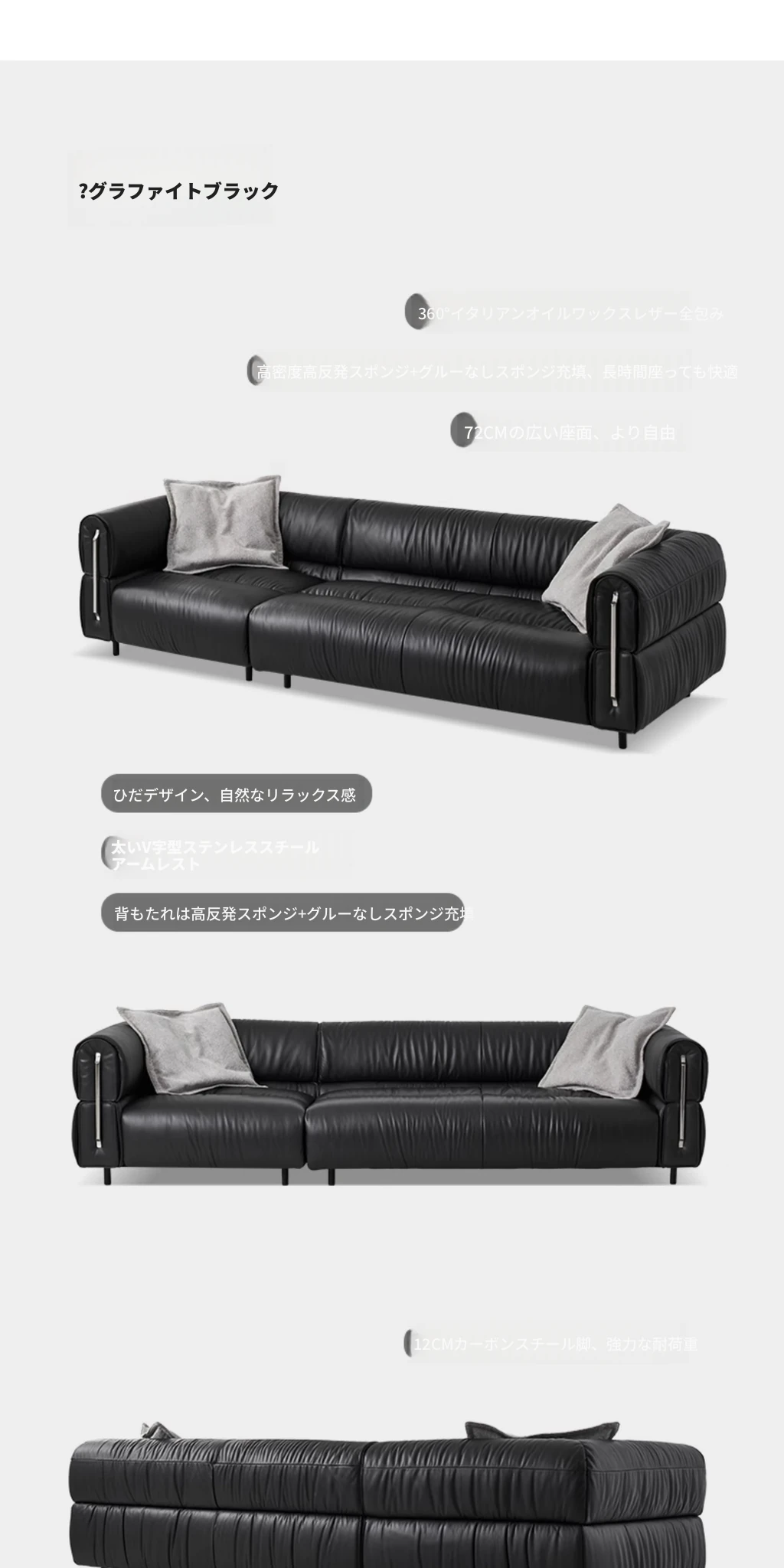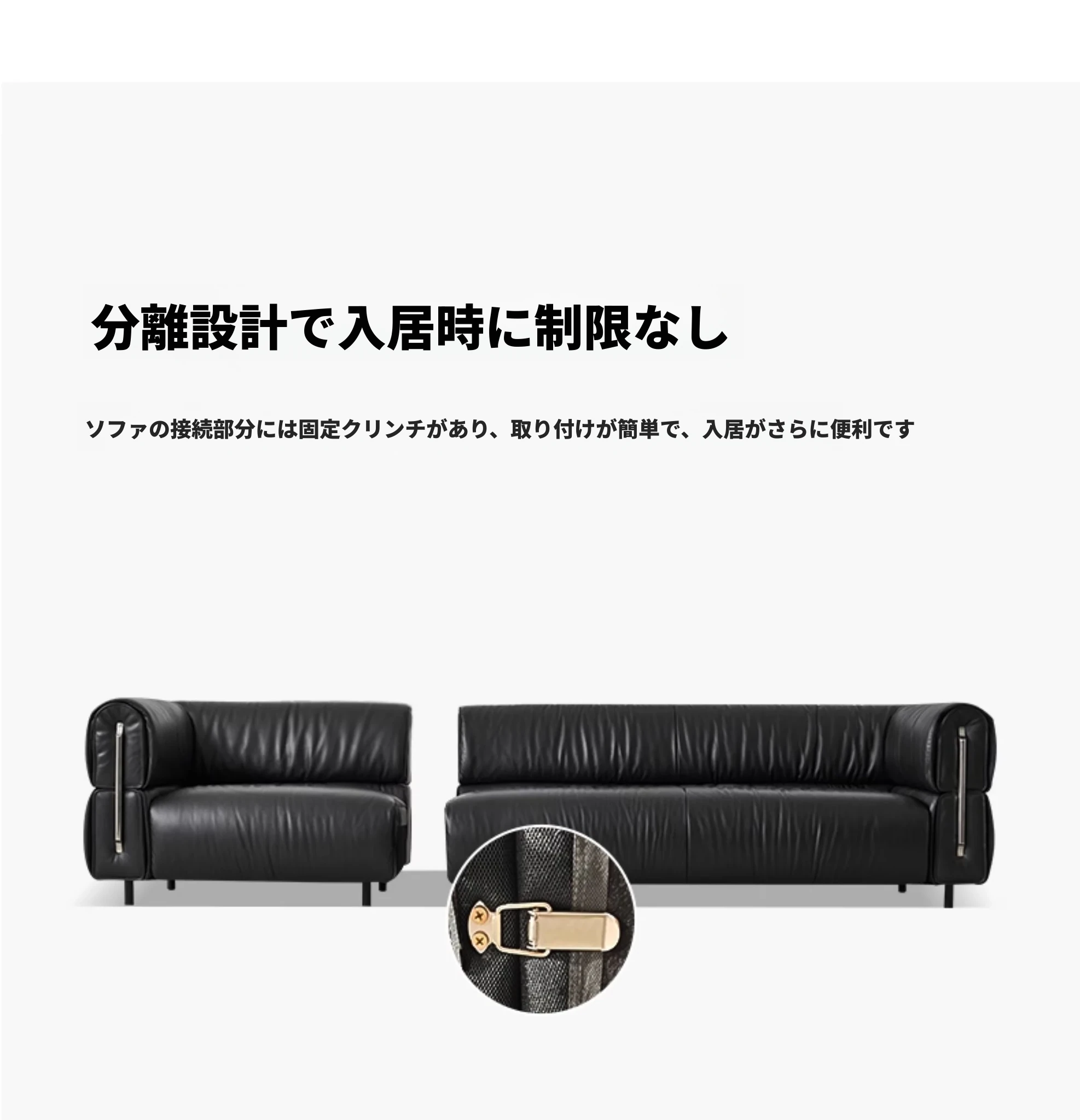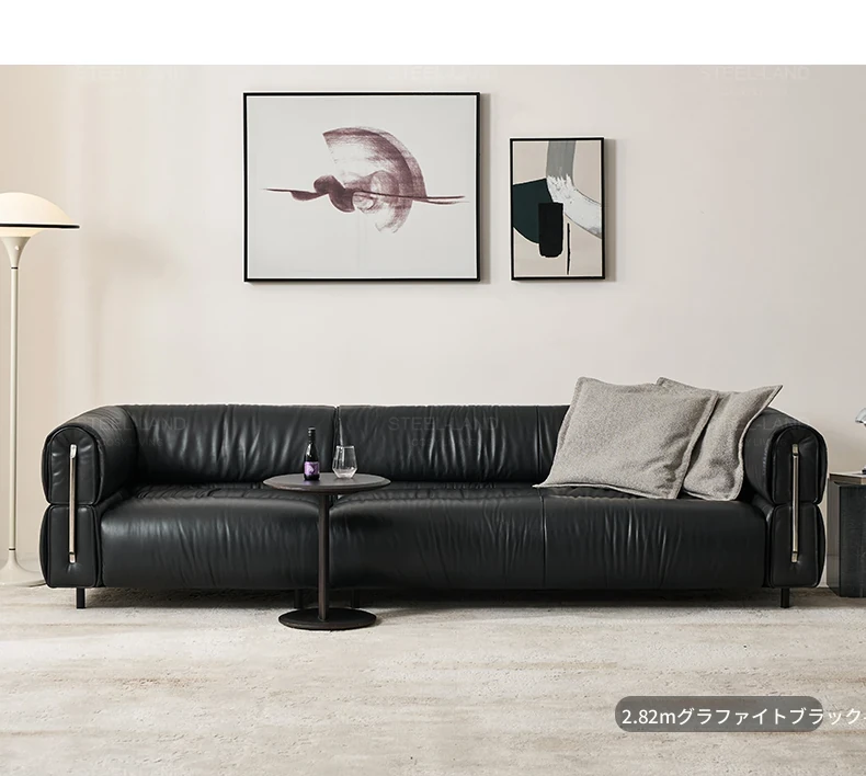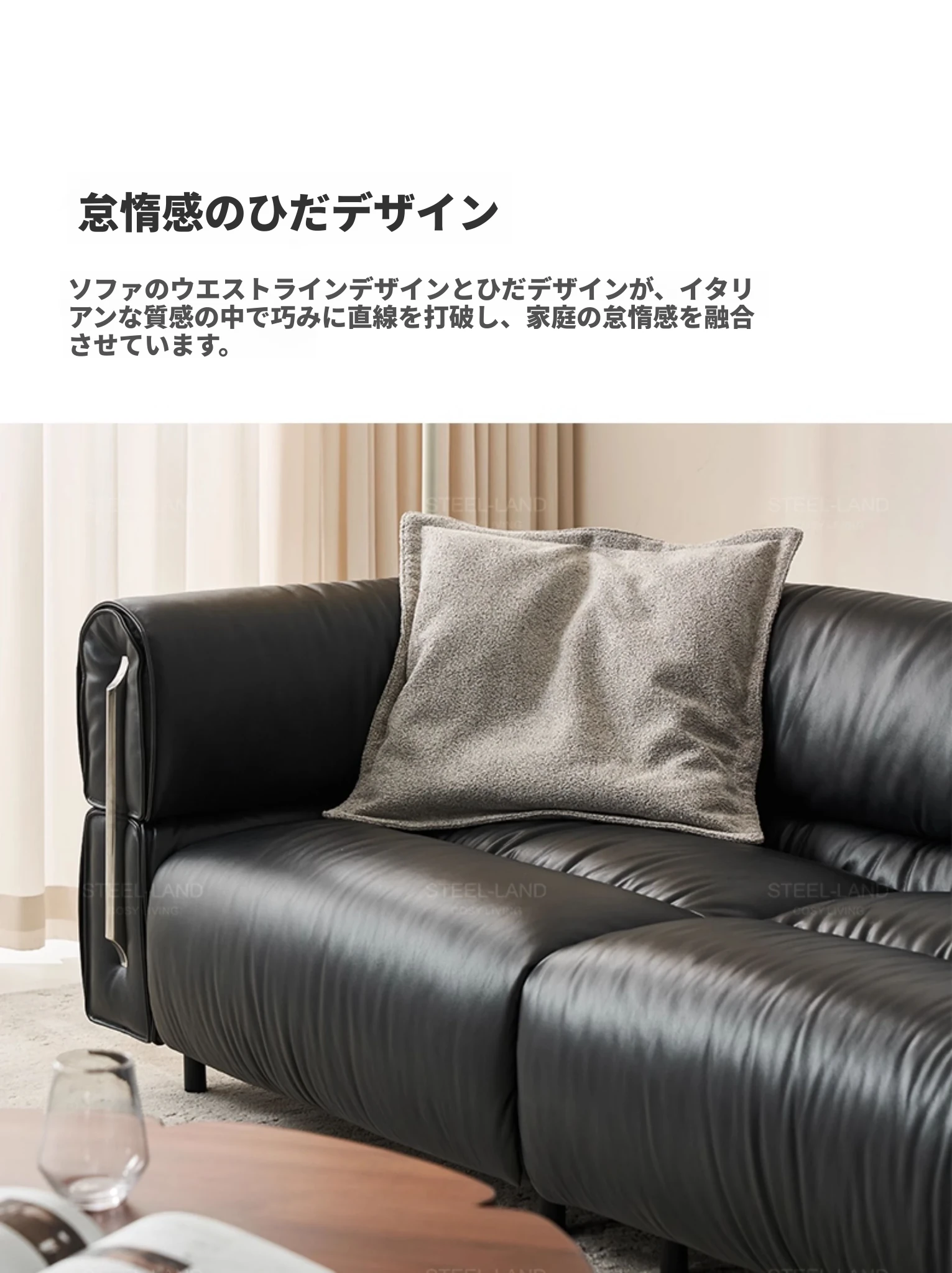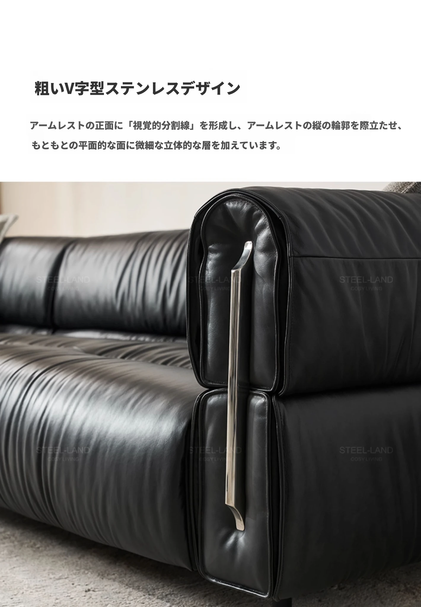スティロラン ベルカ 全真皮ソファ ブラック ヘビーレザーのクラシックスタイル リビングルームソファ - 高級感あふれるデザインで、あなたの空間を華やかに演出します!