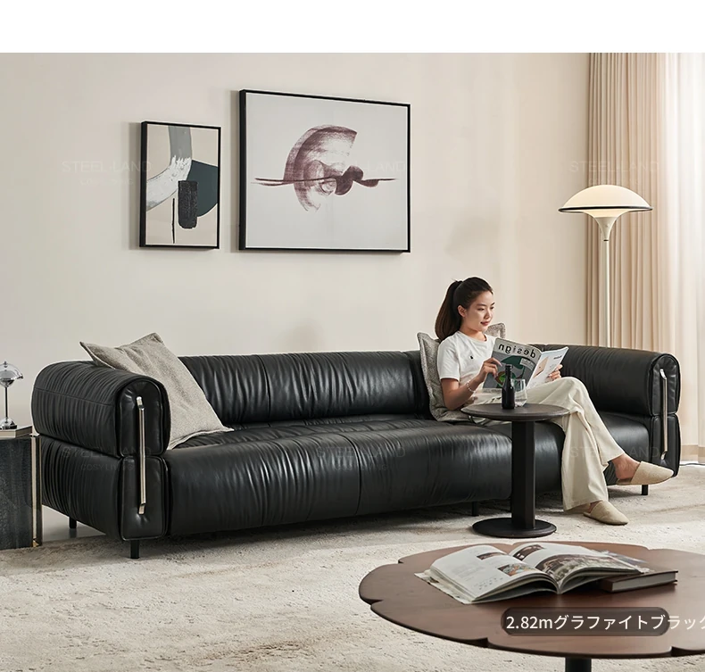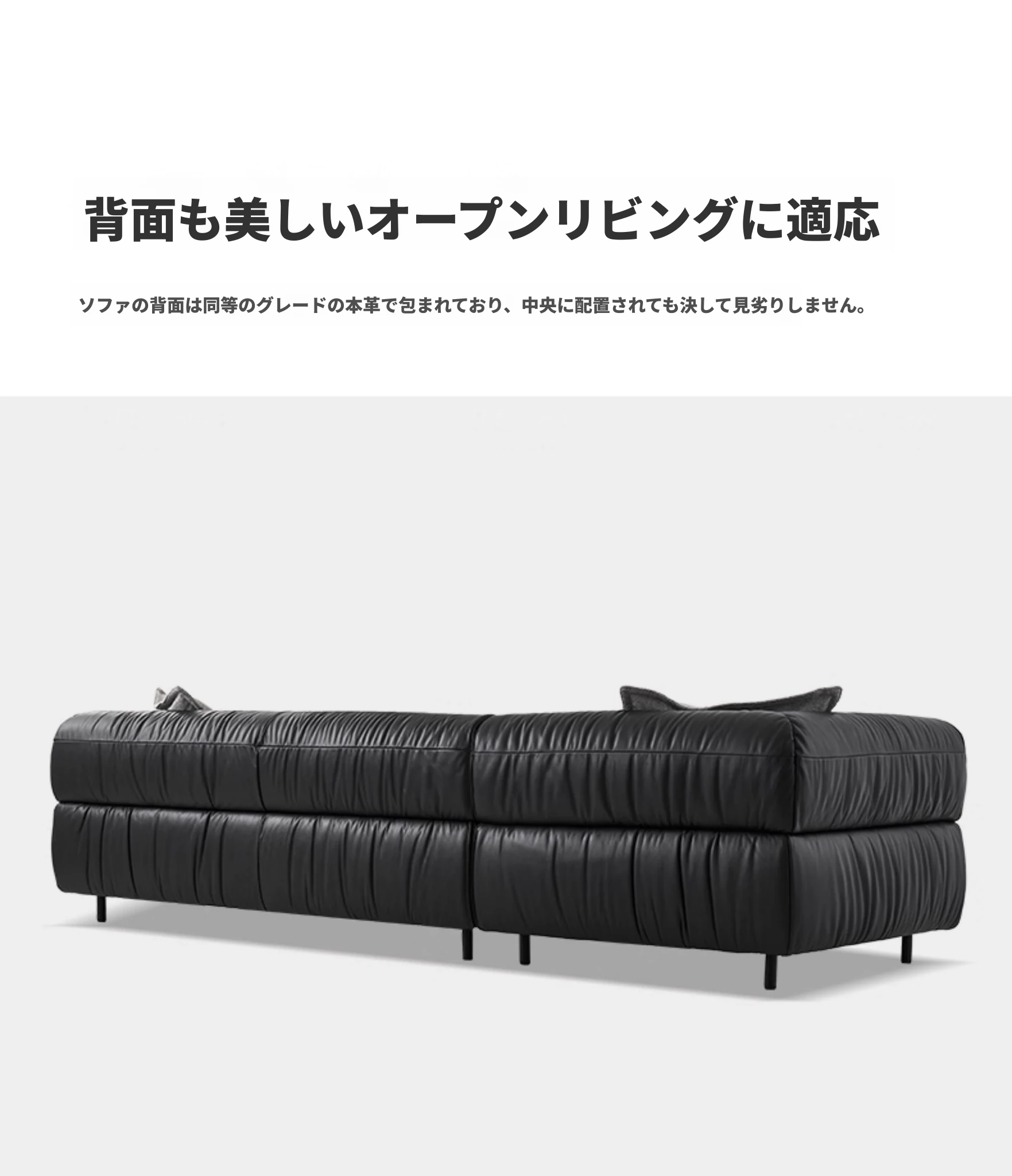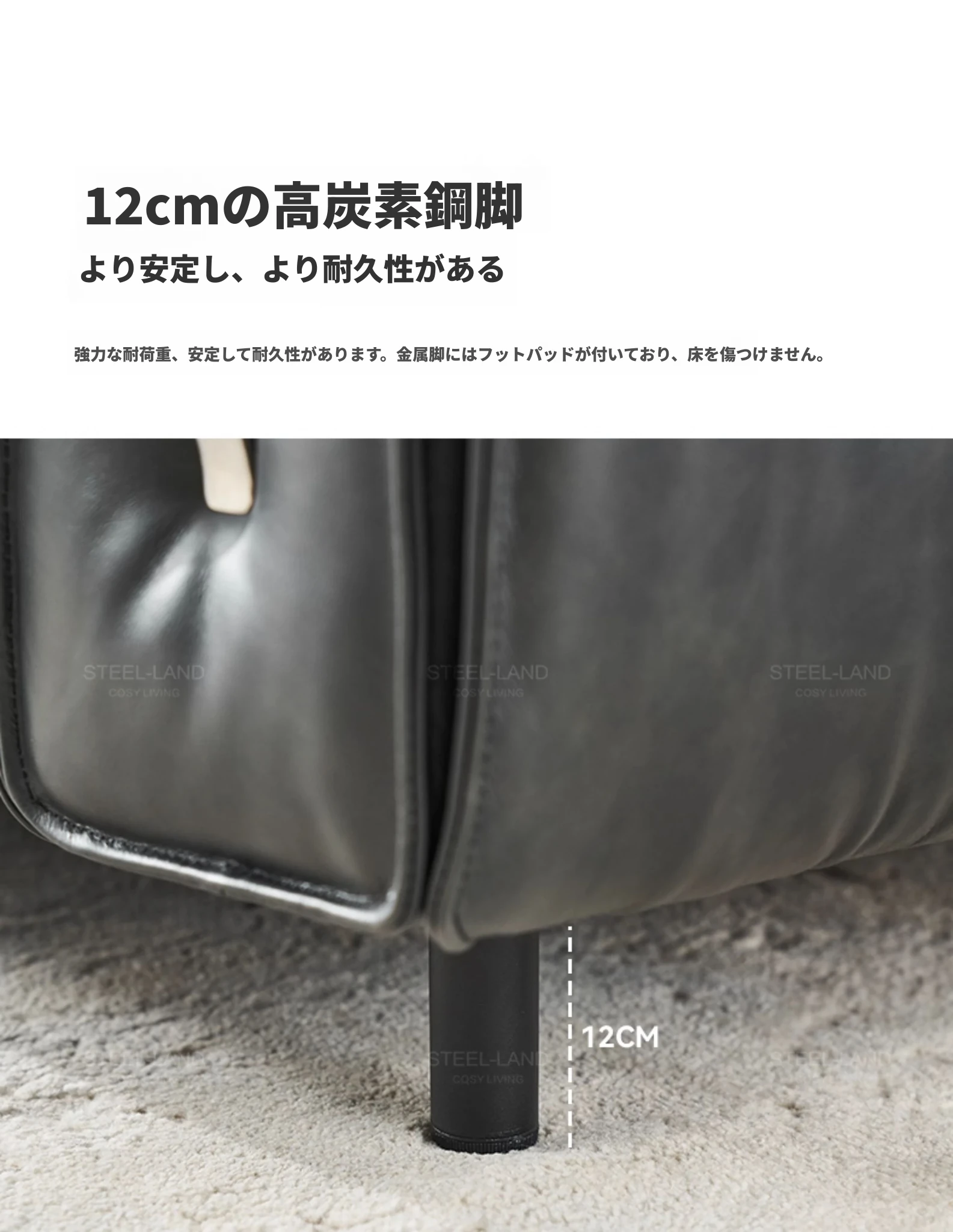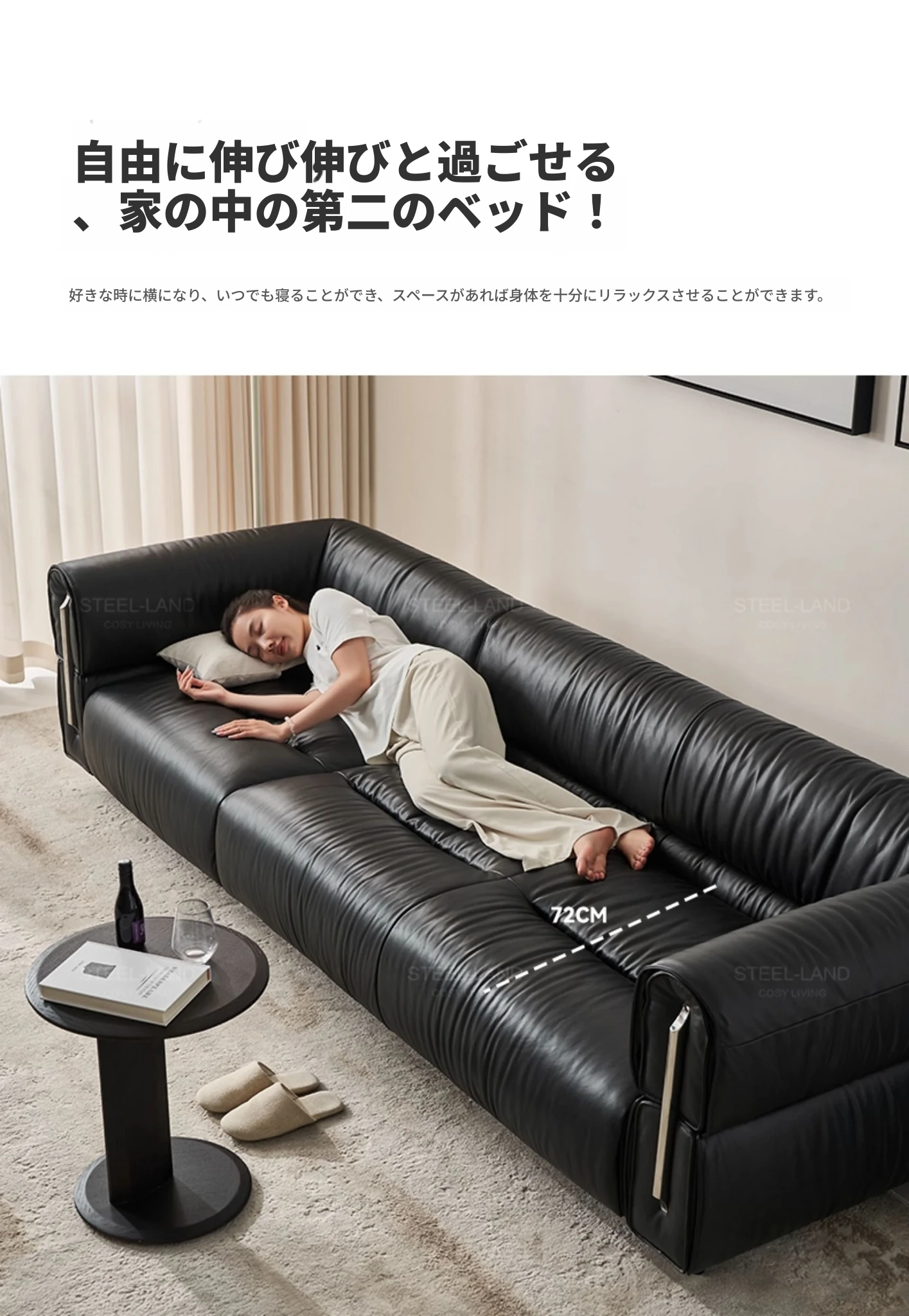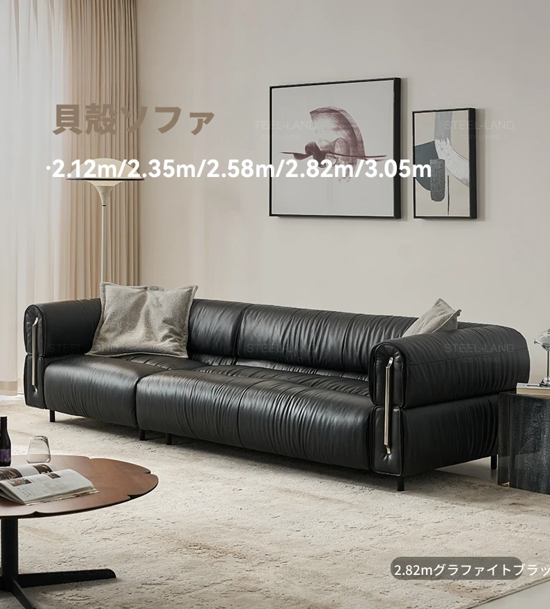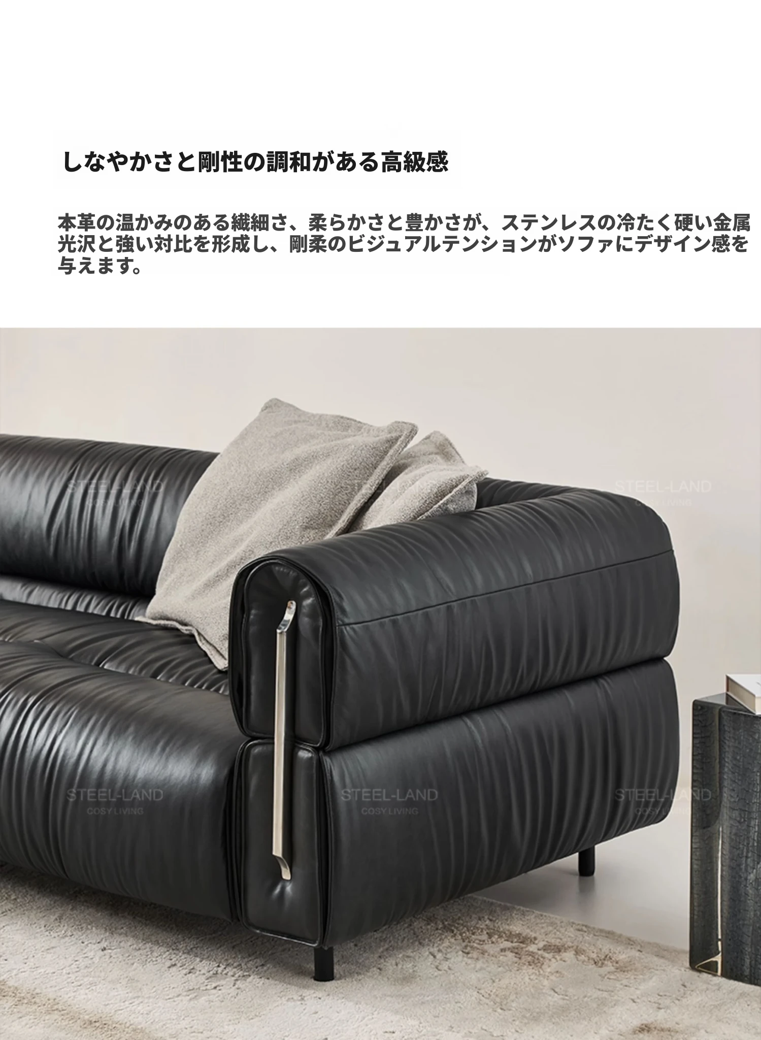 スティロラン ベルカ 全真皮ソファ ブラック ヘビーレザーのクラシックスタイル リビングルームソファ - 高級感あふれるデザインで、あなたの空間を華やかに演出します!