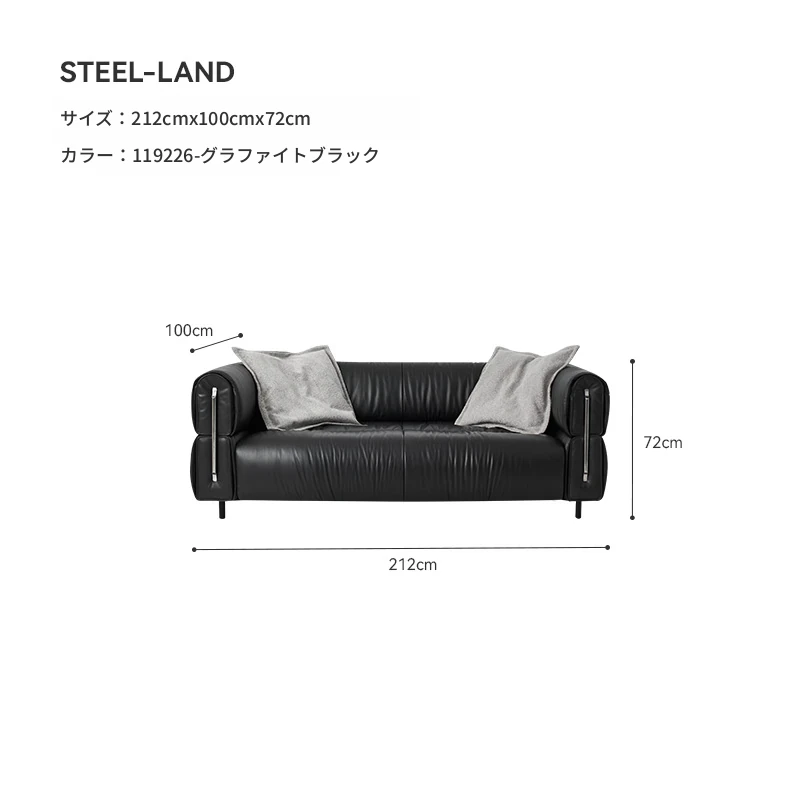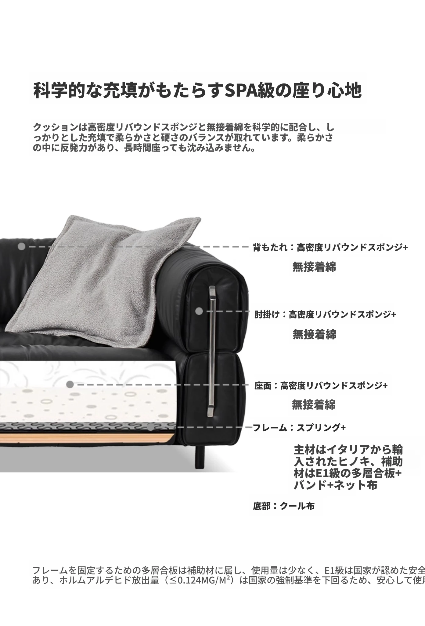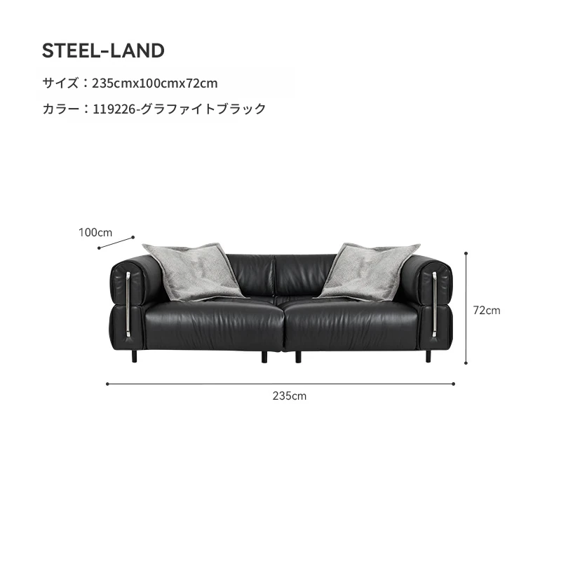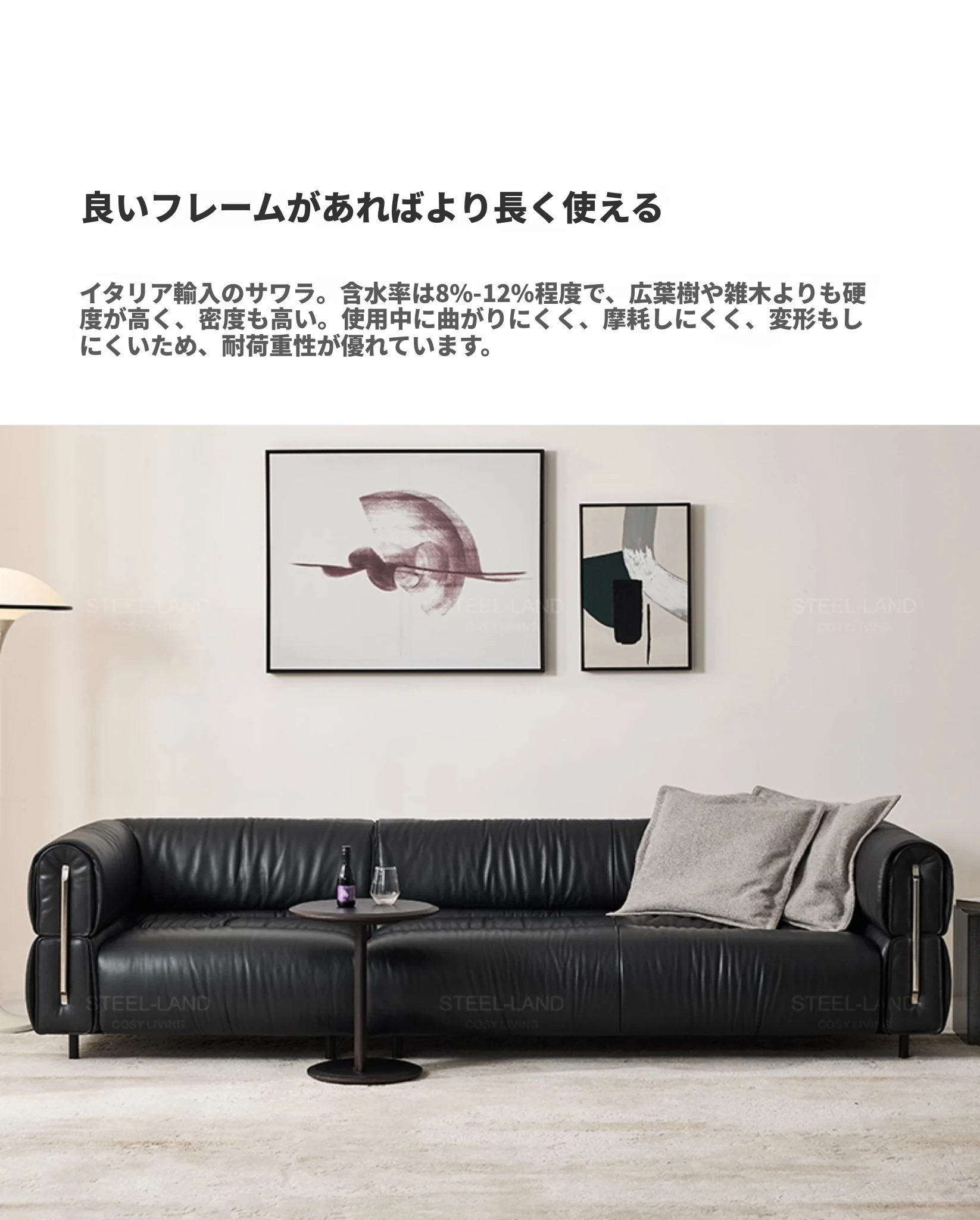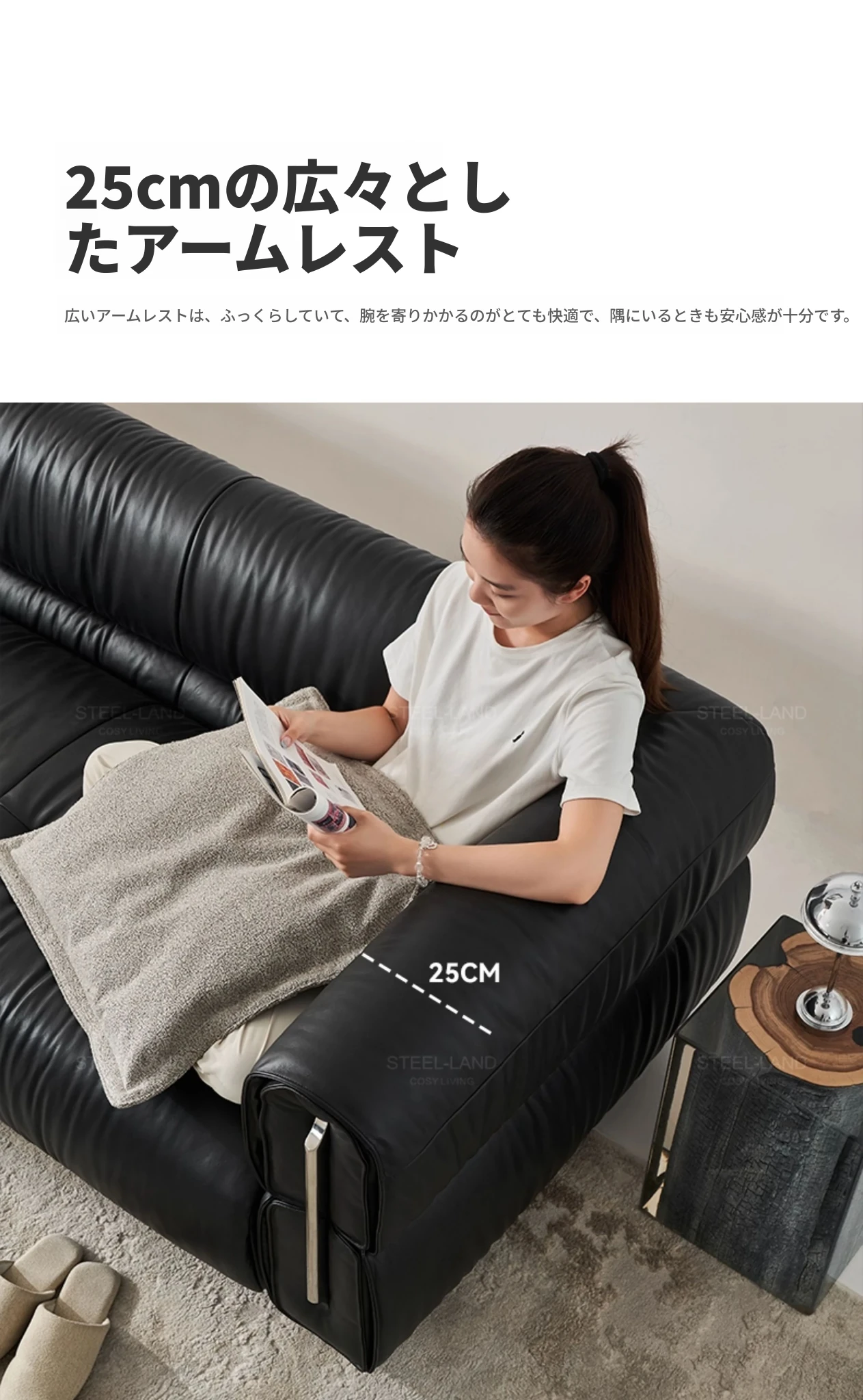 スティロラン ベルカ 全真皮ソファ ブラック ヘビーレザーのクラシックスタイル リビングルームソファ - 高級感あふれるデザインで、あなたの空間を華やかに演出します!