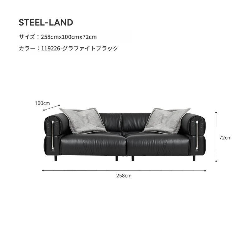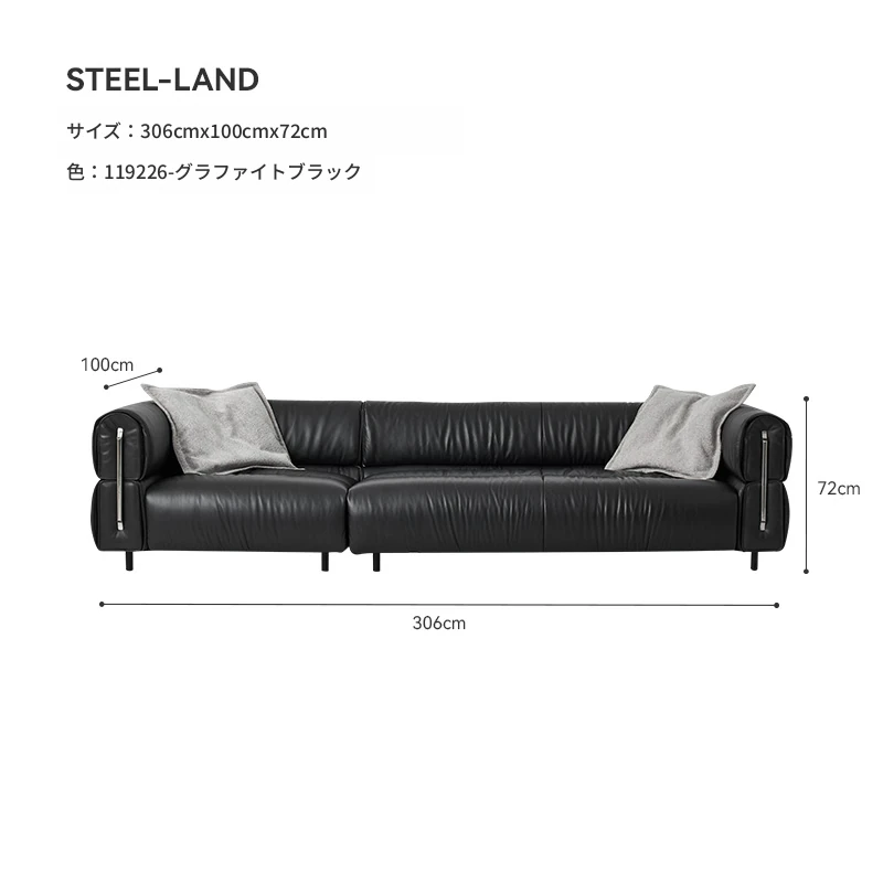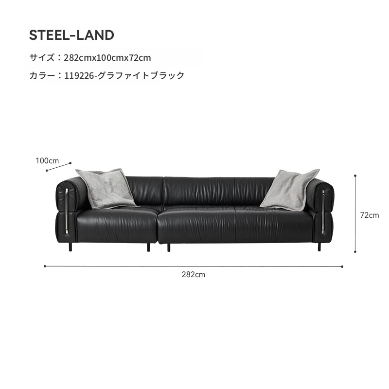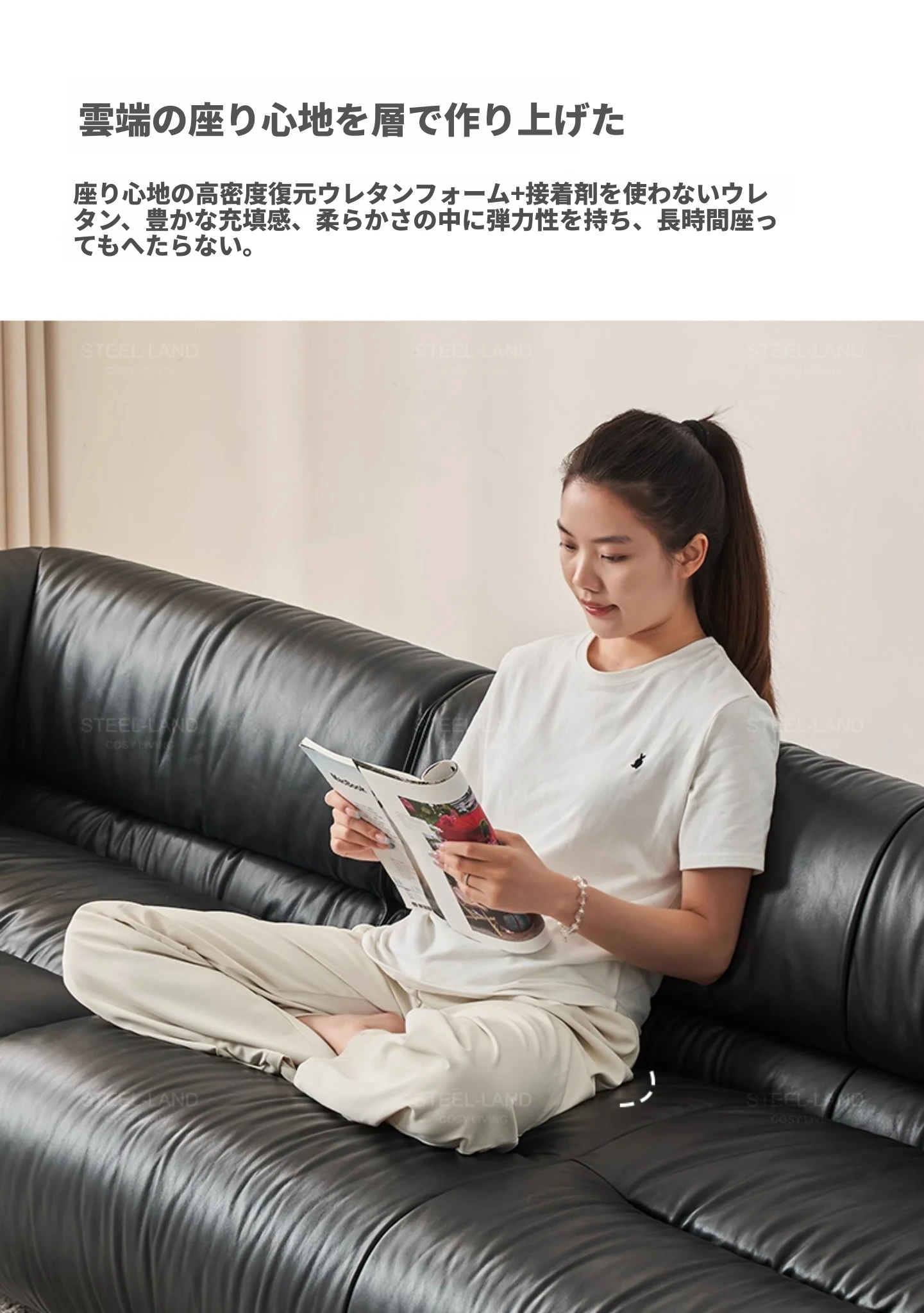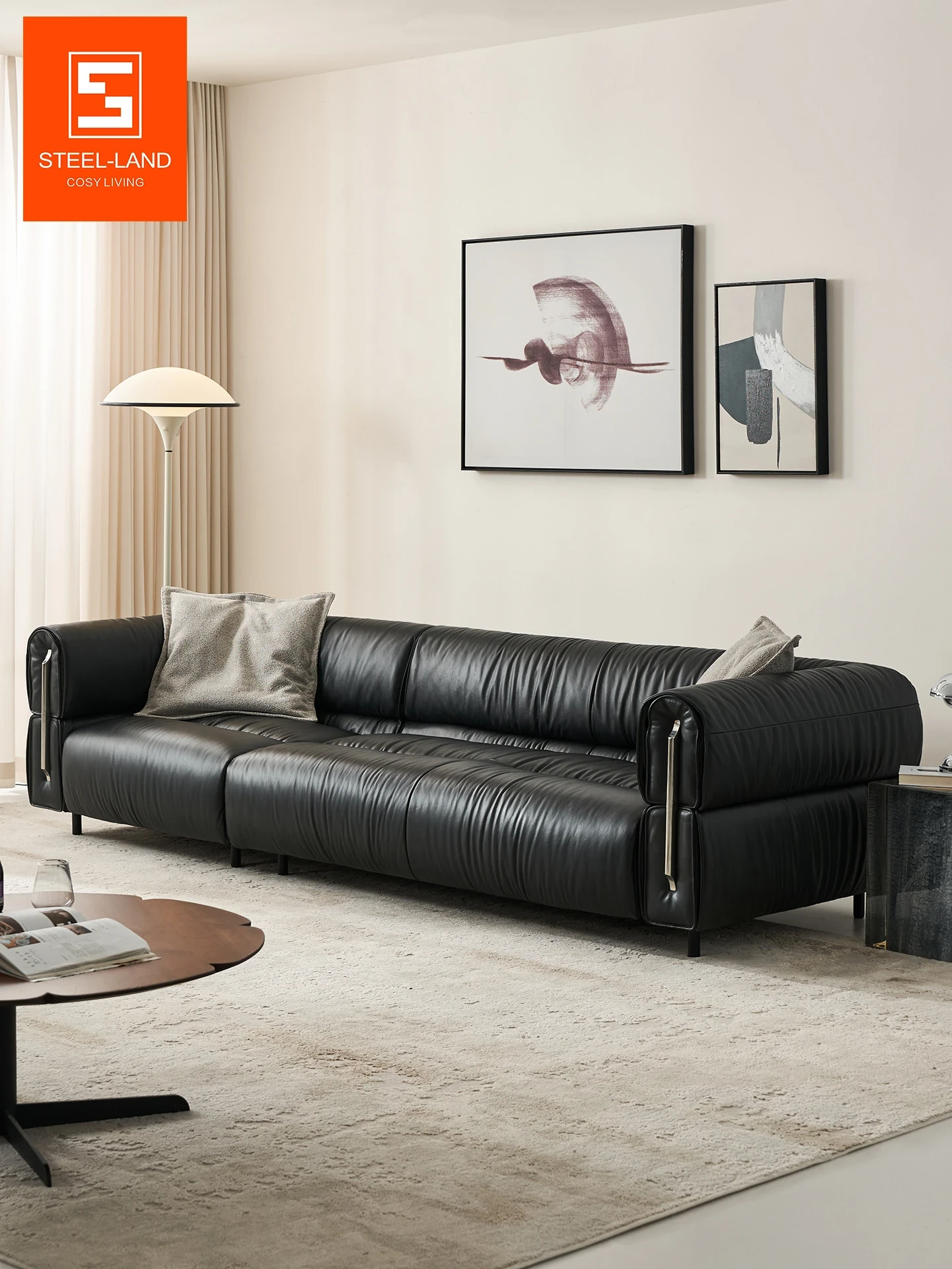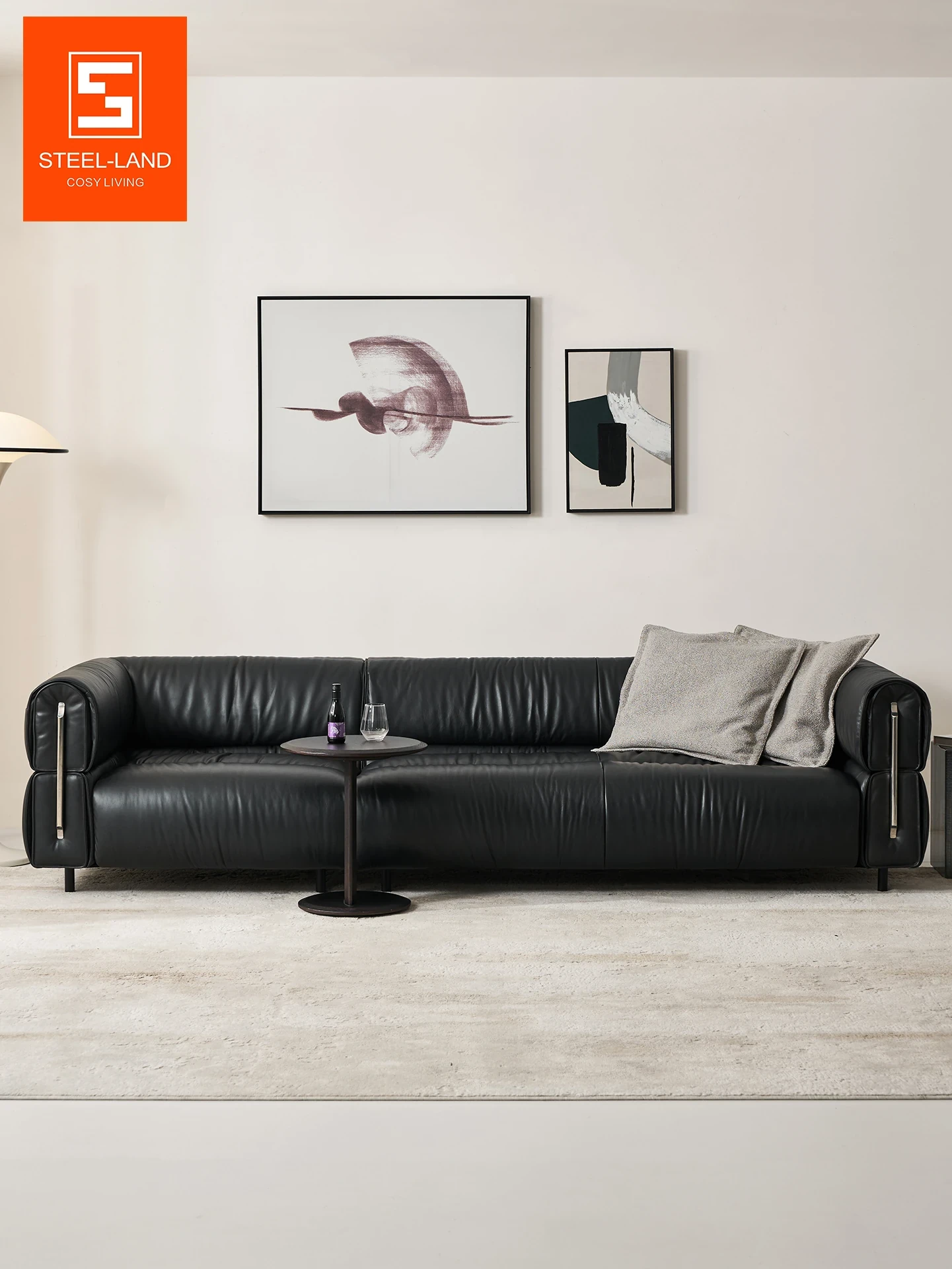 スティロラン ベルカ 全真皮ソファ ブラック ヘビーレザーのクラシックスタイル リビングルームソファ - 高級感あふれるデザインで、あなたの空間を華やかに演出します!