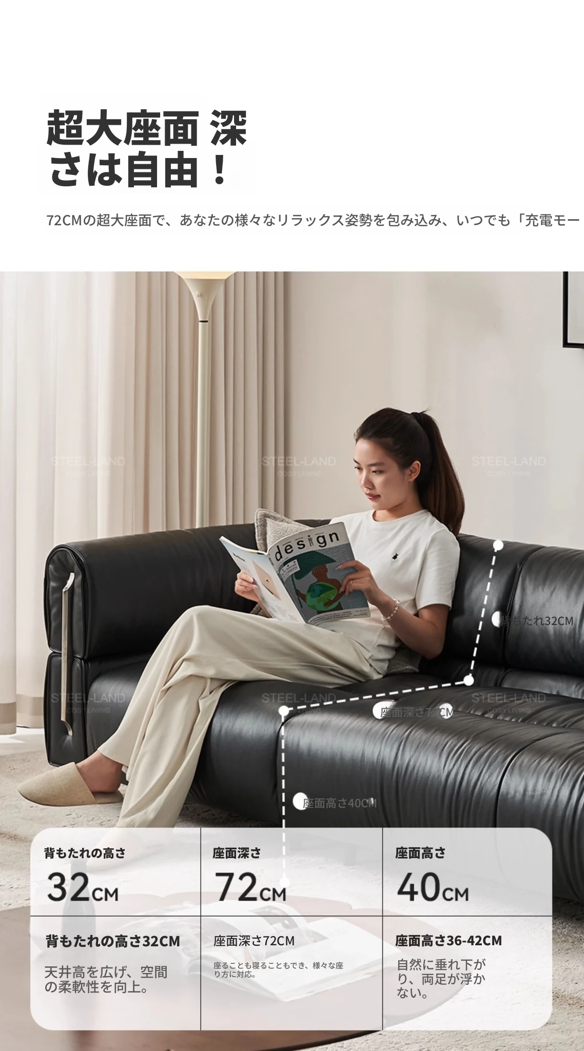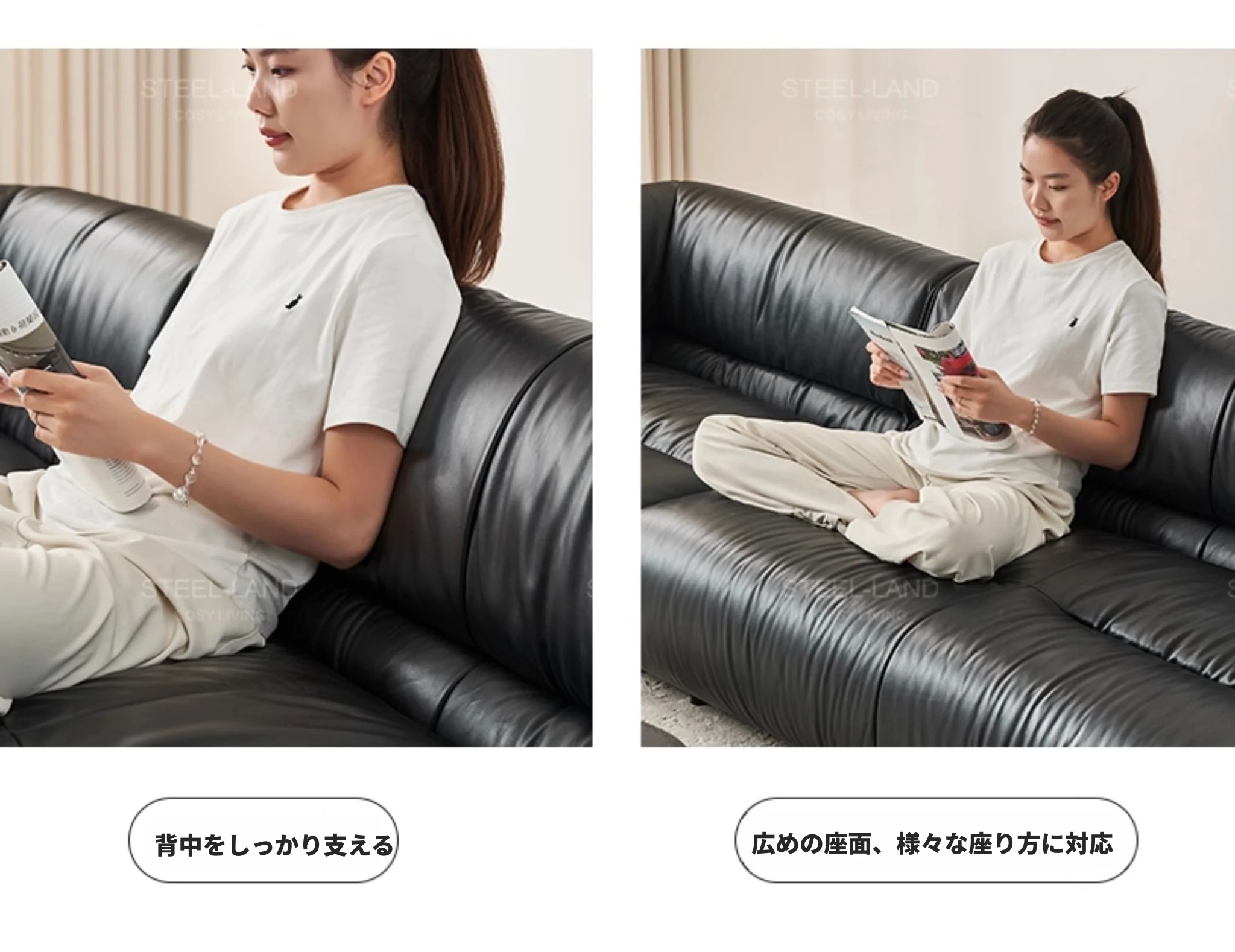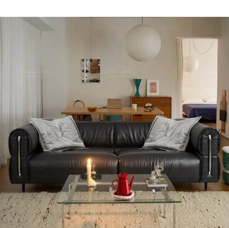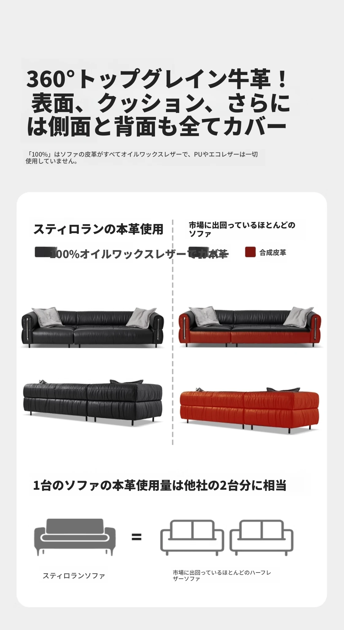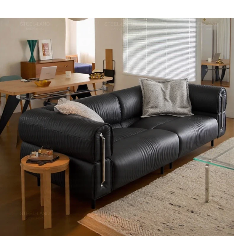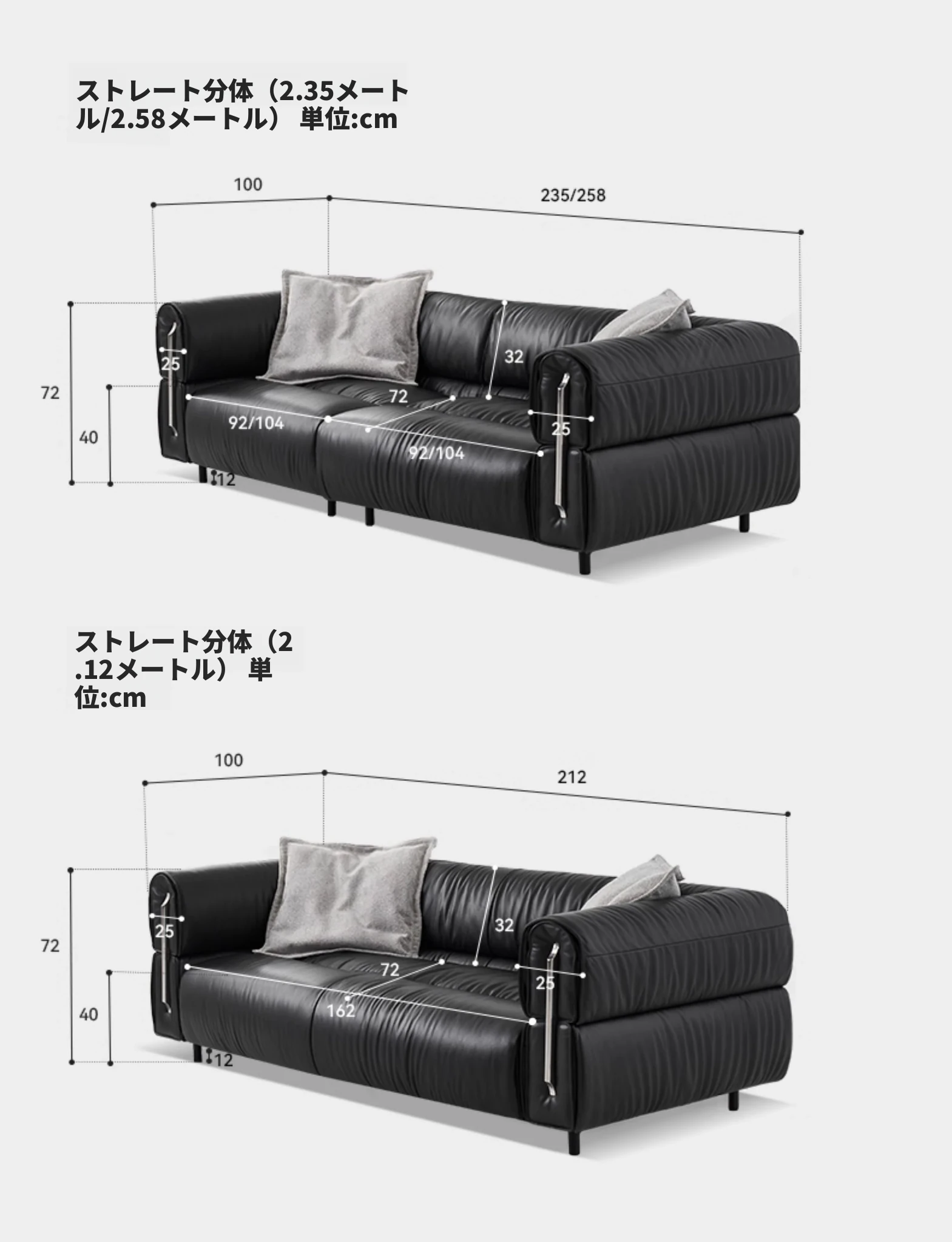 スティロラン ベルカ 全真皮ソファ ブラック ヘビーレザーのクラシックスタイル リビングルームソファ - 高級感あふれるデザインで、あなたの空間を華やかに演出します!