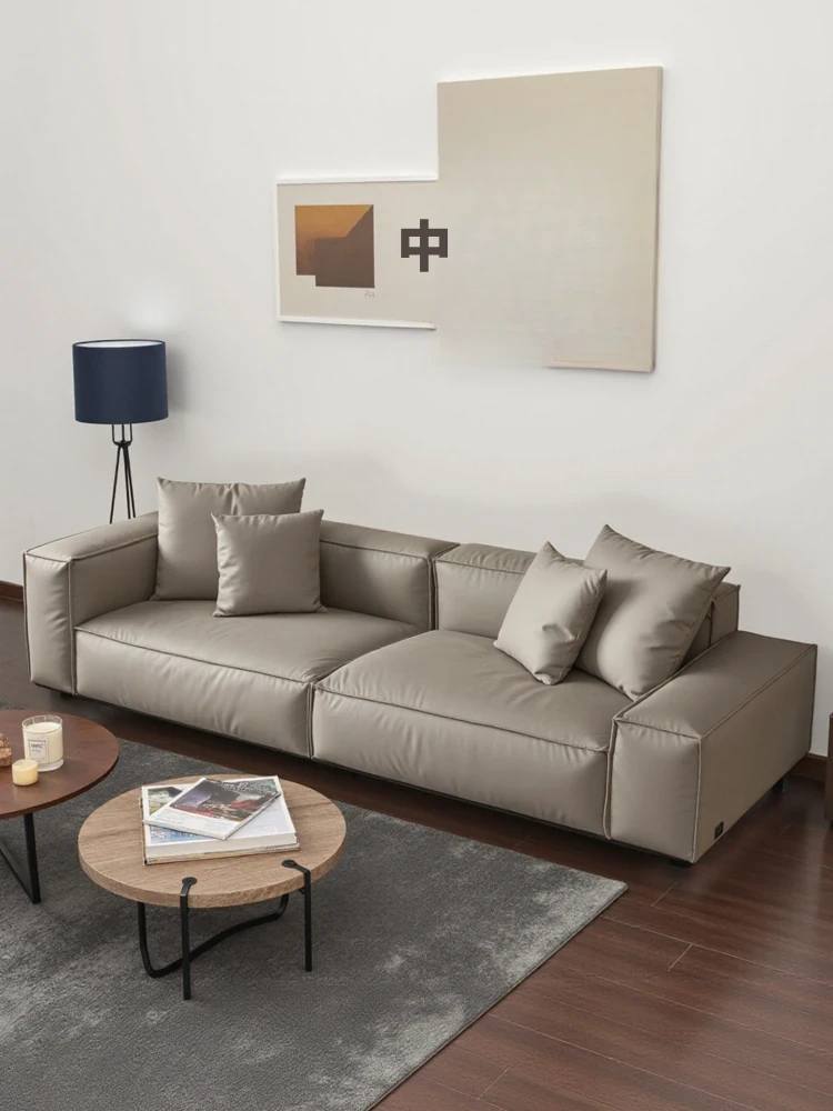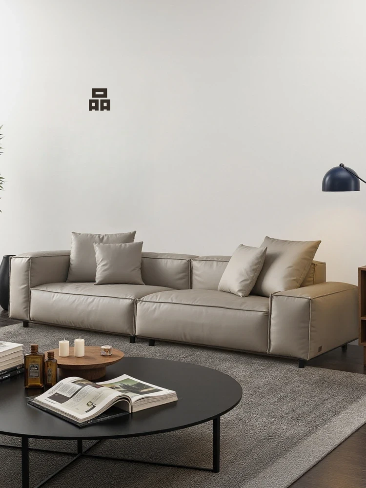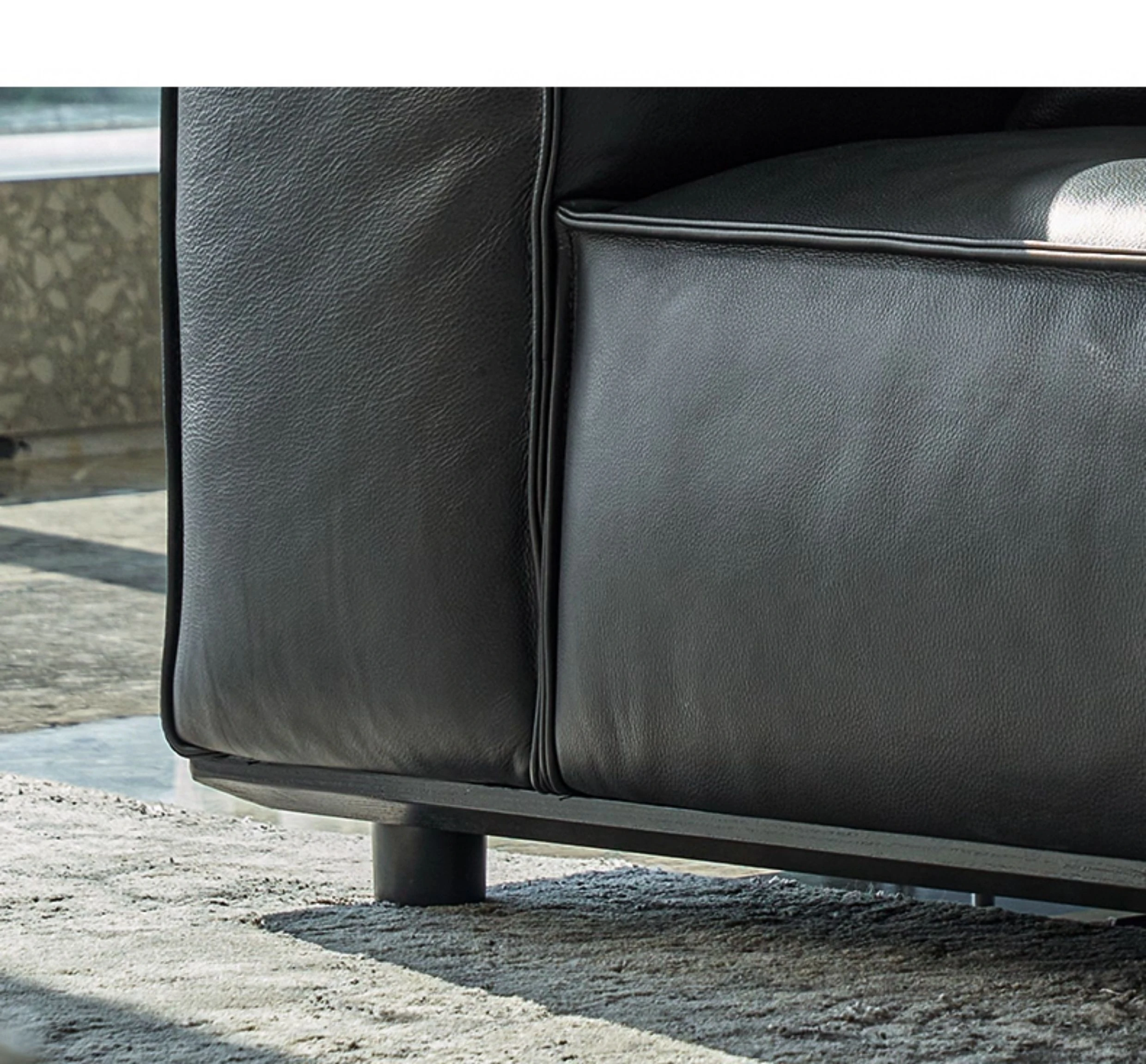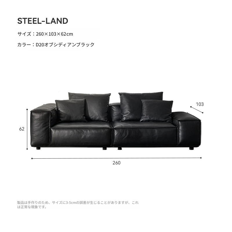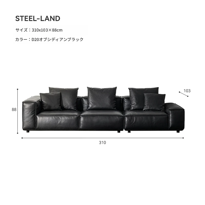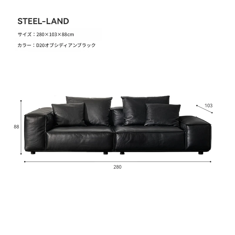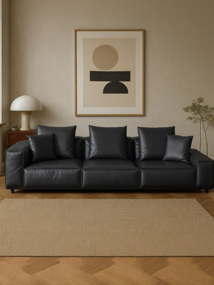 スティロラン豆腐ブロック本革ブラックソファー|イタリアンミニマルデザイン|軽やかなラグジュアリー|小型リビングに最適なトップグレインレザーソファー