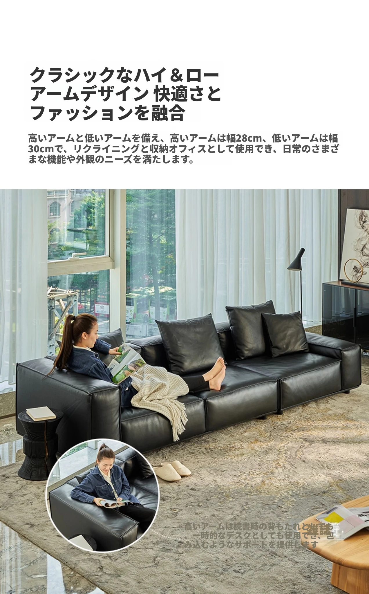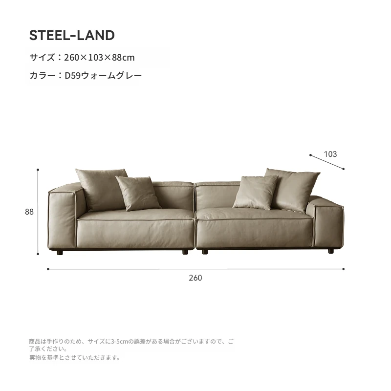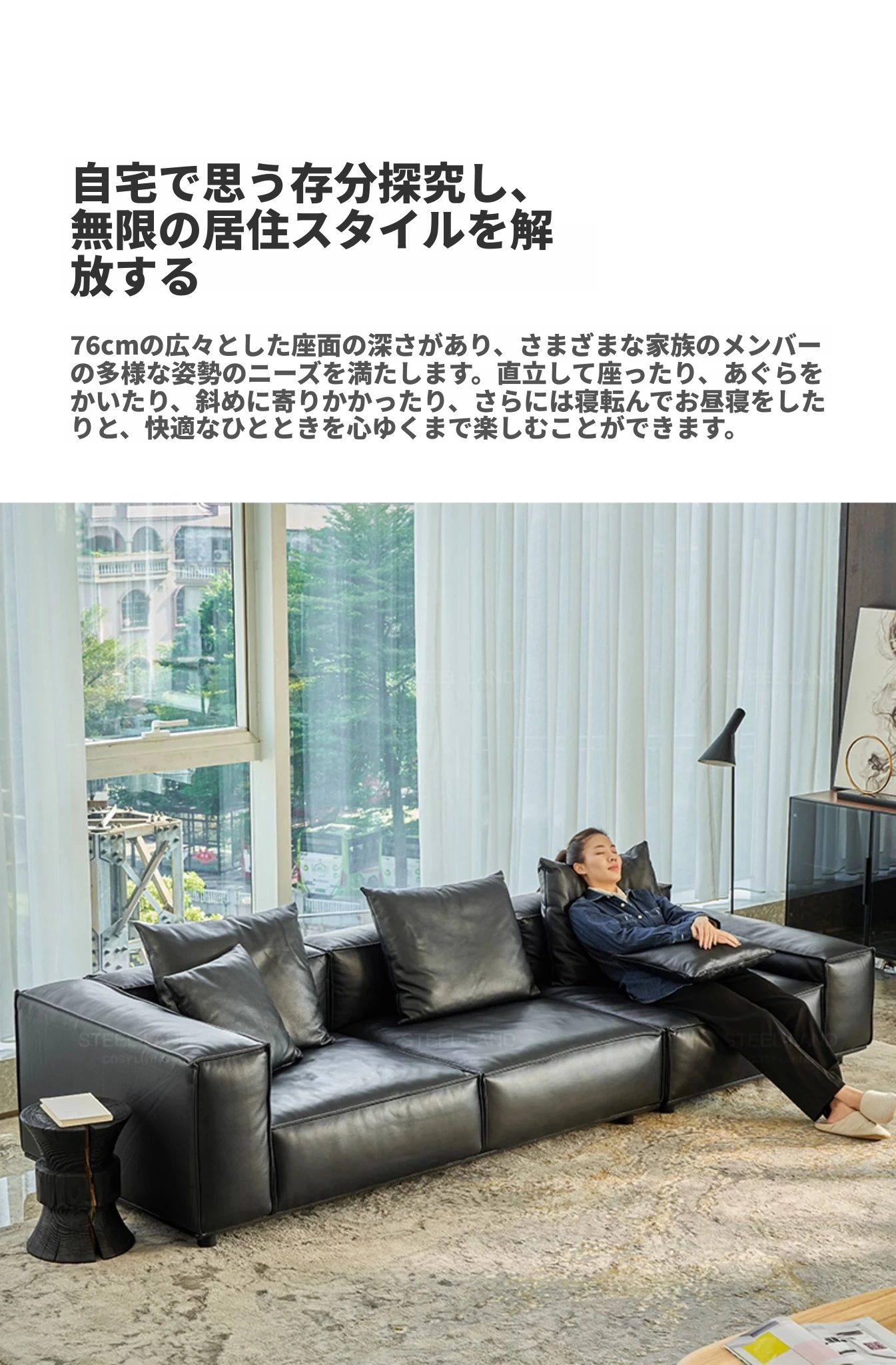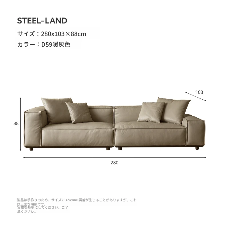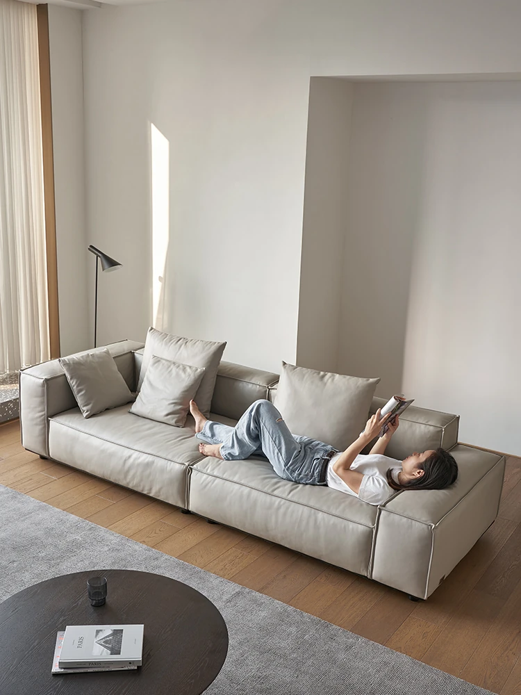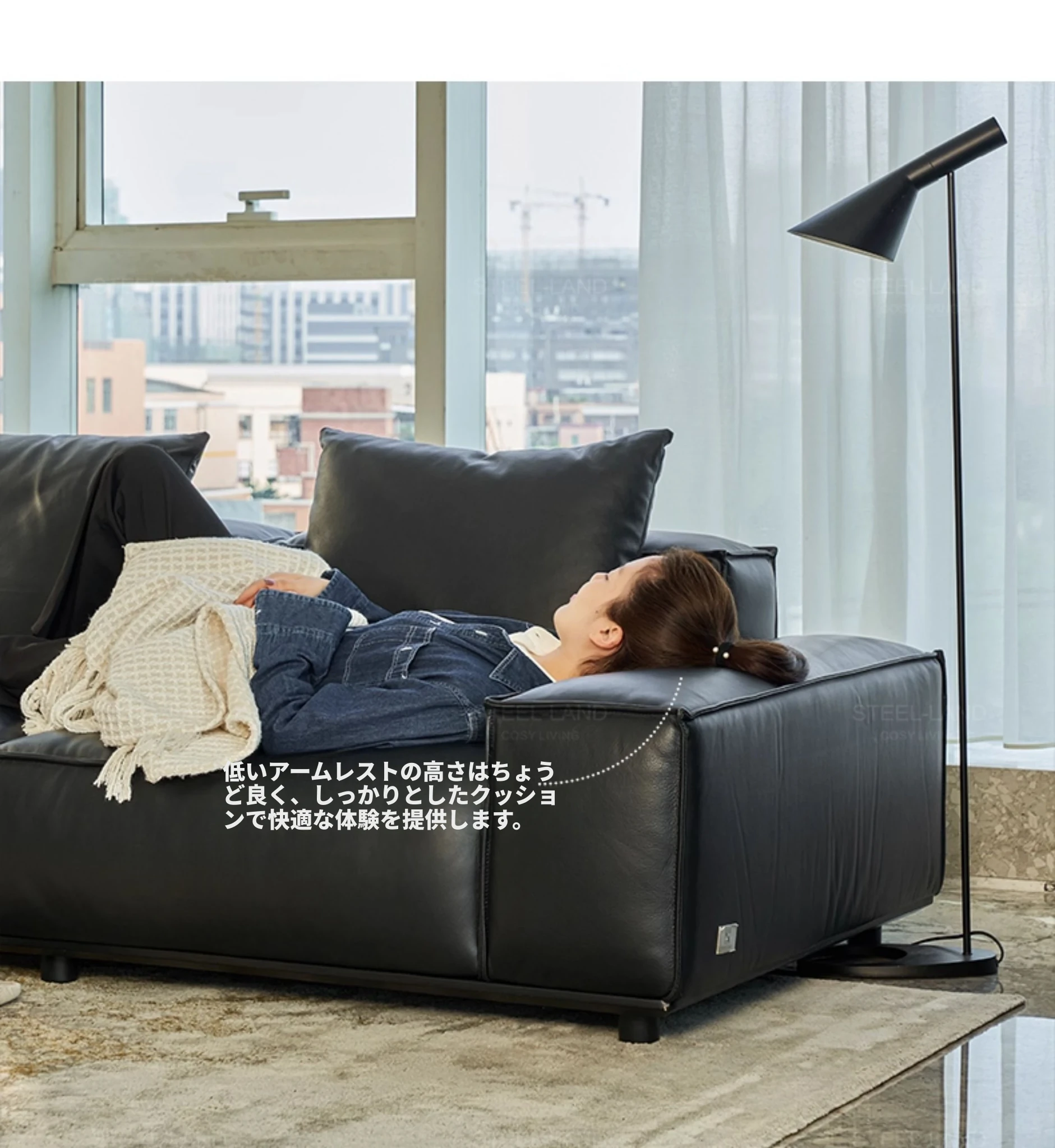 スティロラン豆腐ブロック本革ブラックソファー|イタリアンミニマルデザイン|軽やかなラグジュアリー|小型リビングに最適なトップグレインレザーソファー