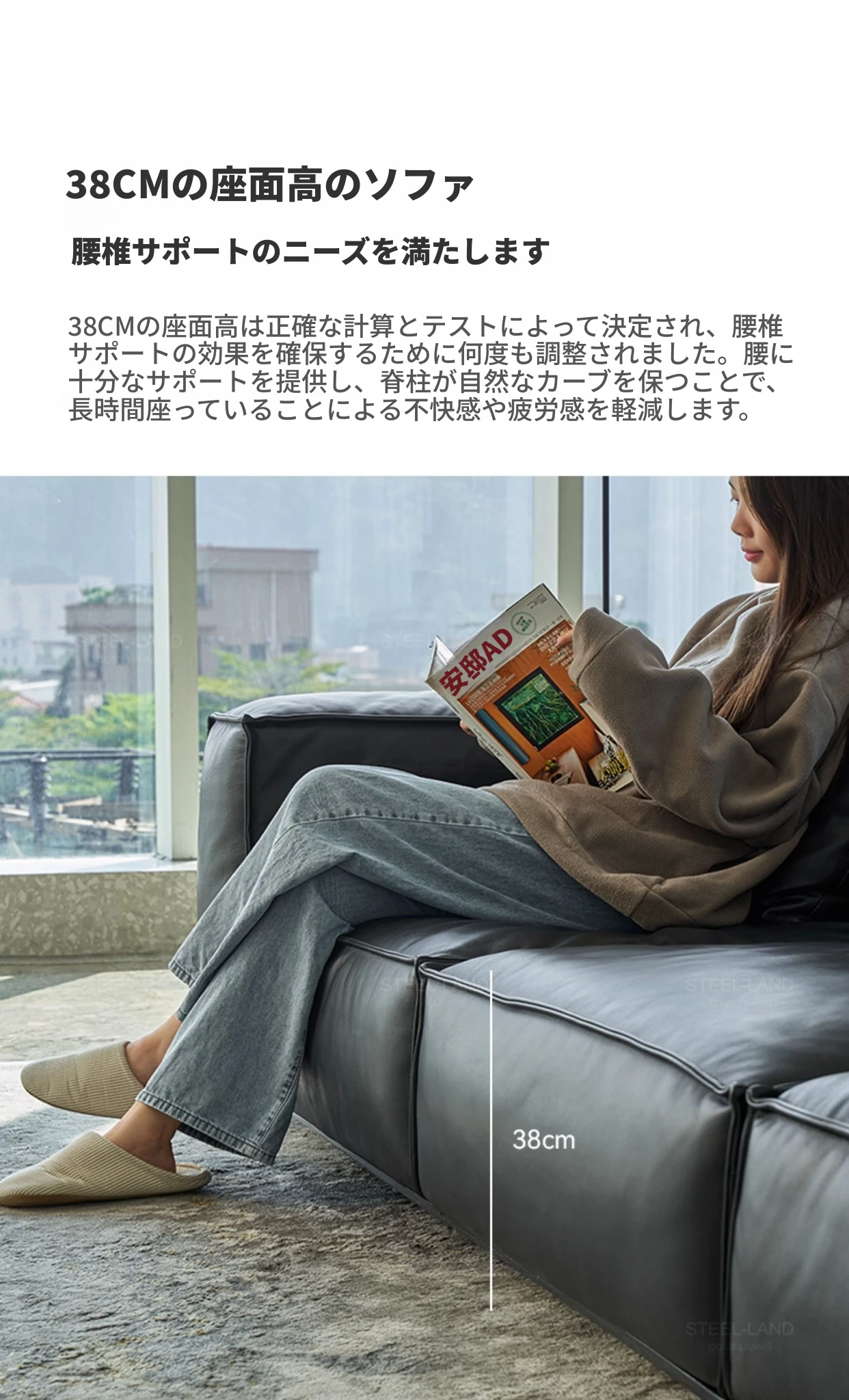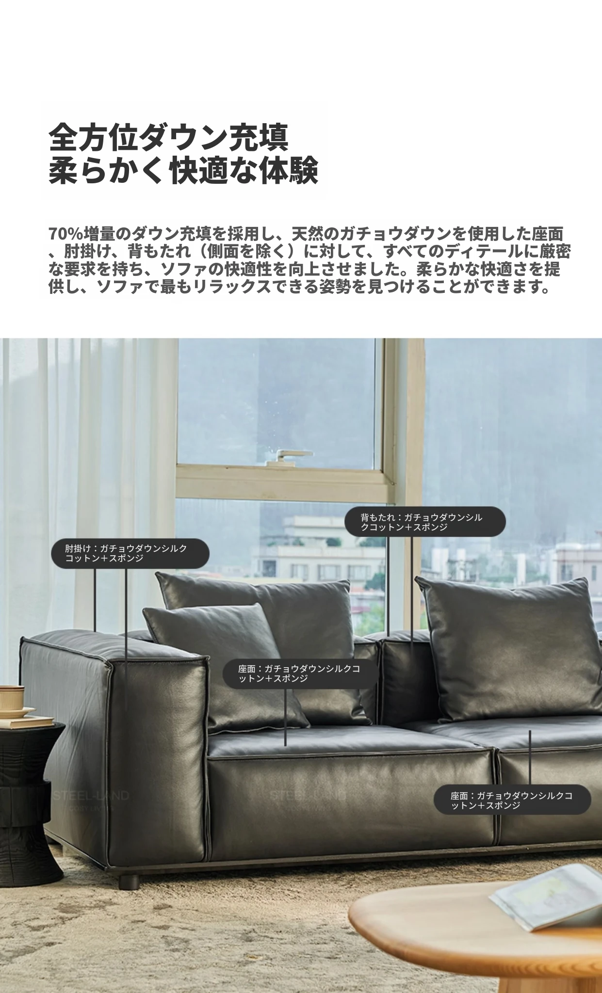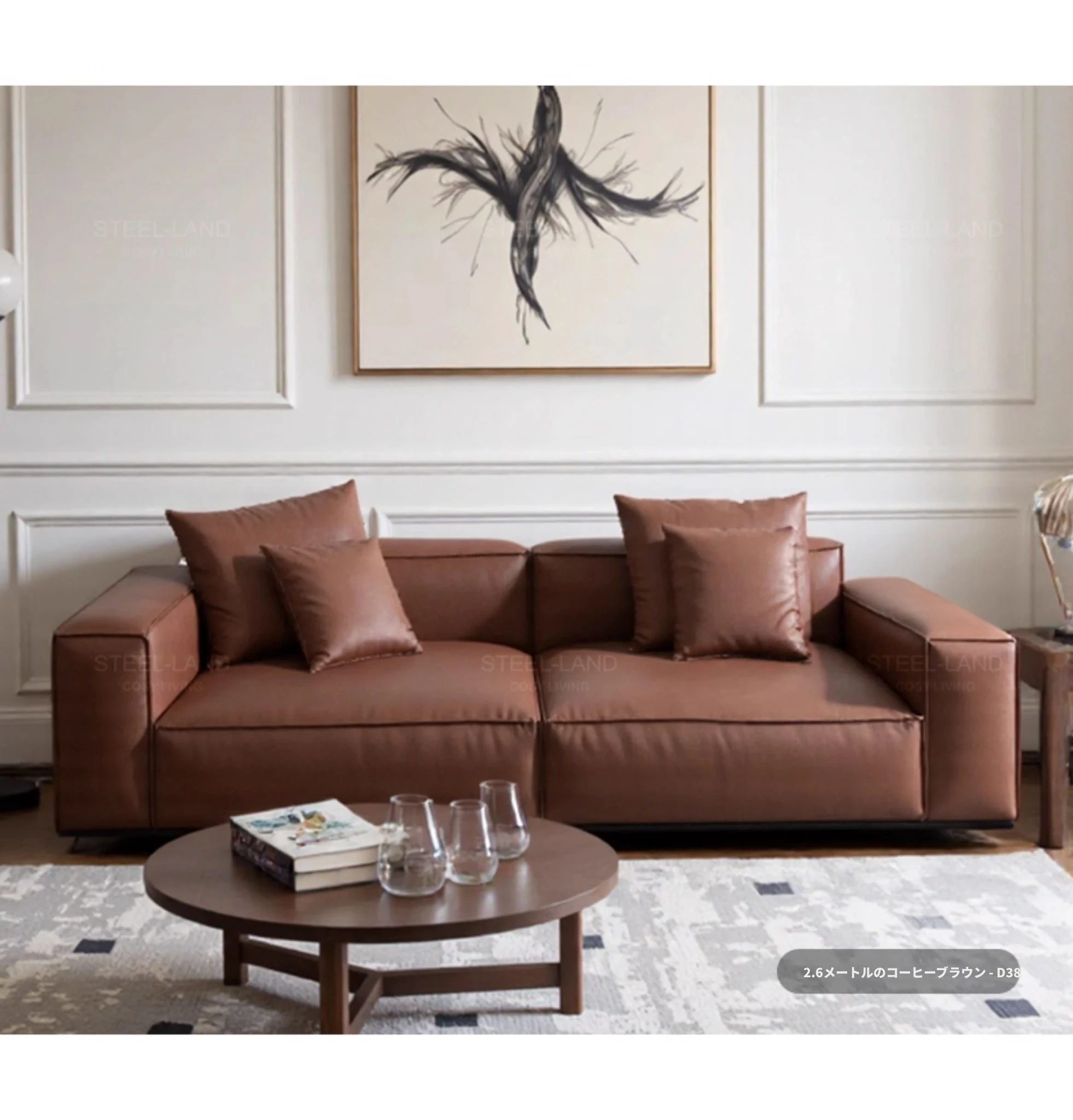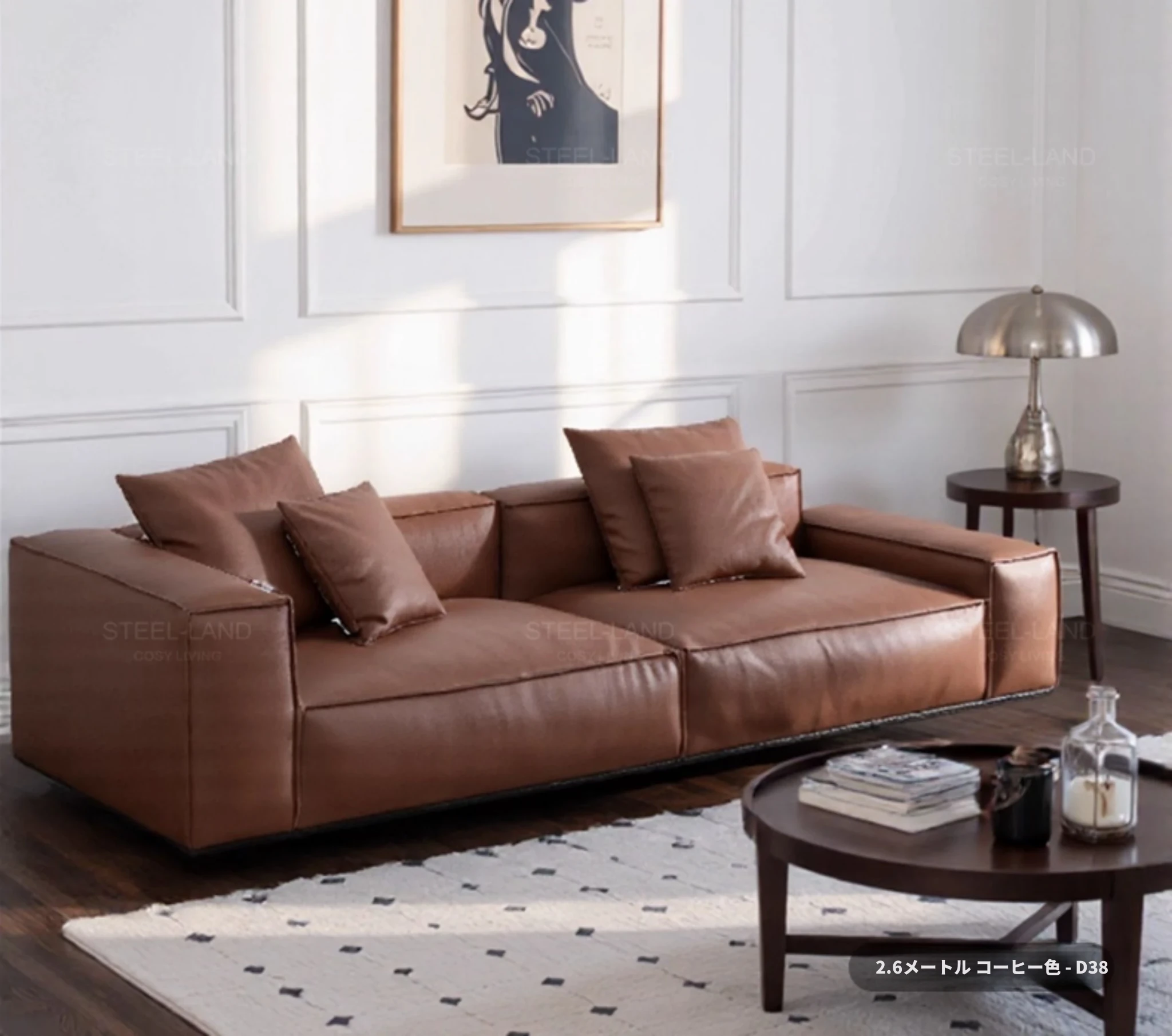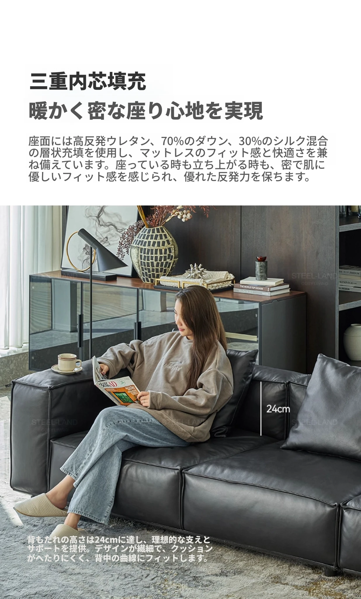スティロラン豆腐ブロック本革ブラックソファー|イタリアンミニマルデザイン|軽やかなラグジュアリー|小型リビングに最適なトップグレインレザーソファー