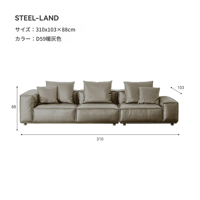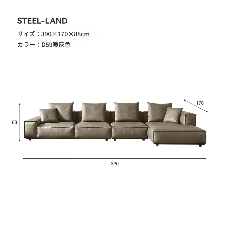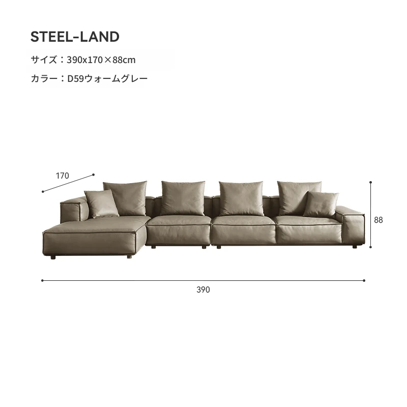 ⑩長さ390cmウォームグレーソファ左向き半皮