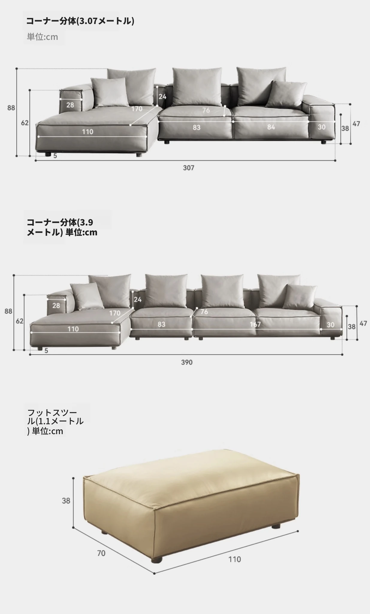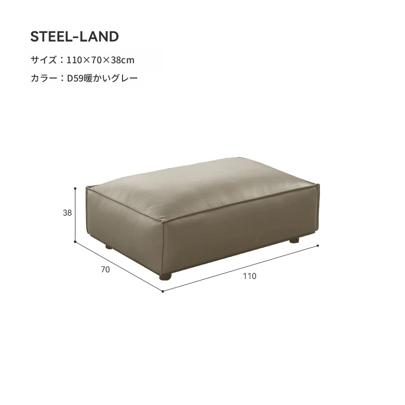 ⑦長さ110cmウォームグレー半皮フットスツール