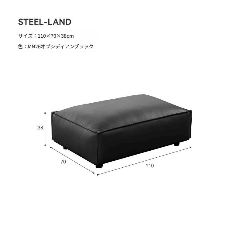 ⑧長さ110cmオブシディアンブラック半皮フットスツール