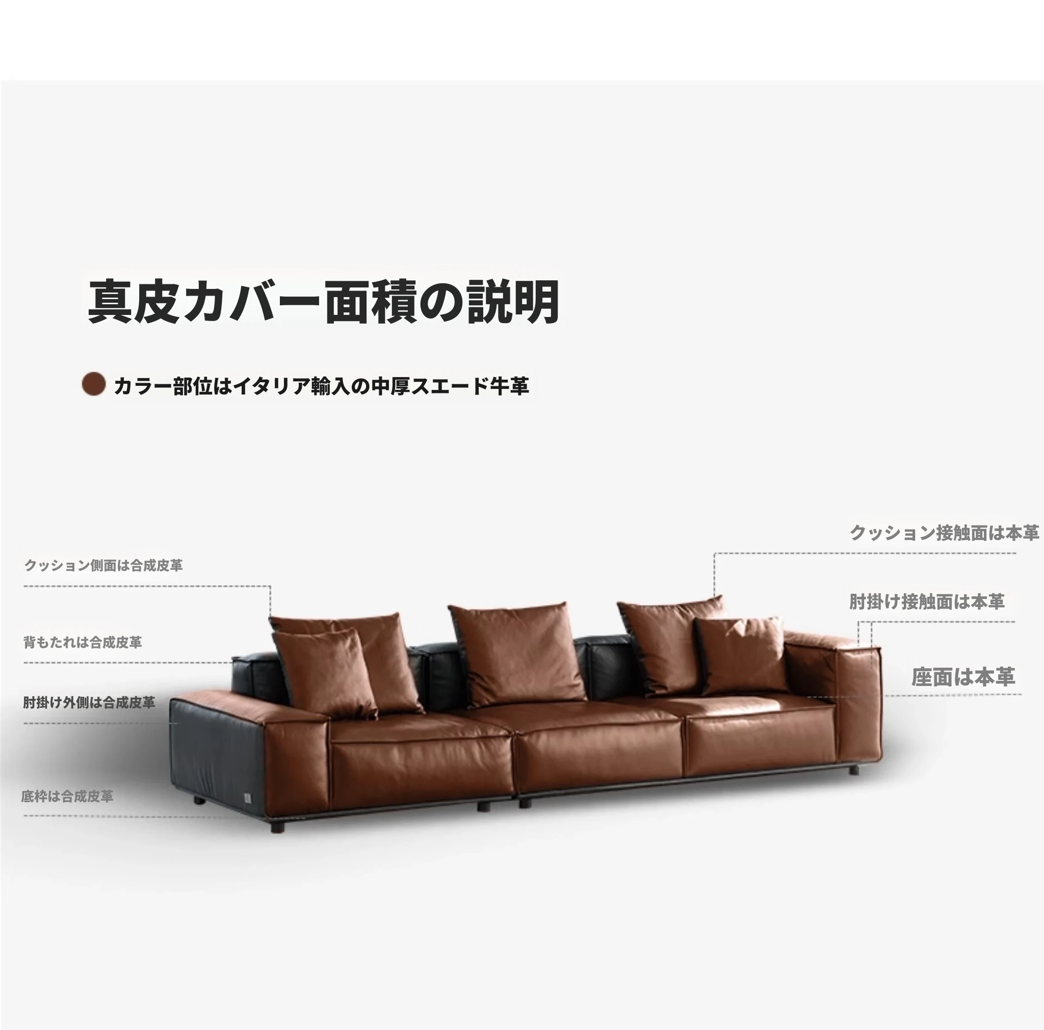 ⑨長さ390cmウォームグレーソファ右向き半皮