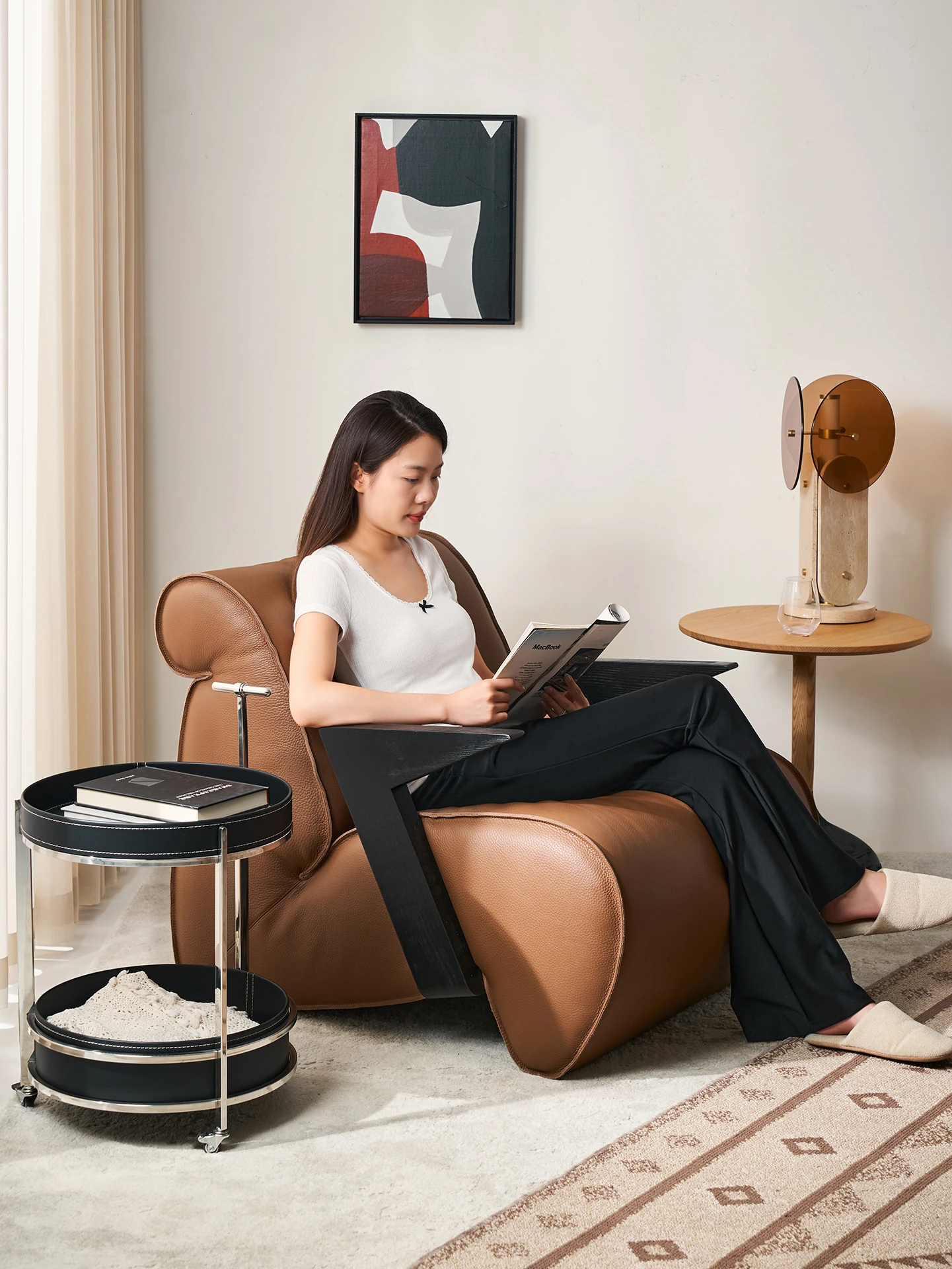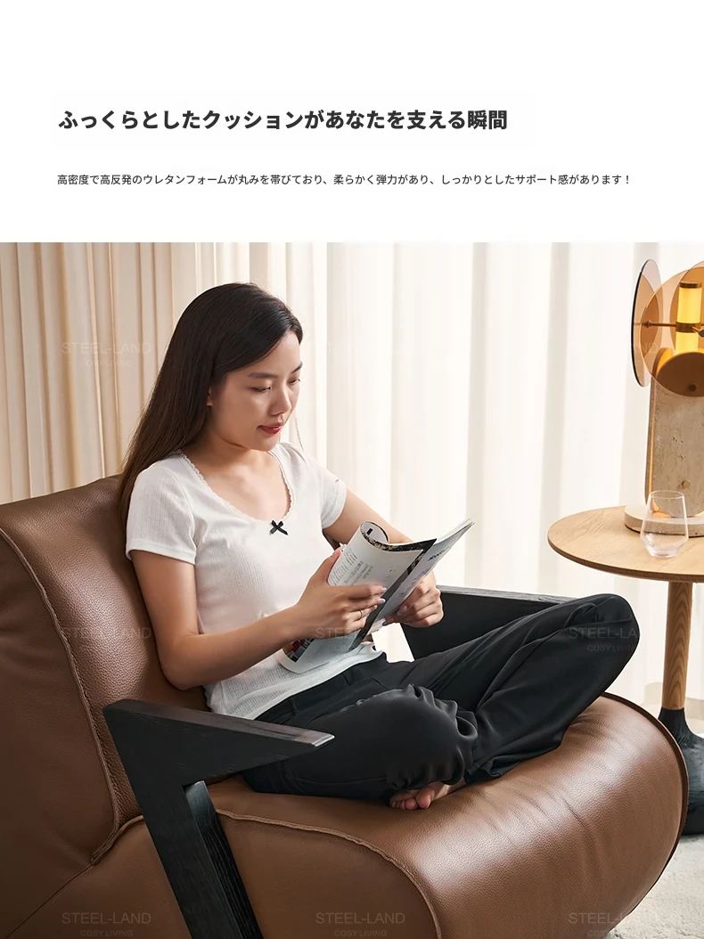 スティロランライン シンプル全皮製カジュアルチェア 一人用ソファ 高級感漂うリーディングチェア 軽やかなデザインで心地よいひとときをお楽しみください。