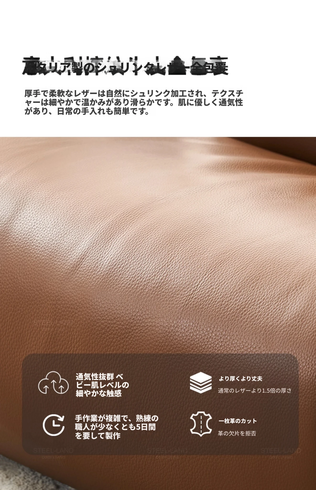 スティロラン本革ソファ|イタリアンミニマリズムの極み|高級アメリカンスタイルのリビングにぴったりな上質な牛革使用|ラグジュアリーな空間を演出する真皮ソファ