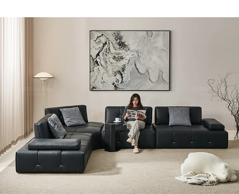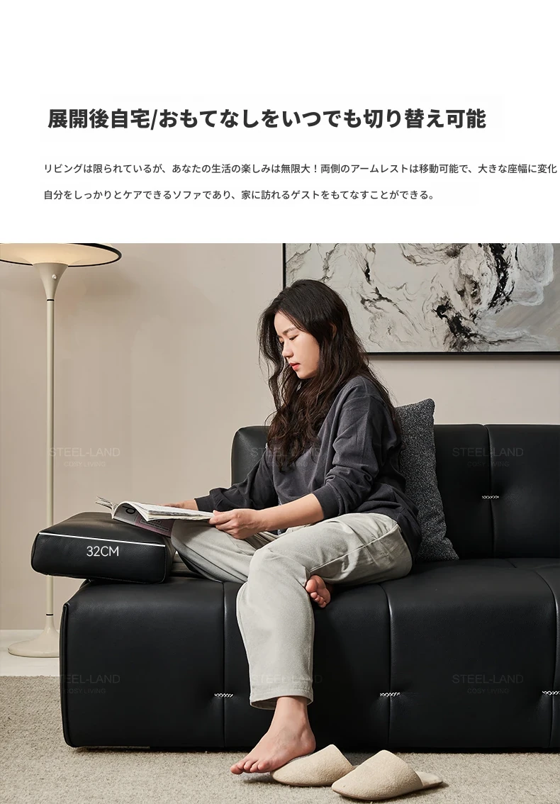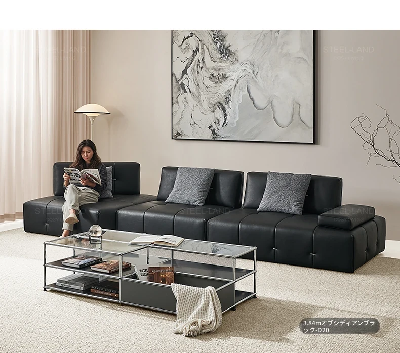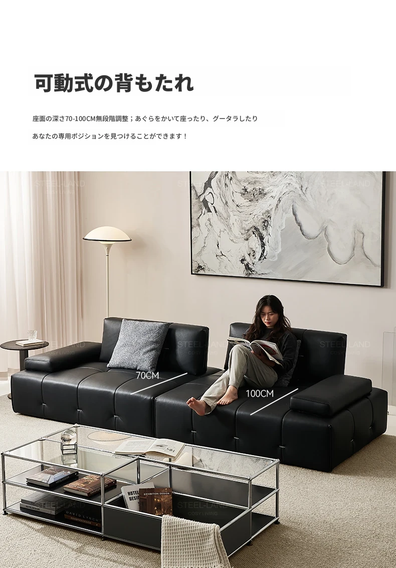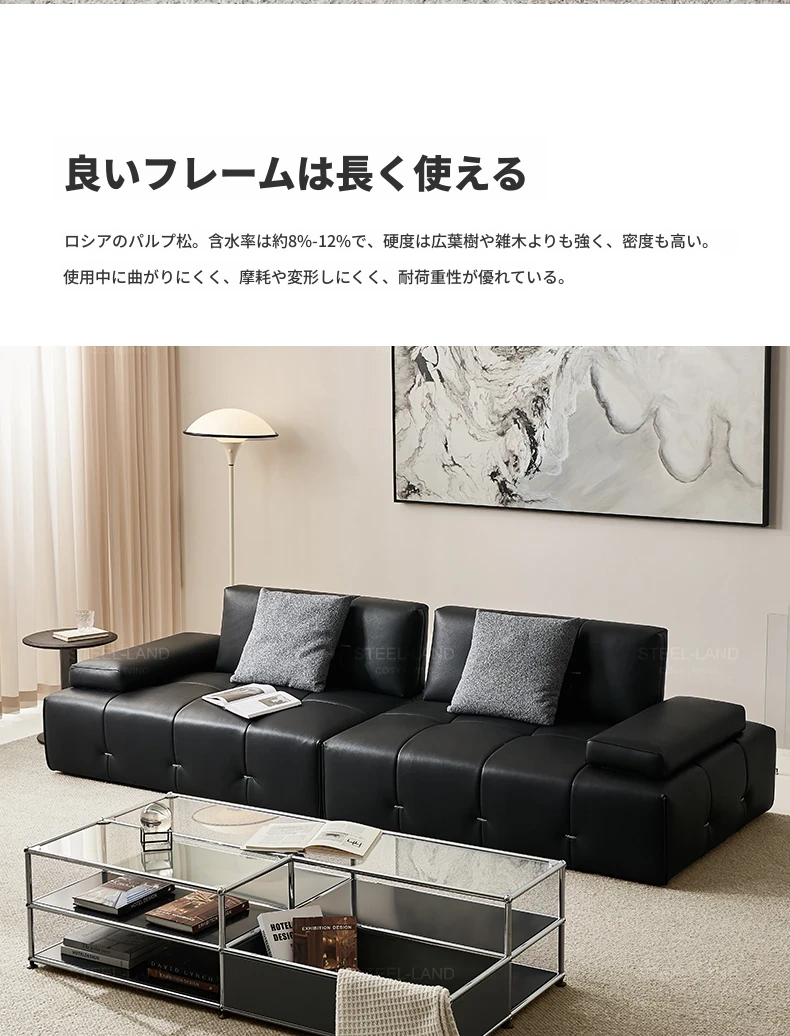スティロラン本革ソファ|イタリアンミニマリズムの極み|高級アメリカンスタイルのリビングにぴったりな上質な牛革使用|ラグジュアリーな空間を演出する真皮ソファ