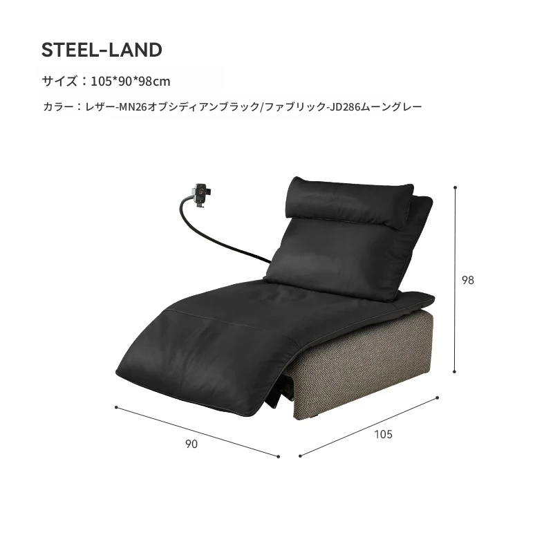 [ワイヤレス充電スタンド+電動リクライナー]オブシディアンブラック本革+ムーングレーコットンリネン