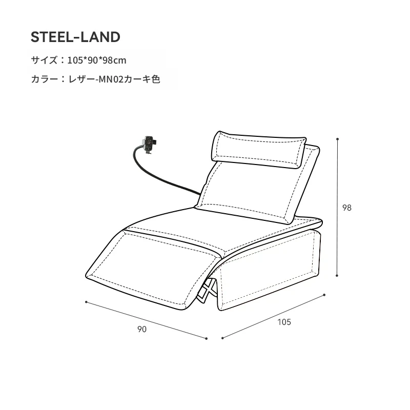 [ワイヤレス充電スタンド+電動リクライナー]カーキ色フルレザー