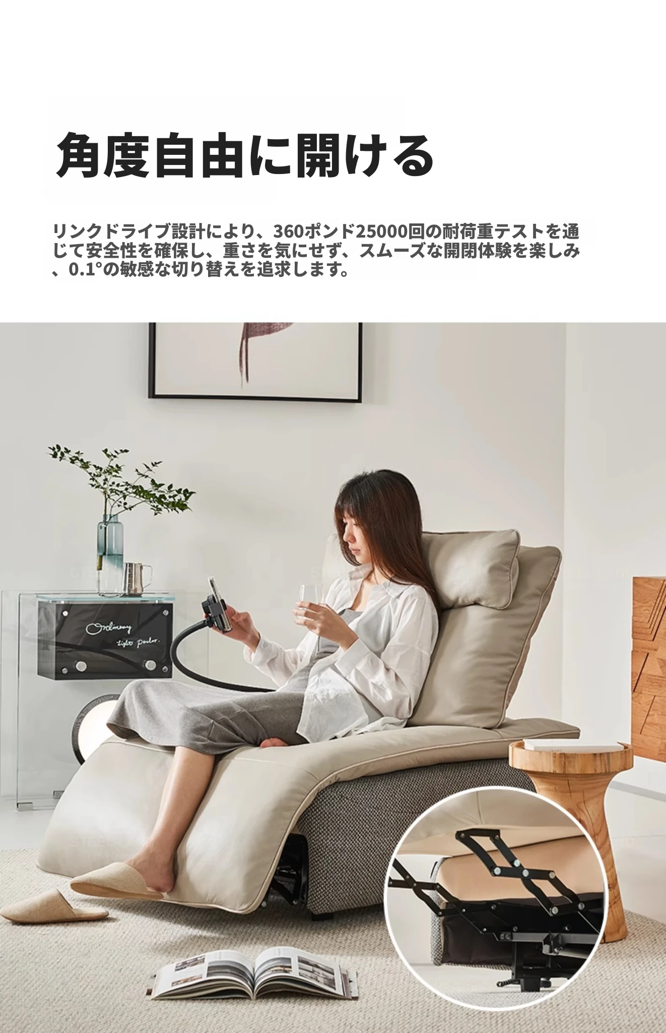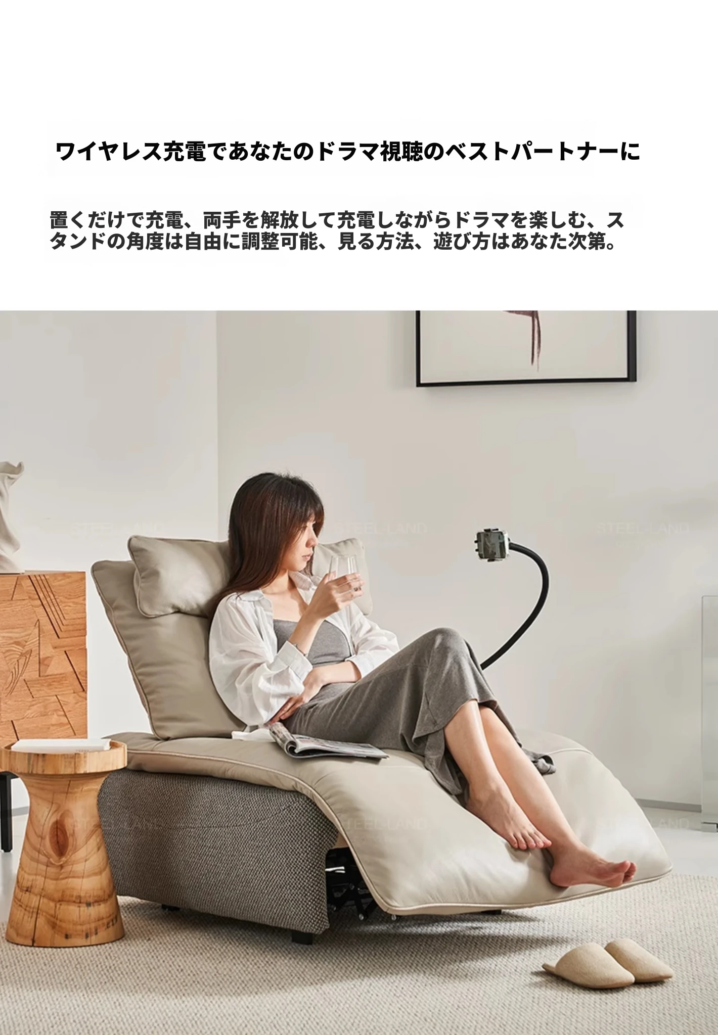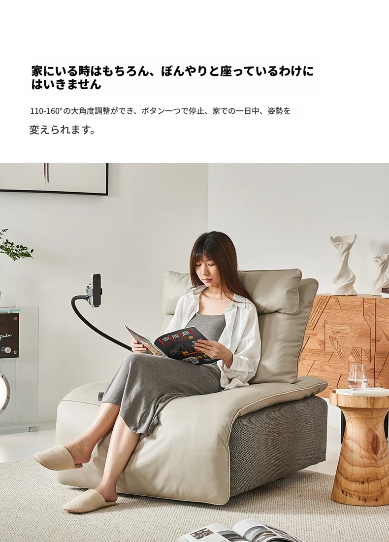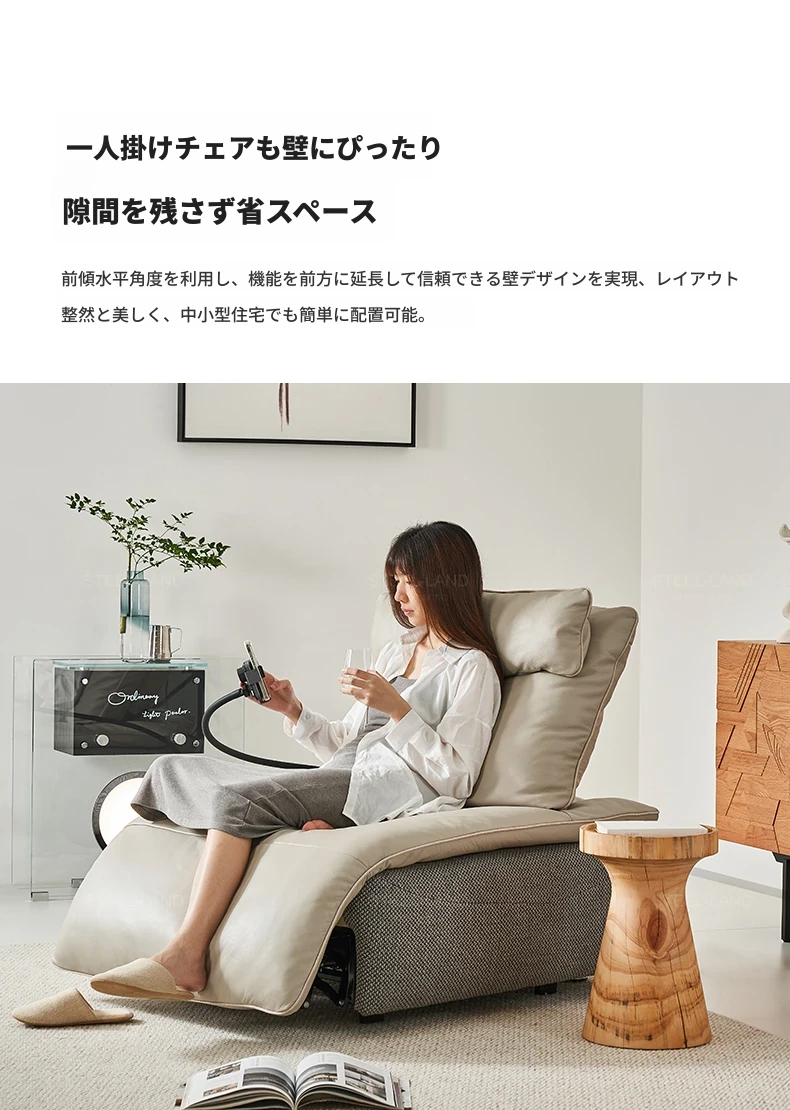 スティロラン機能性リクライニングチェア、モバイル充電スタンド付きの快適なソファ!壁に寄せずに使える電動シングルチェアで、リラックスしたひとときを実現。おしゃれで便利なライフスタイルをサポートします!