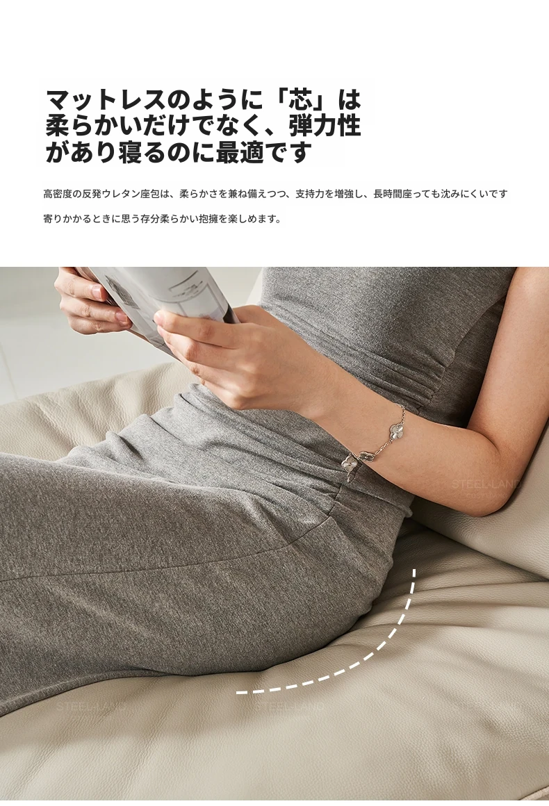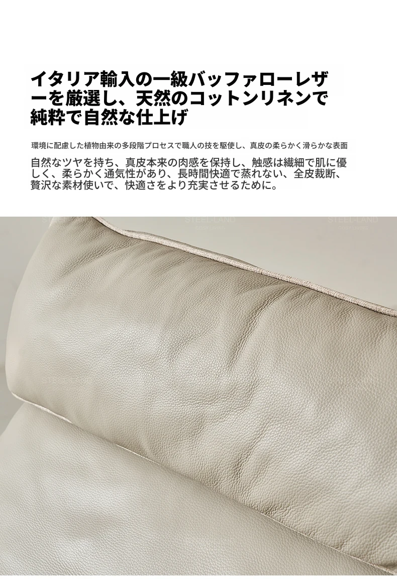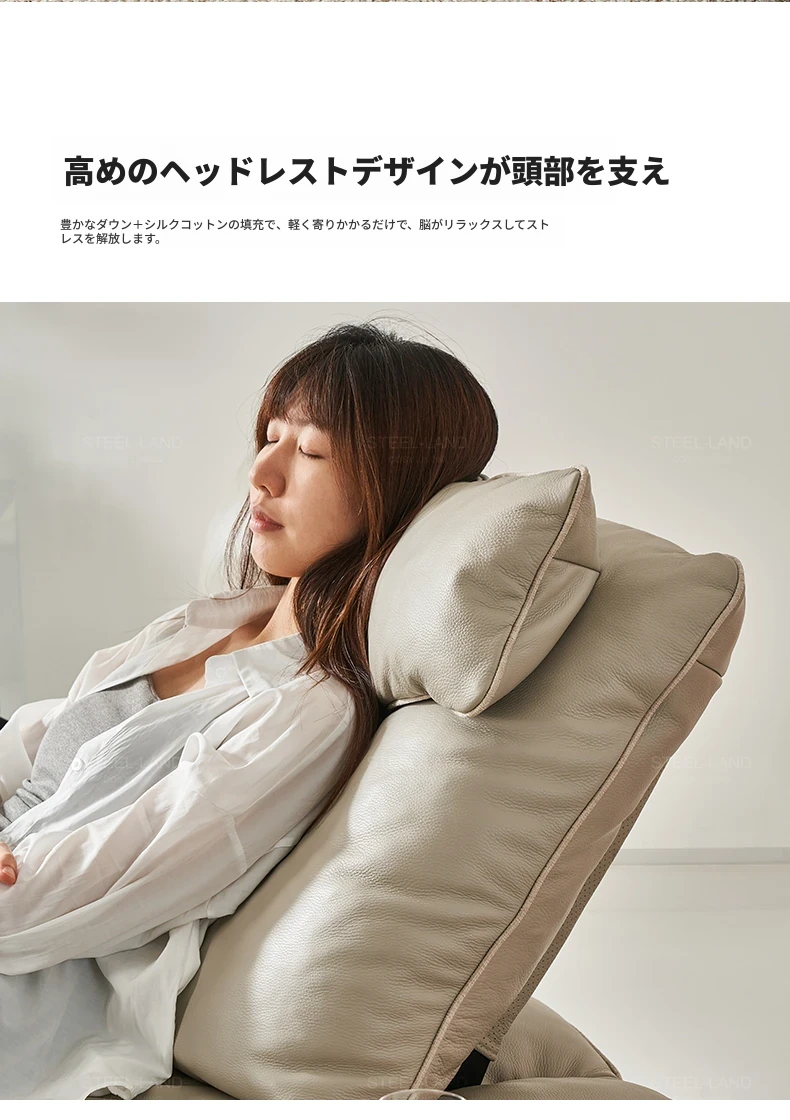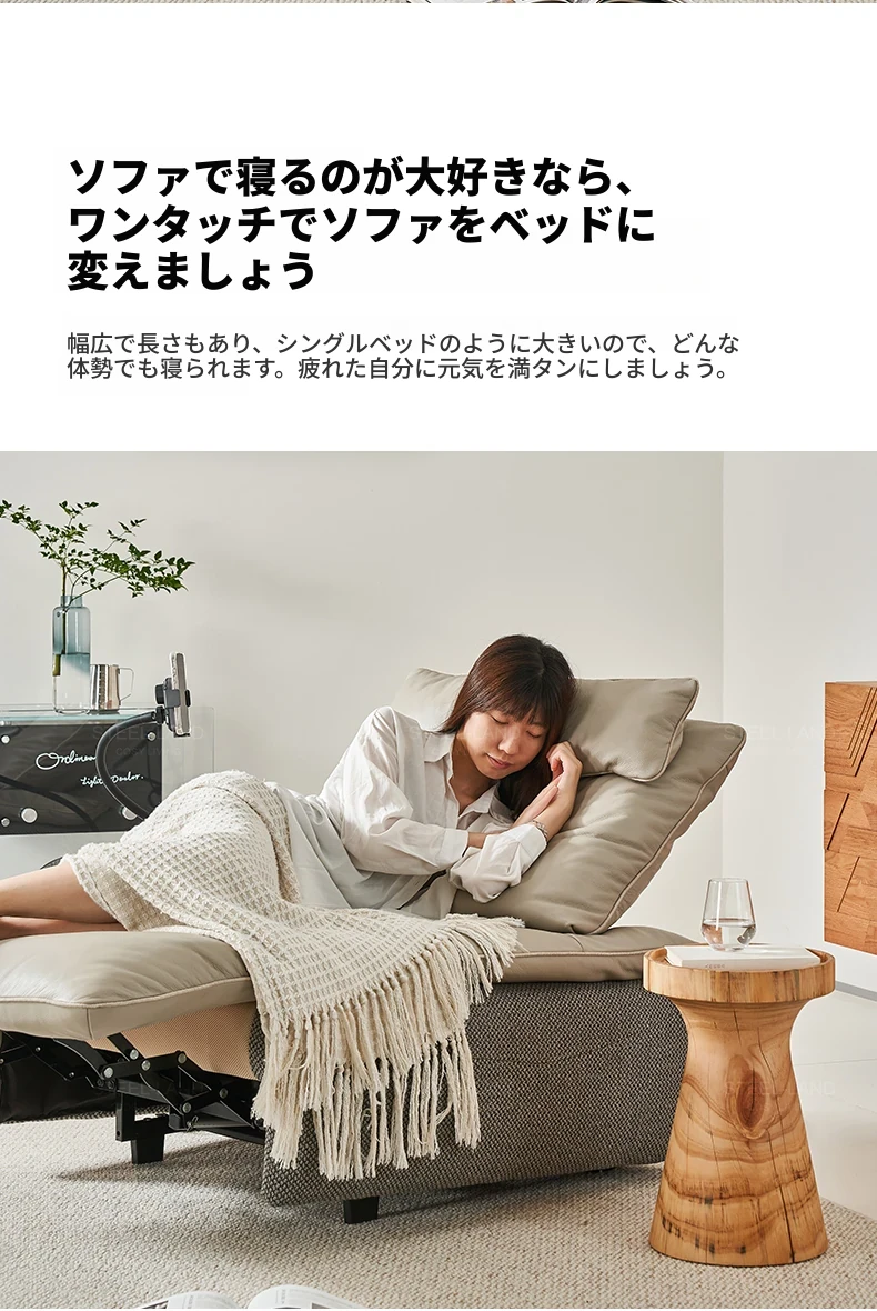 [ワイヤレス充電スタンド+電動リクライナー]カーキ色本革+ムーングレーコットンリネン