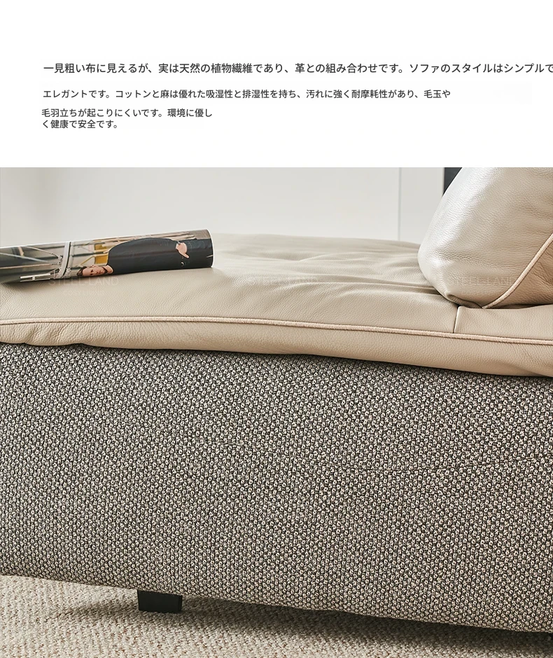 [電動リクライナー]カーキ色本革+ムーングレーコットンリネン