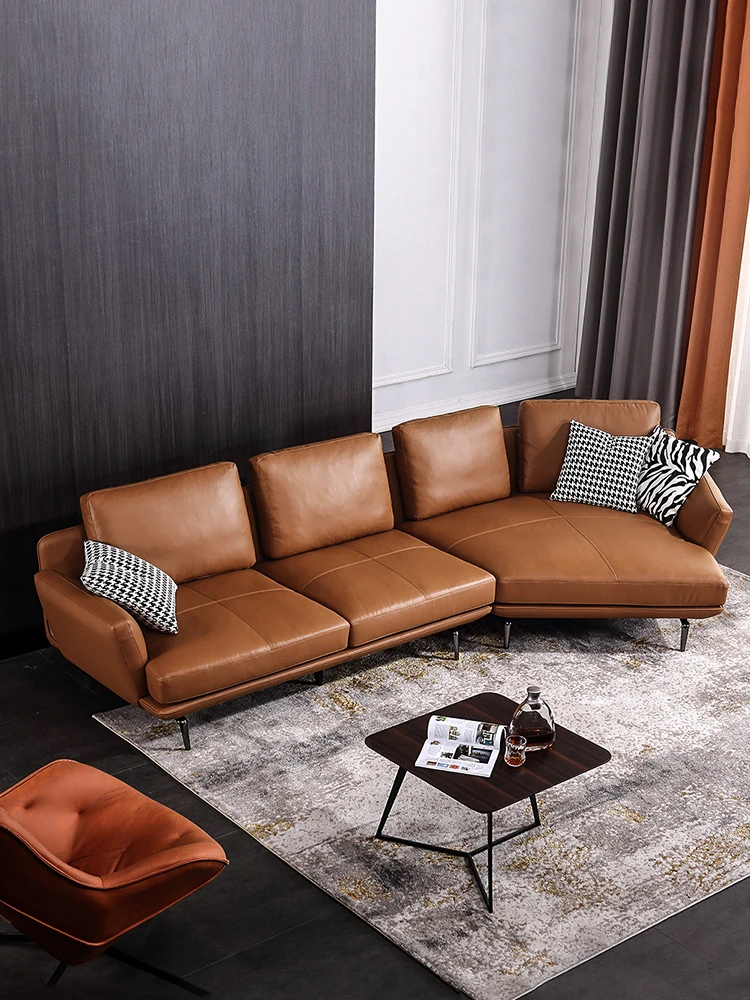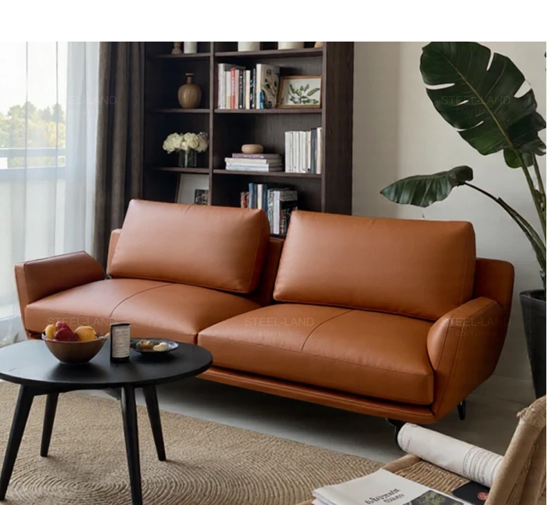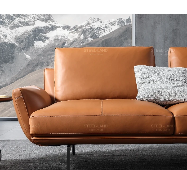 スティロランのラグジュアリー軽量ダウンレザーソファー - シンプルで洗練されたイタリアンスタイルの本革アーチソファ、贅沢な客間にぴったりです。