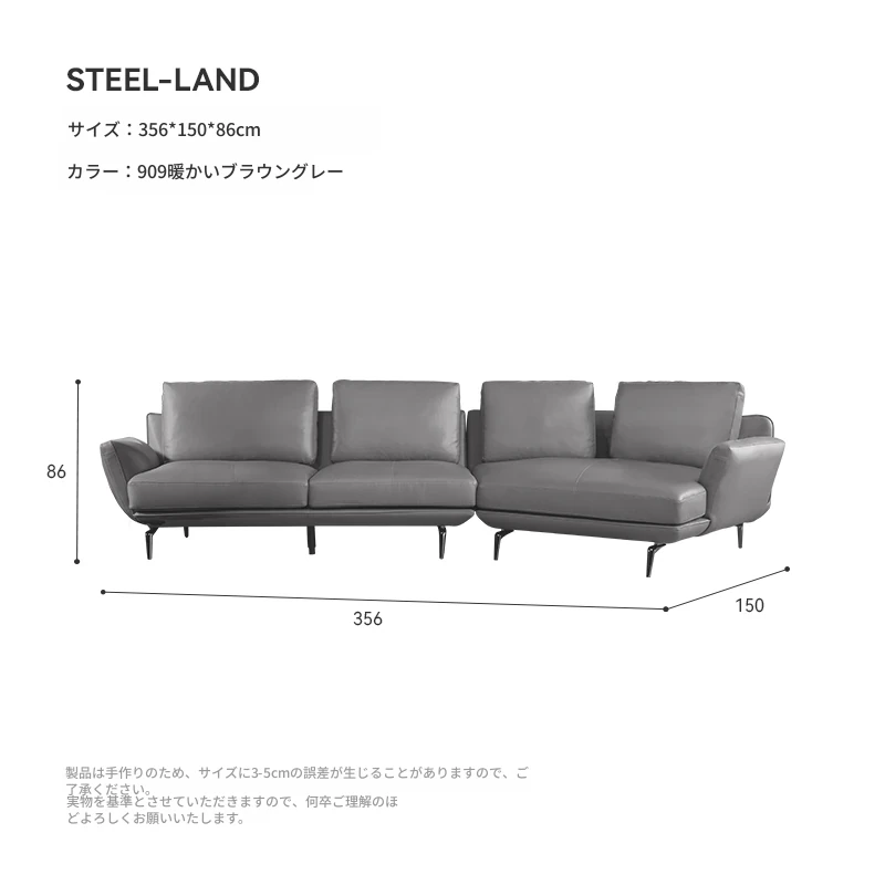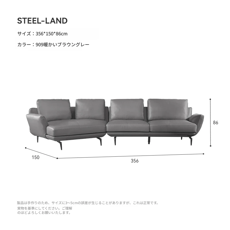 ②トップグレイン牛革 356cm 暖かい茶灰 ソファ左回転 半皮
