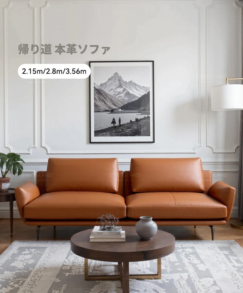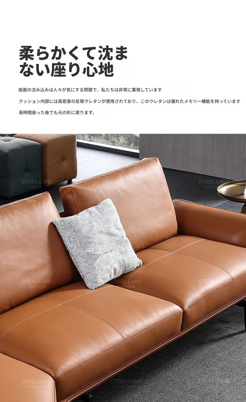 スティロラン本革ソファ|イタリアンミニマリズムの極み|高級アメリカンスタイルのリビングにぴったりな上質な牛革使用|ラグジュアリーな空間を演出する真皮ソファ