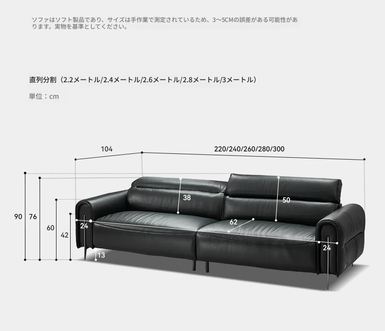 ⑤[店舗共通皮]長さ260cmオニキスブラック半皮