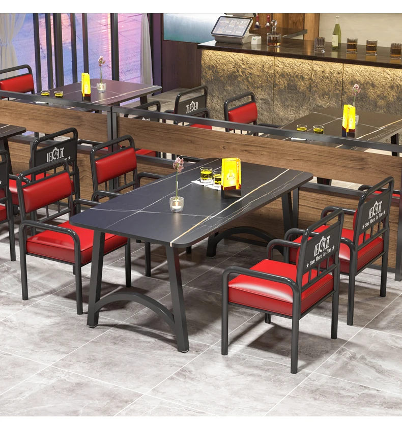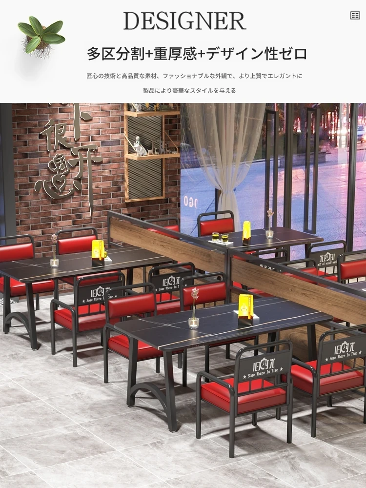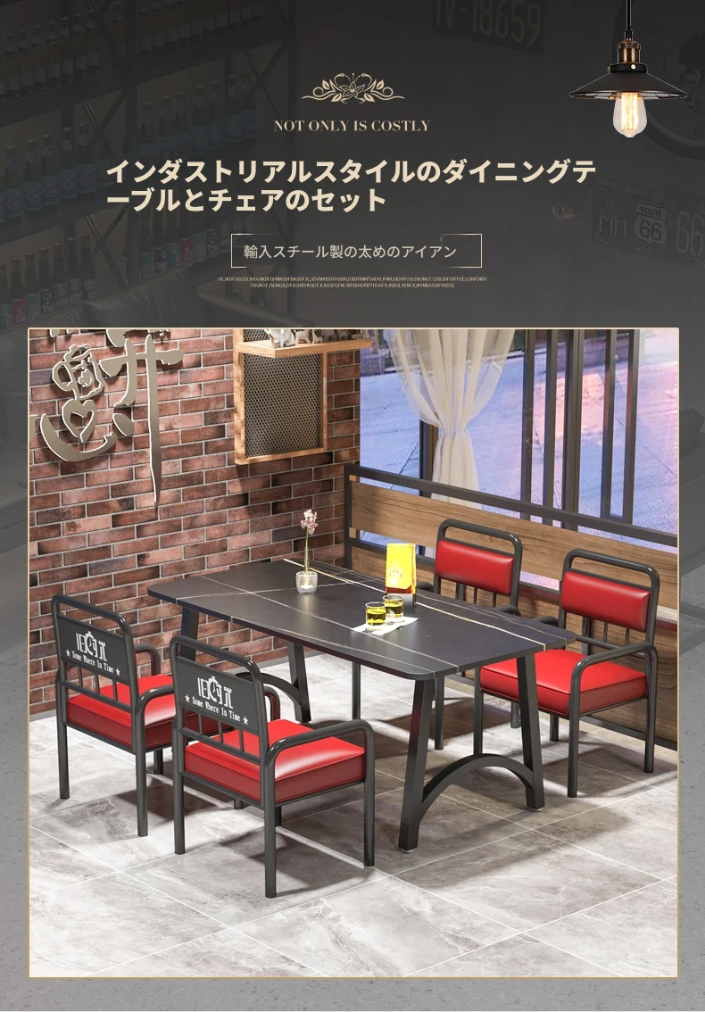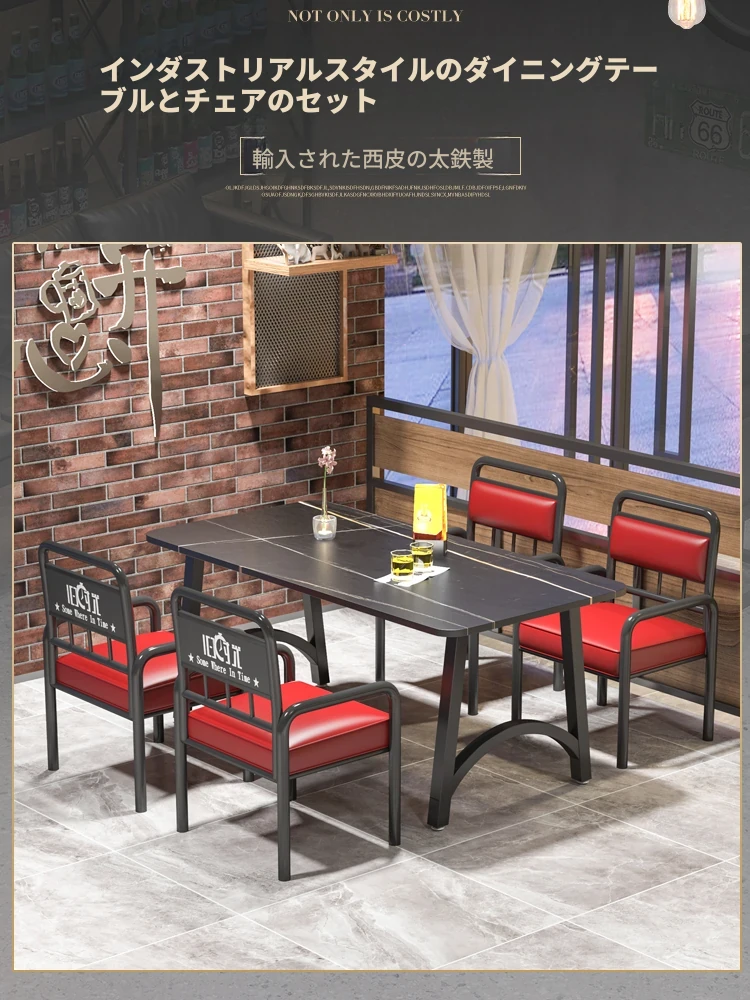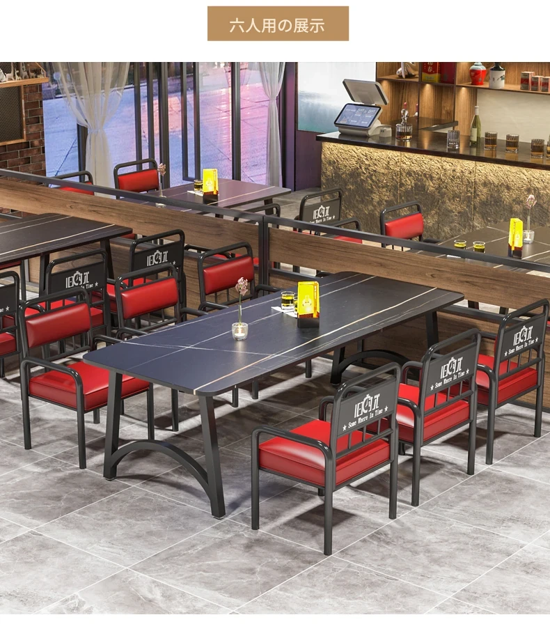 インスタ映えする酒場の工業風テーブル&チェアセット!バーベキューや火鍋、小さな居酒屋に最適な岩板テーブル。おしゃれで機能的なデザインで、あなたの飲食店を一新し、客を引き寄せること間違いなし!
