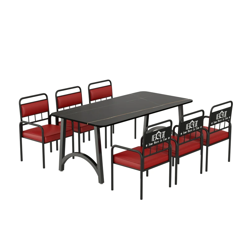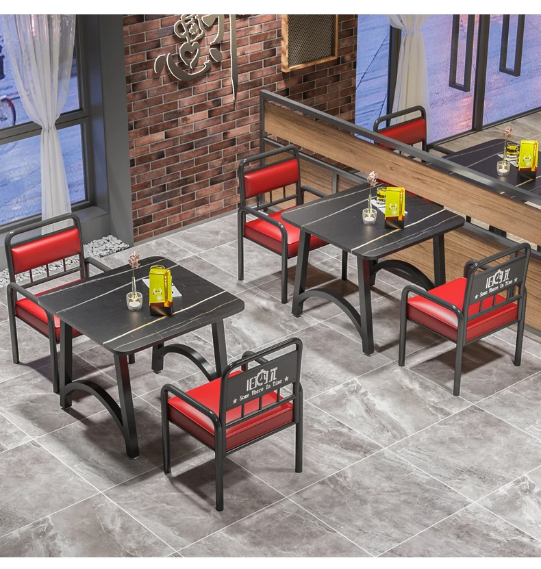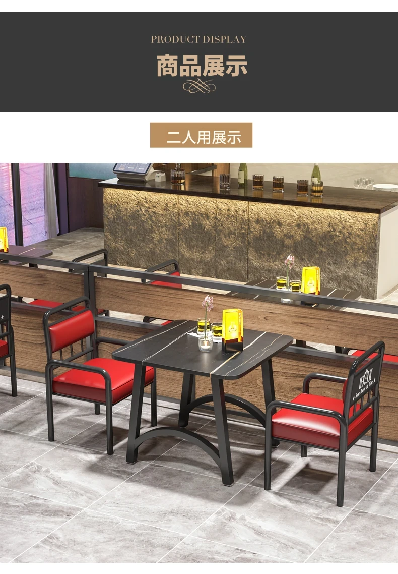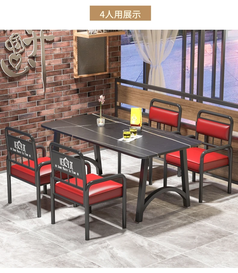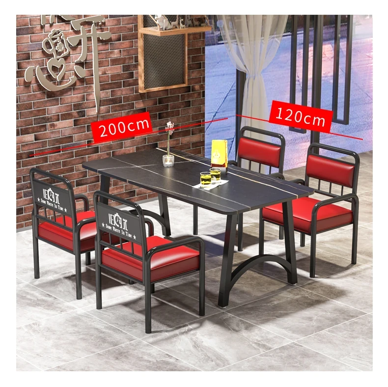 インスタ映えする酒場の工業風テーブル&チェアセット!バーベキューや火鍋、小さな居酒屋に最適な岩板テーブル。おしゃれで機能的なデザインで、あなたの飲食店を一新し、客を引き寄せること間違いなし!