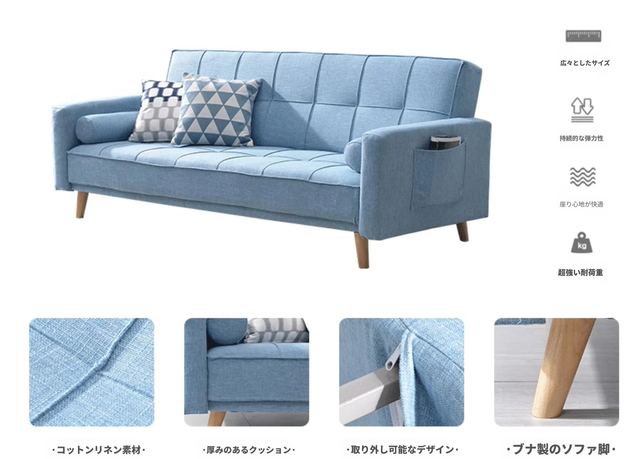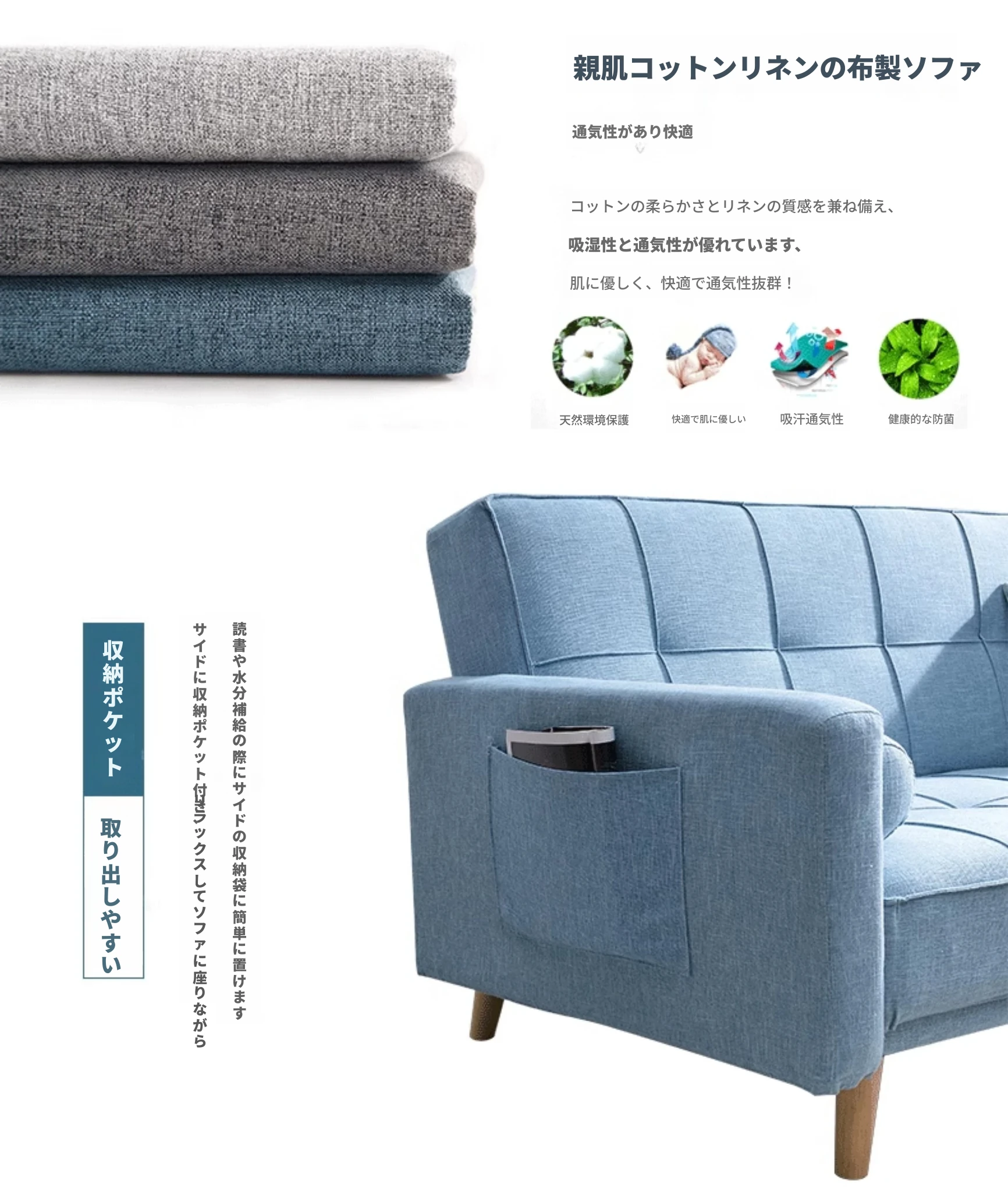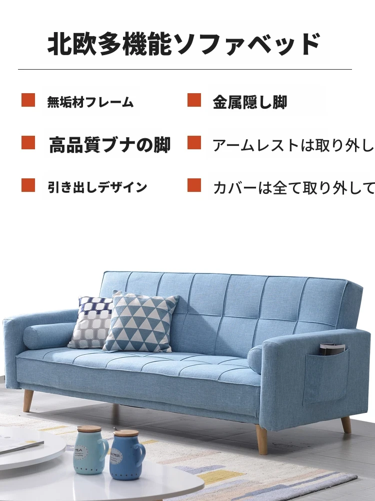 多機能ソファベッド 折りたたみ式 リビング用 1.8m ダブルサイズ・2m トリプルサイズ 小型住宅向け 布製・洗濯可能 北欧スタイルのデザインで、おしゃれで実用的!