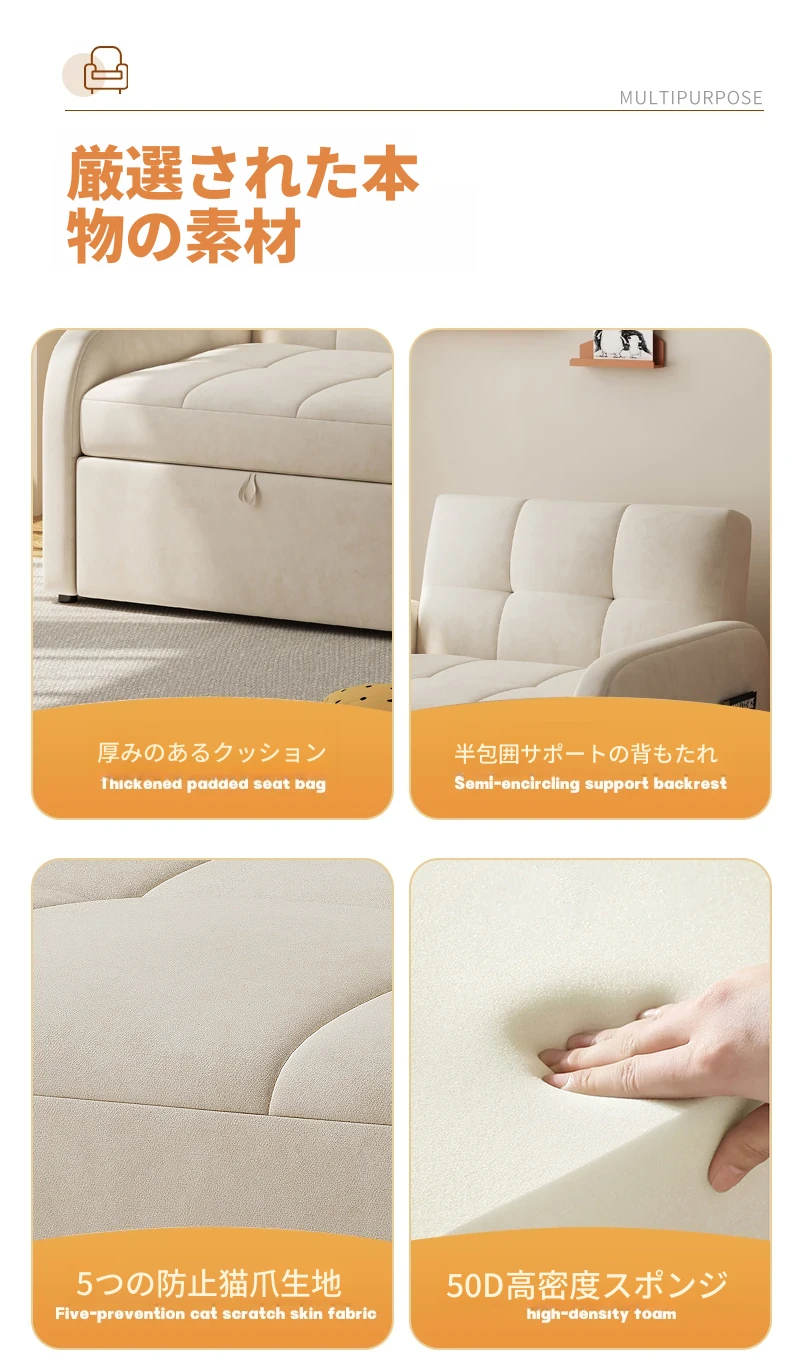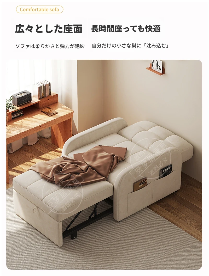 折りたたみソファベッド - リビングやバルコニーに最適!小型住居にぴったりな布製ソファ。機能的でスタイリッシュ、シングル&ダブル両用、伸縮可能で多様な使い方ができます。快適な空間を演出するアイテム!