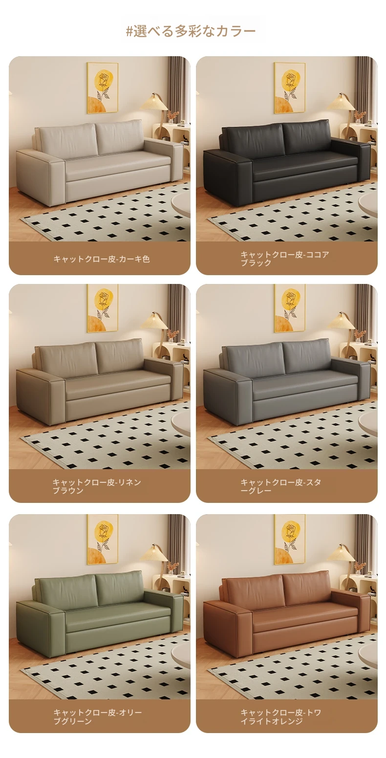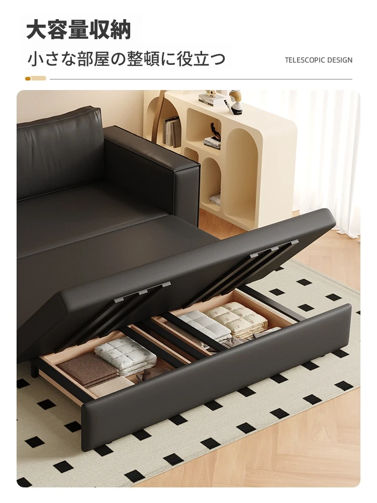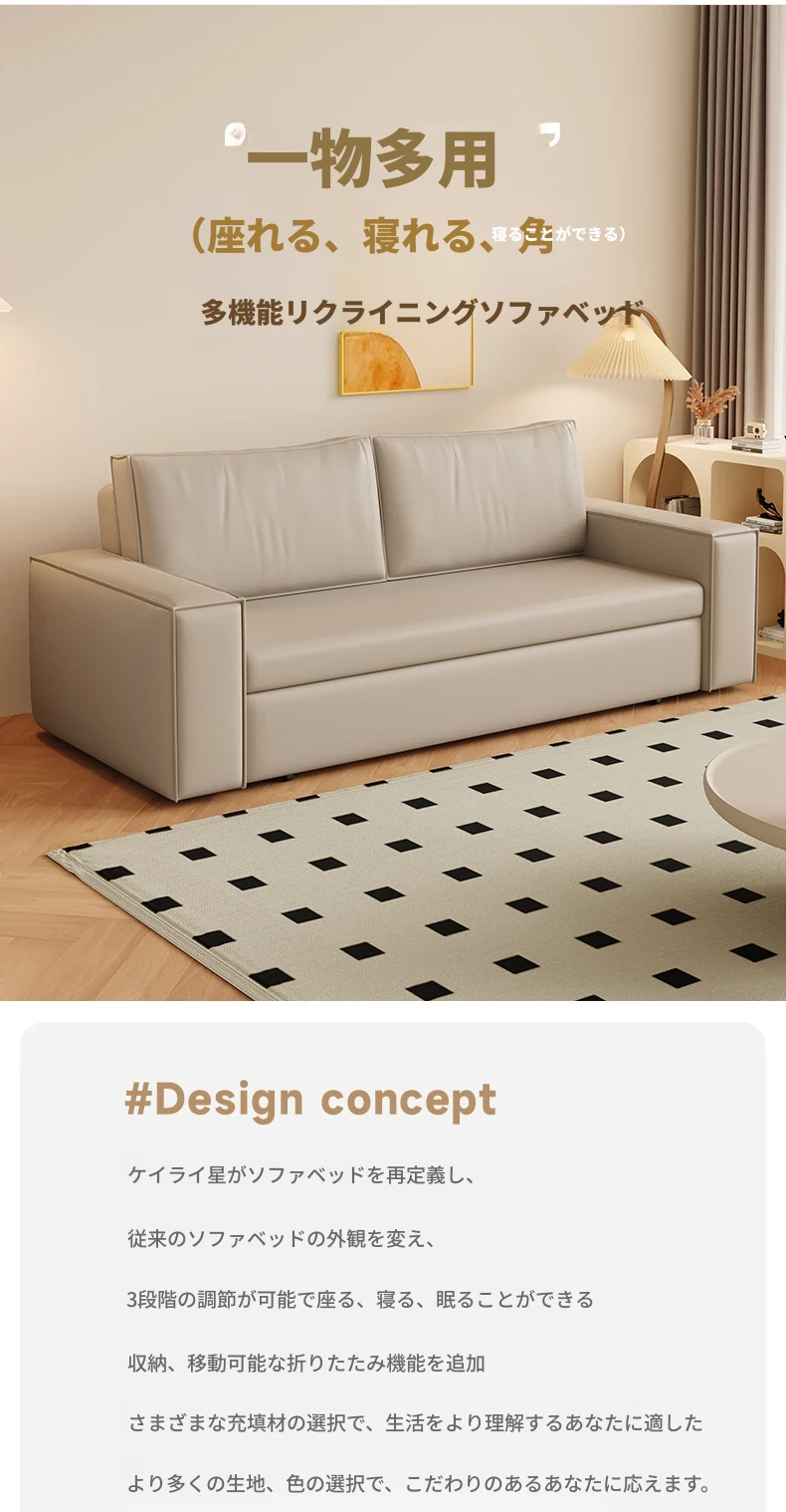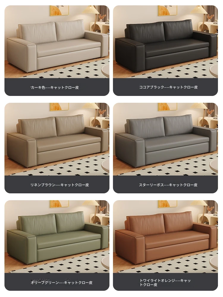 豆腐ブロック本革ソファベッド|シンプルなデザインでダブル・シングル兼用|書斎やバルコニーに最適な折りたたみ式|多機能で引き出し付き、リラックス空間を演出します!
